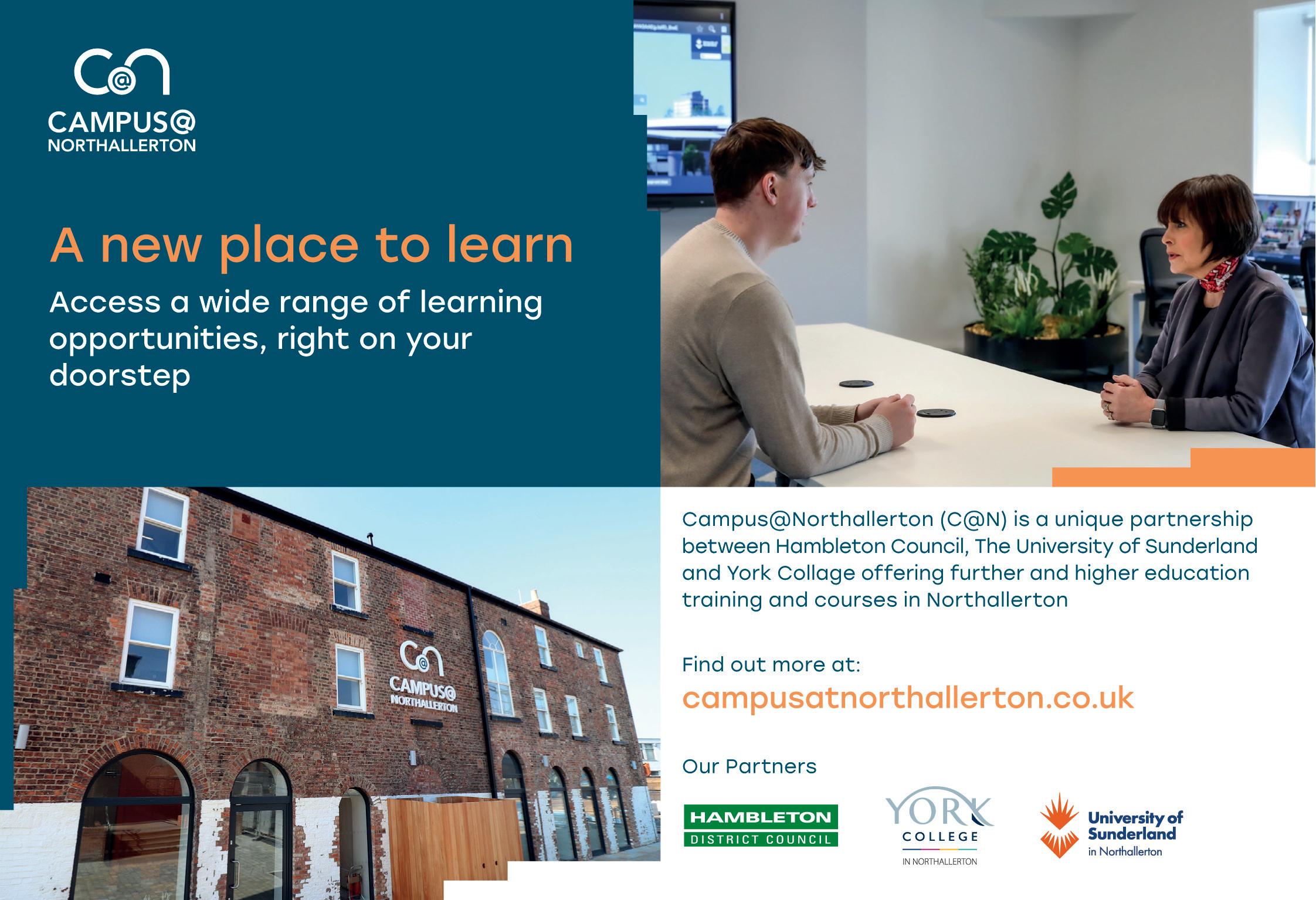 Campus@Northallerton (C@N) is an exciting new partnership between Hambleton District Council, the University of Sunderland and York College, who have come together to offer education and training courses based in Northallerton.