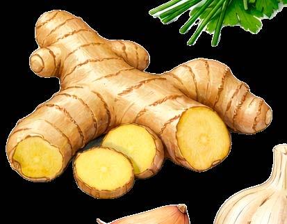 Frisk ingefær er kendt som værende citrusagtig, varm og en smule skarp i smagen. Den tilfører både varme og friskhed på samme tid. Den skærer gennem fedme og fremhæver kødets dybde.