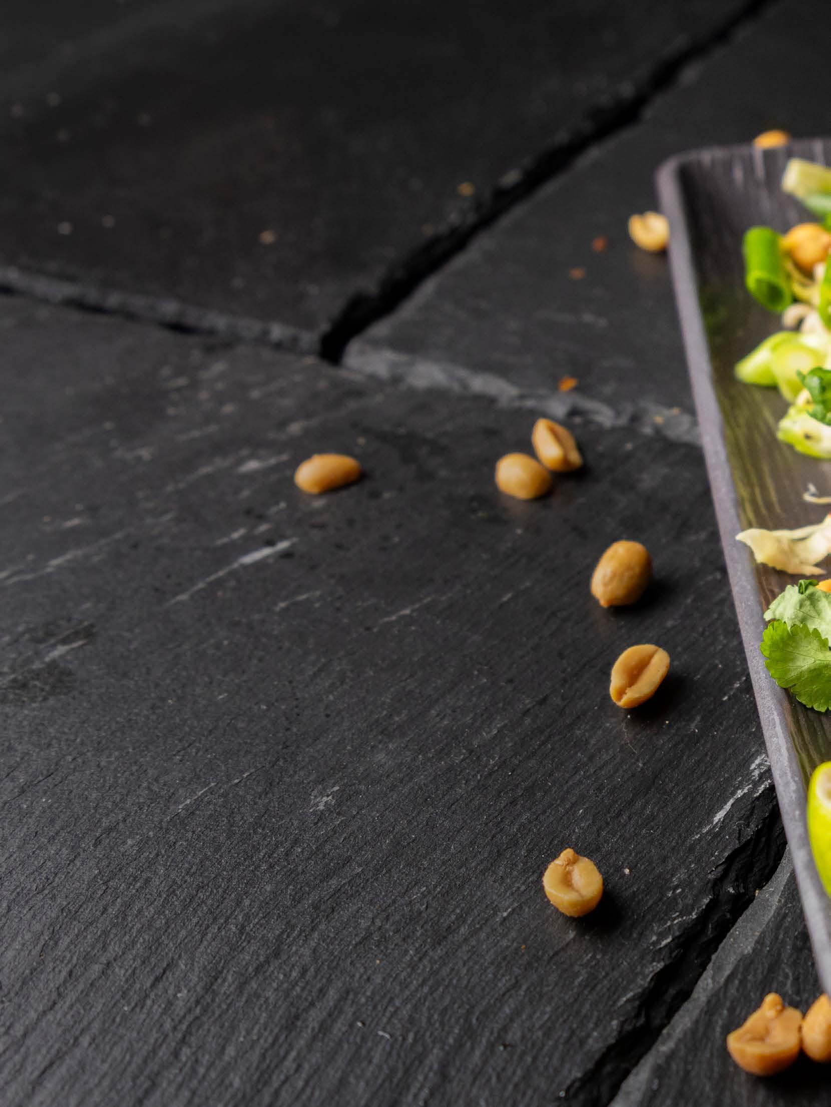 • Top op med peanuts, korianderblade og limebåde og server med det samme.