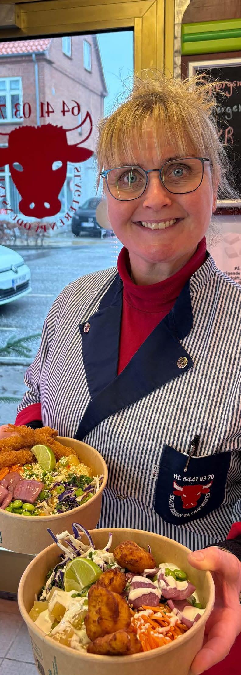 ”Det var lidt af et tilfælde, at vi begyndte at prøve kræfter med at lave Poké Bowls”, fortæller Pia Volhøj Engelberg, gift med Slagtermester Leo, som driver Slagteren på Odensevej. Pia fortæller at det var slagterparrets datter der en eftermiddag kom hjem, og havde fået en Poké Bowl til frokost, som opfordrede Pia til at prøve at lave nogle selv og sælge dem i butikken.
