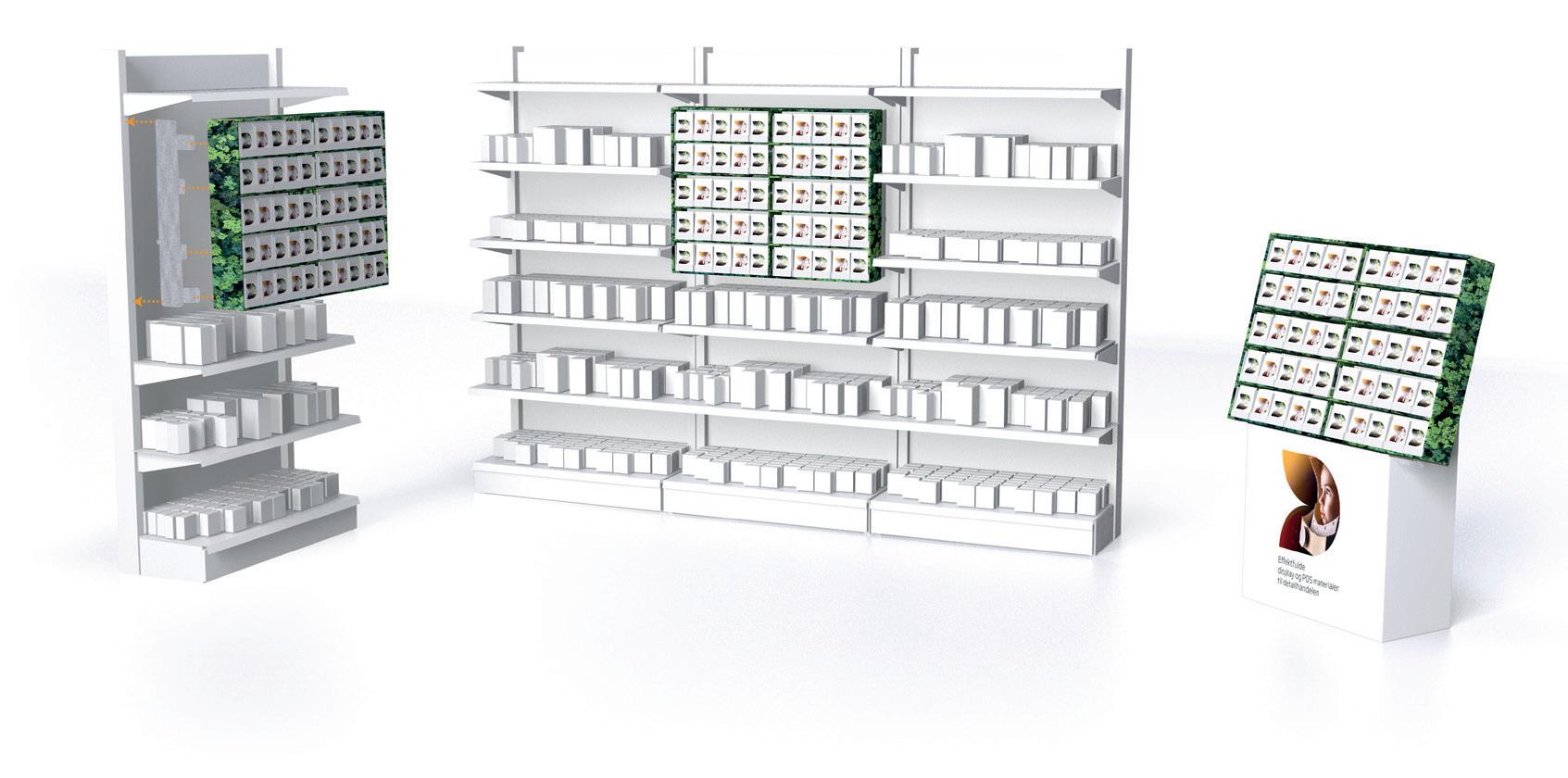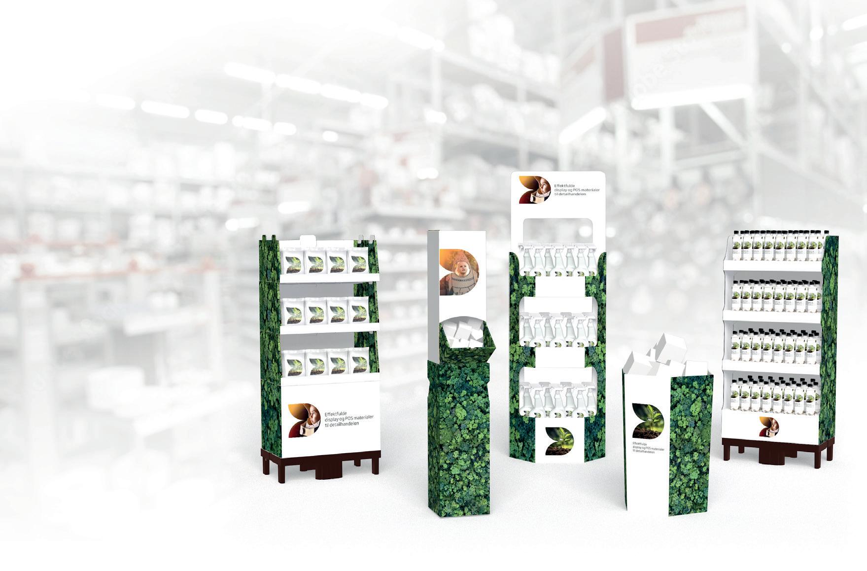 Displaymoduler til lettere varer - f.eks. plantefrø – kan designes således at de kan monteres på butikkens inventar eller stilles frit i butikken.