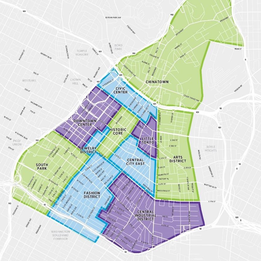 The DTLA Alliance defines Downtown Los Angeles as the area bounded by the 110, 101 and 10 freeways and the LA River, plus Chinatown, City West, and Exposition Park. The projects contained in this report are within a portion of Downtown Los Angeles, shown on the map to the left.
