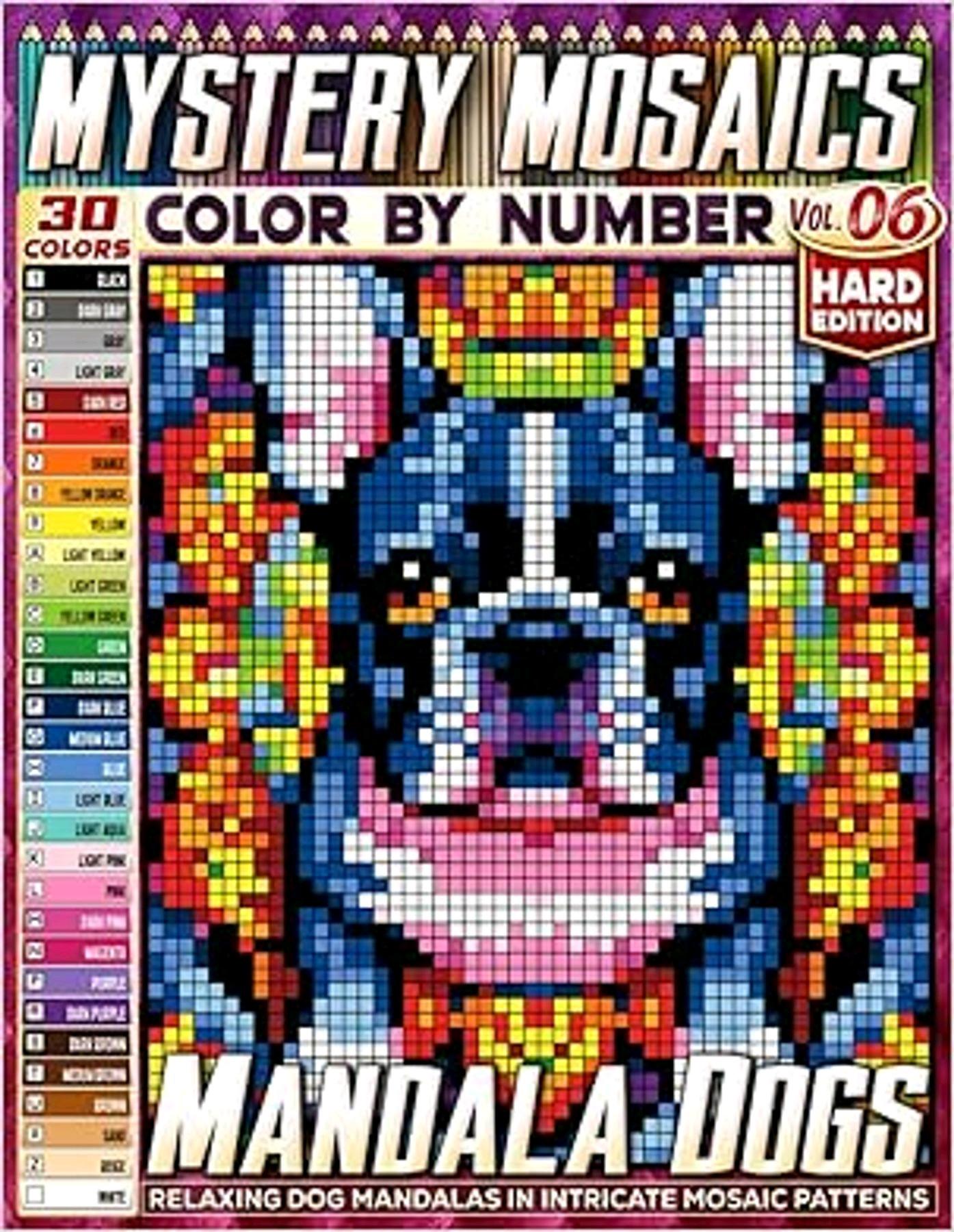 Start reading 'Mandala Dogs - Hard Edition - Mystery Mosaic Color by Number - Vol. 06: 45 Designs in Square, Hexagon, and Stained Glass Style - Relaxing Dog Mandalas in Intricate Mosaic Patterns' by Pipo Pixel instantly.