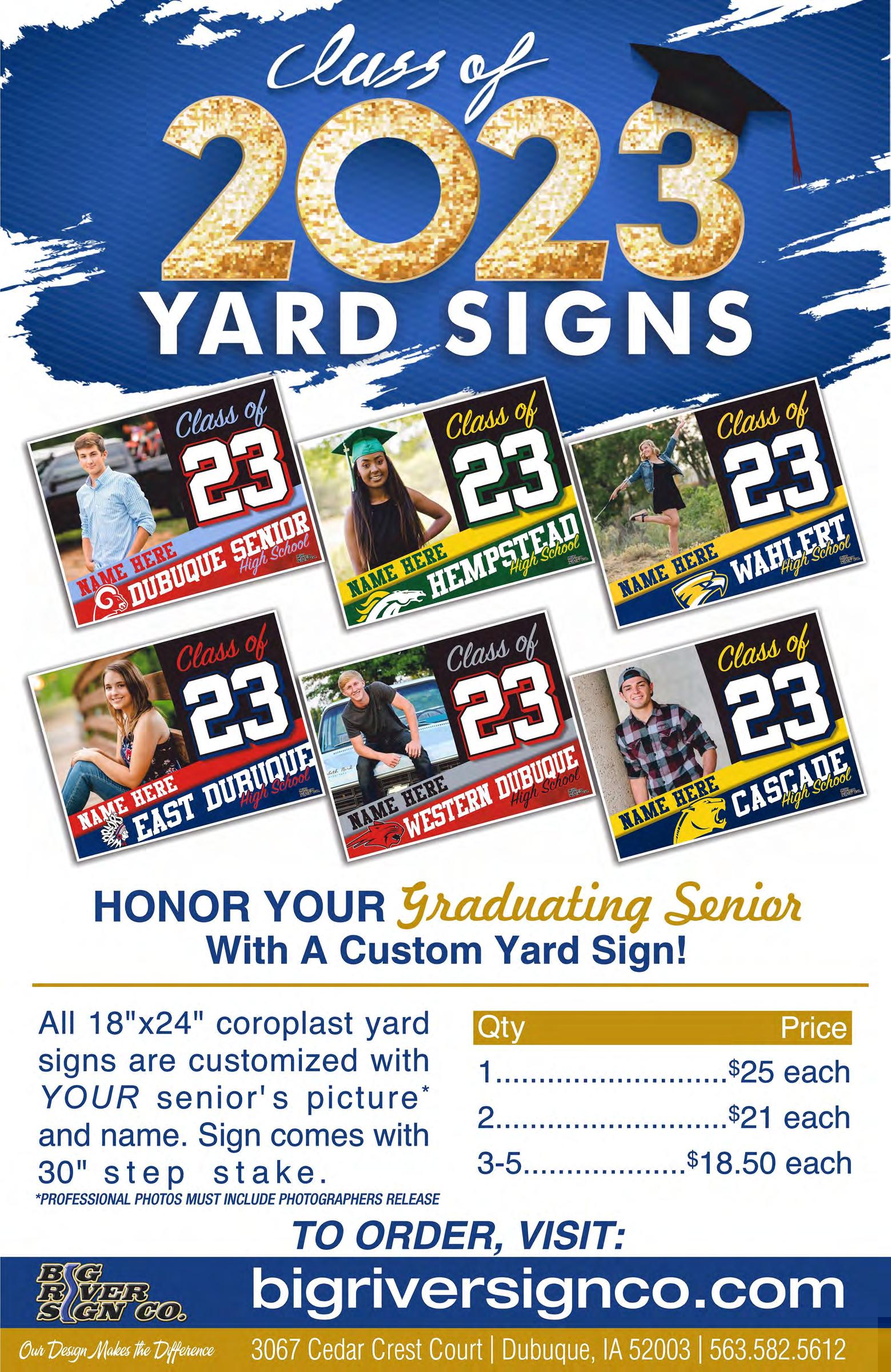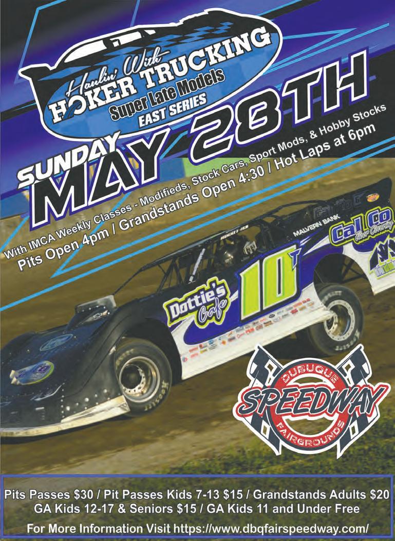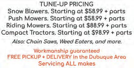 Vol. 60 - No. 21 • 2966 J.F.K. Rd., Dubuque, IA 52002 • Ph. (563) 588-0162 • e-mail: dbqadvertiser@dbqadvertiser.com May 24, 2023 www.DubuqueToday.com “The Little Paper with the Big Impact” The ubuque dvertiser D D A A LP Gas 20 lbs. $19.63 + tax at Sid’s See Page 5 See Page 5 LARGE PEPPERONI PIZZA $6.79 All Day! Everyday See Page 6 See Page 6 Rates are based on the 13-week Treasury Bill Index plus an applied margin. APR may vary based on an individual’s credit score and loan to value ratio. Best standard rate of 6.99% APR is accurate as of April 1, 2023. Rate quoted is based on homeowners with a minimum 720 credit score and with a maximum 80% CLTV (calculated as first mortgage balance plus HELOC limit divided by property value). Maximum APR is 18%. All rates and terms subject to change without notice. HELOCs are subject to DuTrac’s standard lending and credit underwriting practices. Closing costs may vary and range from $0 – $625, including appraisal fee, if needed. HELOC account holder must resi de within the DuTrac Community Credit Union service area and $5 is the requirement to purchase one par value share to establish a membership account. No grace period applies. No prepayment penalties charged. IT’S ON THE HOUSE with a Home Equity Plus Line of Credit. Build something new, refinish something old, or buy something you’ve always wanted. For your best rate on a new Home Equity Plus Line of Credit, visit DuTrac.org. It’s all possible with DuTrac! 17368 254th St., Zwingle, IA •563-357-2178 Just a short 10 minute drive South of the Dubuque Airport (Go South on Hwy. 61 & Turn at Mile Marker 172) Hours: Tues., Wed., Thurs., Fri. 9am-4pm; Sat. 9am-3pm; Or by appt.; Closed Sun. & Mon. Prices good thru Sat., May 27th or while supply lasts. OTTER CREEK MEATS HOT DEALS Just in Time Just in forTime for MEMORIAL MEMORIAL DAY!! DAY!! 15 Flavors of Brats $3.65 lb. & up Regular • Mushroom Swiss • Cheddar & Jalapeño Pepperjack Cheddar Cheese • Philly Steak & Cheese Blue Cheese • Ghost Pepper Cheese •Hawaiian Blueberry • Bacon Cheddar • Mac & Cheese Sauerkraut • Cheesy • Dill Pickle •Jalapeño Pineapple 85% Ground Beef Frozen 10 lb. tubes $3.29 lb. Fully BurntCooked Ends 5 Lb. Avg. Ribeye SteaksChoice Cut $11.50 lb. NY Strip Steaks Choice Cut $9.75 lb. KC Wild Wings $19.00 ea. Seasoned Bone-in Pork Shanks, Fully Cooked, 2 oz. Portions, 5 lb. Bag Cajun Style Roast Beef Fully Cooked 9-11 Lb. Avg. $2.25 lb. Rib Pork Patties Delicious $2.90 lb. Smithfield Thick Cut Cherry Wood Smoked Bacon 1.5 Lb. Pkg. $4.75 ea. Nestle Tollhouse Ready To CookiesBake Peanut Butter Chip or Triple Chocolate 30 per pkg. $10.00 ea. Free Samples! Rack of Pork $2.59 lb. $2.50 lb. Free Samples! Brisket Patties 1/3 LB. Patties $5.99 lb. Pepsi Products 12 Pk. Cans 2 for $13 A GREAT PLACE FOR LUNCH!! The Dubuque Eagles Club Behind the Mall! Fri., May 26 6pm-Midnight Q Casino Back Waters Stage KICK-OFF 2 SUMMER