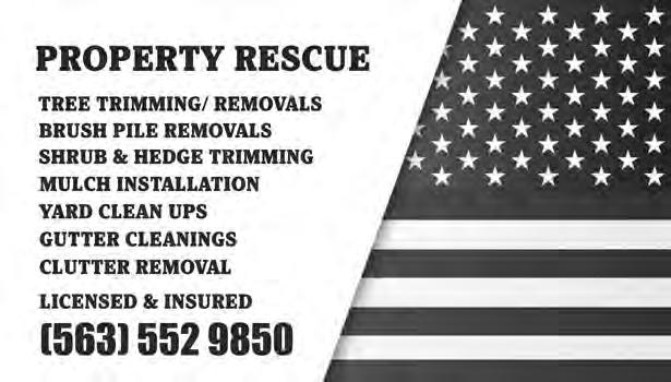 The Dubuque Advertiser – May 31, 2023 – Place classified ads 24/7 on our website at www.DubuqueToday.com Page 10 PAT’S PORTABLE SAWMILL SERVICE (563) 542-9379 Commercial & Residential Chain Link • Cedar • Aluminum • Vinyl Farm Fence • Horse Fence Continuous Fence • Guardrail Russ Duve Construction Ph. 563-590-6143 Complete Building & Remodeling Large Jobs & Small Home Repairs Small Excavating Bobcat Work Demolition Work Free Estimates • Fully Insured • Licensed Serving the Tri-States for over 45 years. Mulgrew Seamless Gutters Family owned and operated! Working all year round! Call Today! 563-513-5720 Concrete Work Excavating Concrete Tear Out Decorative Stamping Concrete Repair Flatwork Commercial & Residential Free Estimates • Insured Dalton Dietz (563) 213-4616 563-585-1111 www.iowaroofpros.com iowaroofguru@gmail.com FREE INSPECTIONS!! FREE ESTIMATES! Insurance Claims Welcome ROOFING • SIDING •GUTTERS JAMISON NIENKE Book Your Roof Replacement This Month and SAVE 10%!! Mention Code “SHOP23” NOW BOOKING SPRING 2023 Logan Keller 563-451-9516 Insured Free Estimates Commercial & Residential Decorative Stamping/Coloring Concrete Repair & Tear Out All Concrete Flatwork HOUSE WASHING/SOFT WASH 563-580-3988 Power Washing — Decks • Concrete Since 2014 JayDan Enterprises LLC Insured residentiallawncareandsnow.squarespace.com Give us a call. We do it all! Full Insured 563-451-7471 FULLY INSURED FREE ESTIMATES BOOK NOW!! SEALCOAT YOUR DRIVEWAY THIS SUMMER! 10% OFF WITH THIS AD GUTTER Cleaning & Repair 563-581-0896 Free Estimates Quality Guaranteed • Gutter Guards • Storm Damage • New Installations • Rain Barrel Install • Drain Tiling GARDEN TILLING 42" Tiller Free Estimates Established Gardens Only Call or text 563-451-8821 • Decorative Concrete • Flatwork • Free Estimates • Insured C&C CONCRETE Chris - 563-451-7433 • Chris - 563-542-8024 Snowblowers Mowers Chippers/Shredders Chainsaws Leaf Blowers Log Splitters and More! 563-590-1973 Jerry Sigwarth Balltown, IA SALES & SERVICE • Pickup & Delivery Available •FREE In-shop Estimates G&R TREE SERVICE Trees Over Structures Excellent Clean-Up Stellar Reviews Cost-Effective Professional Fully Insured Greg: 563.580.8924 Ron: 563.663.2501 NOW BOOKING FOR 2023 PROPERTY RESCUE • TREE TRIMMING & REMOVAL • YARD CLEAN UPS • CLUTTER REMOVAL • SHRUB & HEDGE TRIMMING • MULCH INSTALLATION • GUTTER CLEANING • BRUSH PILE REMOVAL OPEN 7 DAYS A WEEK! LICENSED & INSURED 563-552-9850 Serving the Tri-State Area: Iowa-Illinois-Wisconsin • Retaining Walls • Plantings • Rock • Mulch • Edging • Skid Loader Service • Lawn Mowing • Fertilizer + Weed Control Also: Commercial Snow Removal MAI CONCRETE, LLC Rick Mai Owner For all your concrete needs … Phone 563-513-9121 Quality comes first! • 30 years experience • Licensed • Bonded • Insured FREE Estimates Shop: 815.554.6197 Cell: 563.580.8924 MATT BREINER CONSTRUCTION Over 30 years experience. Licensed & Insured. Free Estimates. Call Matt 563-542-0266 • Kitchens • Garages • • Decks • Additions • • Bathrooms • • New Home Construction • • Interior Remodeling • SERVICES SERVICES OFFERED OFFERED The Romans made extensive use of nails and developed the basic claw hammer as a tool for both driving and removing them. Affordable Lawn Service: Weekly & Bi-weekly Cuts. Free Estimates. Call Tim 563-582-2801 or 563-207-6854 CLEAN & REPAIR IT ALL!! Attic, Basement, Garage & Estate cleaning. Remove & Haul Rubbish. Maid & Handyman. Licensed Plumber, Drain Cleaning. KANNDO 24/7. 563-556-6168 DENLOR PAINTING AND DECORATING Interior, Exterior Painting. Over 30 years experience. Quality work, Fair rates, Excellent references, insured, Free estimates, Ph. 563-588-2247 HANDYMAN Carpentry, Drywall, Decks, Painting, Plumbing, Power Washing No Job Too Small! 563-580-7090