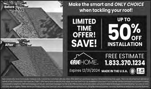 Replace your roof with the best looking and longest lasting material steel from Erie Metal Roofs! Three styles and multiple colors available. Guaranteed to last a lifetime! Limited Time Offer up to 50% off installation + Additional 10% off install (for military, health workers & 1st responders.) Call Erie Metal Roofs: 1844-907-2386. (mcn)
