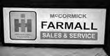 SIGNS - ADVERTISING STANDS Selling at 12:30 pm: Allis Chalmers Round Sign, lights; McCormick Farmall Sales & Service, lights; AC Sign, lights; (3) JD Signs; JD Quality Farm Equipment; JD Equipment Parts/Service; Case Sign w/ Eagle; Neolite Clock, works; Pepsodent Display, neat; Graceline Napkins; Dubuque Star; Ice Cold Pepsi Cola Sold Here sign; UPS Sign, works; Shock-Top Sign, lights; Chrysler Plymouth, lights; Coats & Clarks Sewing Display; Biflex Bras Display; Corgi Display Spinner; Everglow Music Display