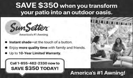 SunSetter. America’s Number One Awning! Instant shade at the touch of a button. Transform your deck or patio into an outdoor oasis. Up to 10-year limited warranty. Call now and SAVE $350 today! 1-855462-2330. (mcn)