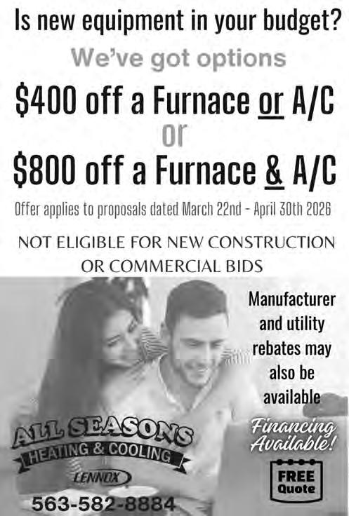 Searching for a rewarding career that will make a difference in the community? The Dubuque County Civil Service Commission will administer competitive written examinations for the position of Dubuque County Deputy Sherriff on Saturday, April 18, 2026. Base wages start at $68,577.60 increasing to $89,044.80 after 3 years with an attractive benefits package. Veterans’ preference available. Call 563-583-4789 or email: civilservice@dbqcosheriff.com with any questions. Apply online before April 3, 2026, at https:// www.governmentjobs.com/ careers/dubuquecounty