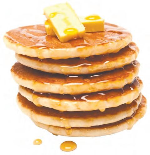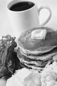 Serving Eggs, Omelets, Ham, Sausage, Pancakes, Toast, Coffee, App. Juice & Milk