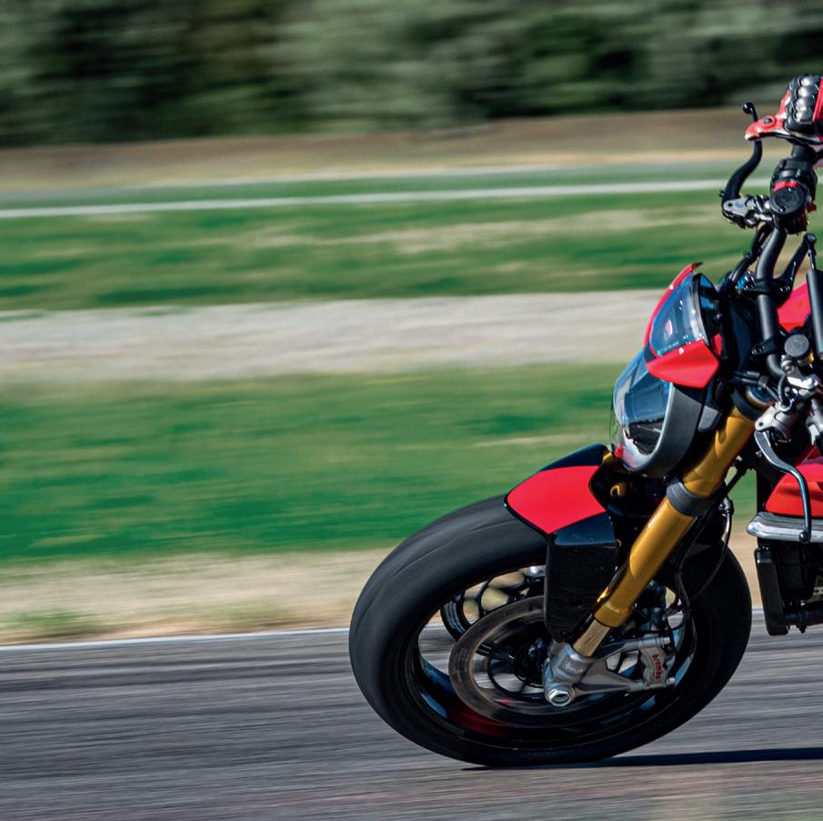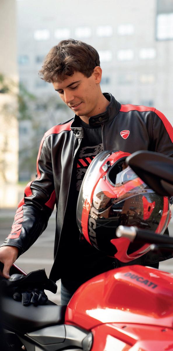 WARNING: The photos and technical information in this catalogue may refer to prototypes subject to modifications during production and are purely for illustration and reference purposes, and are therefore not binding on Ducati Motor Holding S.p.A. Sole Shareholder Company - Company subject to the direction and coordination of AUDI AG (“Ducati”). Ducati cannot be held responsible for any print and/or translation errors. This catalogue is transnational and therefore some products may not be available and/or their features may vary in accordance with local laws. Not all colours and versions are available in each country. Ducati reserves the right to make changes and improvements to any product without obligation of prior notice or to make such changes to products already sold. Further characteristics of the products are contained in the pertinent owner’s manuals. The products represented are not definitive versions and are therefore subject to significant changes at Ducati’s discretion without prior notice. The photographs published in this catalogue show only professional riders under controlled street conditions. Do not attempt to imitate such riding behaviour as it could be dangerous for you or other people on the road. This catalogue, including but not limited to the trademarks, logos, texts, images, graphics and table of contents herein, constitute Ducati intellectual property, or in any event Ducati has the right to reproduce it; any reproduction, modification or other whole or partial use of the catalogue or its contents, including publication on the Internet without the prior written consent of Ducati, is prohibited.