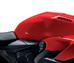 La parte inferiore della carenatura è caratterizzata dall’inserimento del logo Ducati Corse nella zona dei nuovi estrattori di aria calda e da un dettaglio in rosso su cui è riportato il nome della moto, presente anche sulla sella nera in doppio materiale.