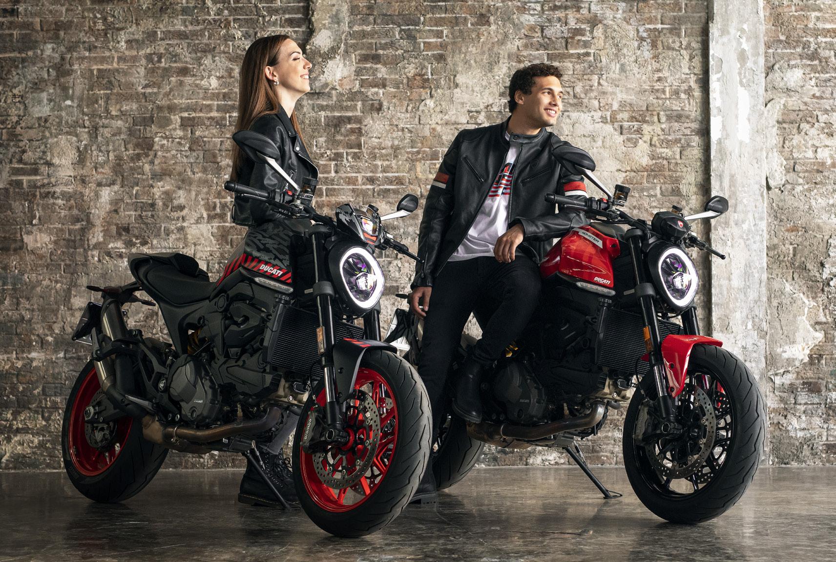 El estilo icónico y atemporal del Monster entra en una nueva era con un diseño avanzado y contemporáneo. Los elementos distintivos siguen estando ahí: el motor, en el centro de la escena como protagonista indiscutible, sobre el que destaca el inconfundible depósito con forma de «espalda de bisonte», con el faro circular «incrustado en los hombros», y el colín, limpio y esbelto. Todo ello vestido con un aspecto nunca antes tan moderno, deportivo y tecnológico, pensado para exaltar la personalidad de la moto y maximizar la diversión de quien la conduce.