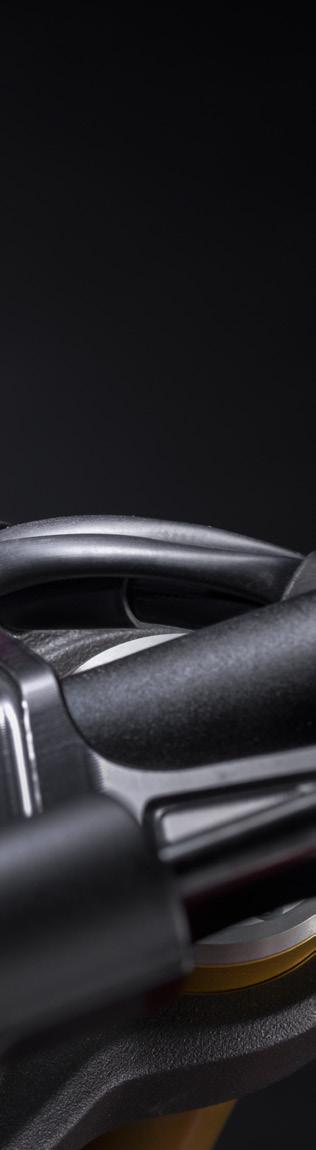 As suspensões Öhlins totalmente ajustáveis, com o garfo 0,6 kg mais leve do que na Monster e na Monster+, ampliam as sensações e a distância ao solo e, consequentemente, o ângulo de inclinação.
