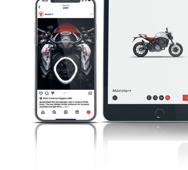 AVISO: as fotos e informações técnicas presentes neste catálogo podem referir-se a protótipos que podem ser modificados durante a produção e destinam-se apenas a fins ilustrativos e de referência, pelo que não são vinculativas para a Ducati Motor Holding S.p.A. Sociedade Unipessoal — Sociedade sujeita a atividade de direção e coordenação da AUDI AG (“Ducati”). A Ducati não será responsável por quaisquer erros de impressão e/ou tradução. Este catálogo tem distribuição transnacional e alguns produtos podem não estar disponíveis e/ou as suas características podem variar de acordo com as diferentes legislações locais. Nem todas as cores e versões são distribuídas em todos os países. A Ducati reserva-se o direito de realizar alterações e melhorias a qualquer produto sem aviso prévio ou de efetuar as referidas alterações a produtos já vendidos.