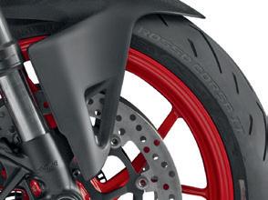Diablo Rosso Corsa II de 120/70 ZR17 na dianteira e 180/60 x ZR17 na traseira. O Diablo Rosso Corsa II é o primeiro pneu de moto multicomponente da Pirelli, uma tecnologia desenvolvida no Campeonato Mundial de Superbike, que adota áreas com diferentes compostos na dianteira e na traseira a fim de otimizar a área de contacto entre o pneu e o asfalto, garantindo assim a máxima aderência em todas as condições e com todos os ângulos de inclinação, na estrada e em pista, em piso seco ou molhado. Também novo é o design da banda de rodagem com o ombro suave para uma melhor otimização da área de contacto e, consequentemente, um desgaste mais regular. O perfil e a estrutura também derivam da experiência racing e foram concebidos para assegurar a agilidade e a sensação ao controlar a moto em curva.