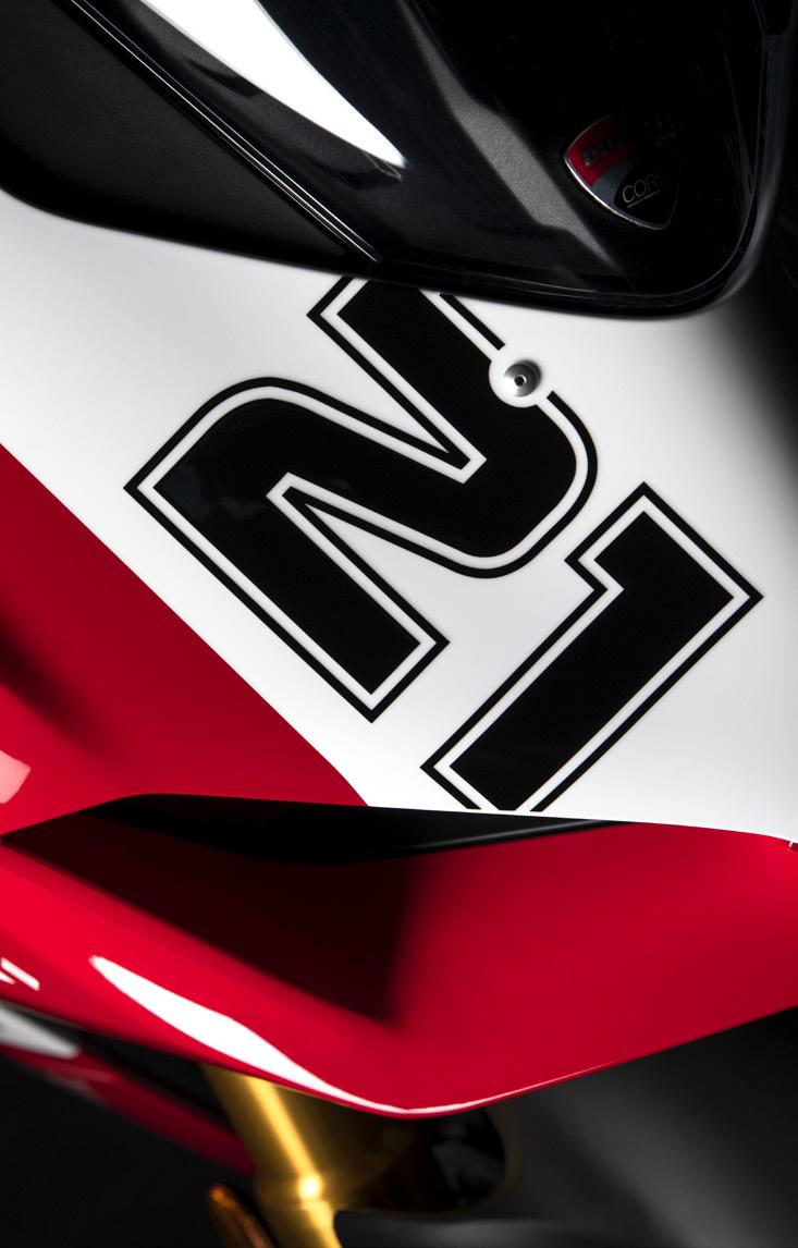 The products represented are not definitive versions and are therefore subject to significant changes at Ducati’s discretion without prior notice. The photographs published in this catalogue show only professional riders under controlled street conditions. Do not attempt to imitate such riding behaviour as it could be dangerous for you or other people on the road. This catalogue, including but not limited to the trademarks, logos, texts, images, graphics and table of contents herein, constitute Ducati intellectual property, or in any event Ducati has the right to reproduce it; any reproduction, modification or other whole or partial use of the catalogue or its contents, including publication on the Internet without the prior written consent of Ducati, is prohibited.