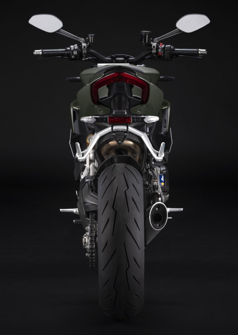 La gama Streetfighter V2 se compone con el color Rosso Ducati y, con el MY23, se amplía con la introducción de un nuevo color verde metalizado mate que resalta el diseño de la moto: Storm Green.