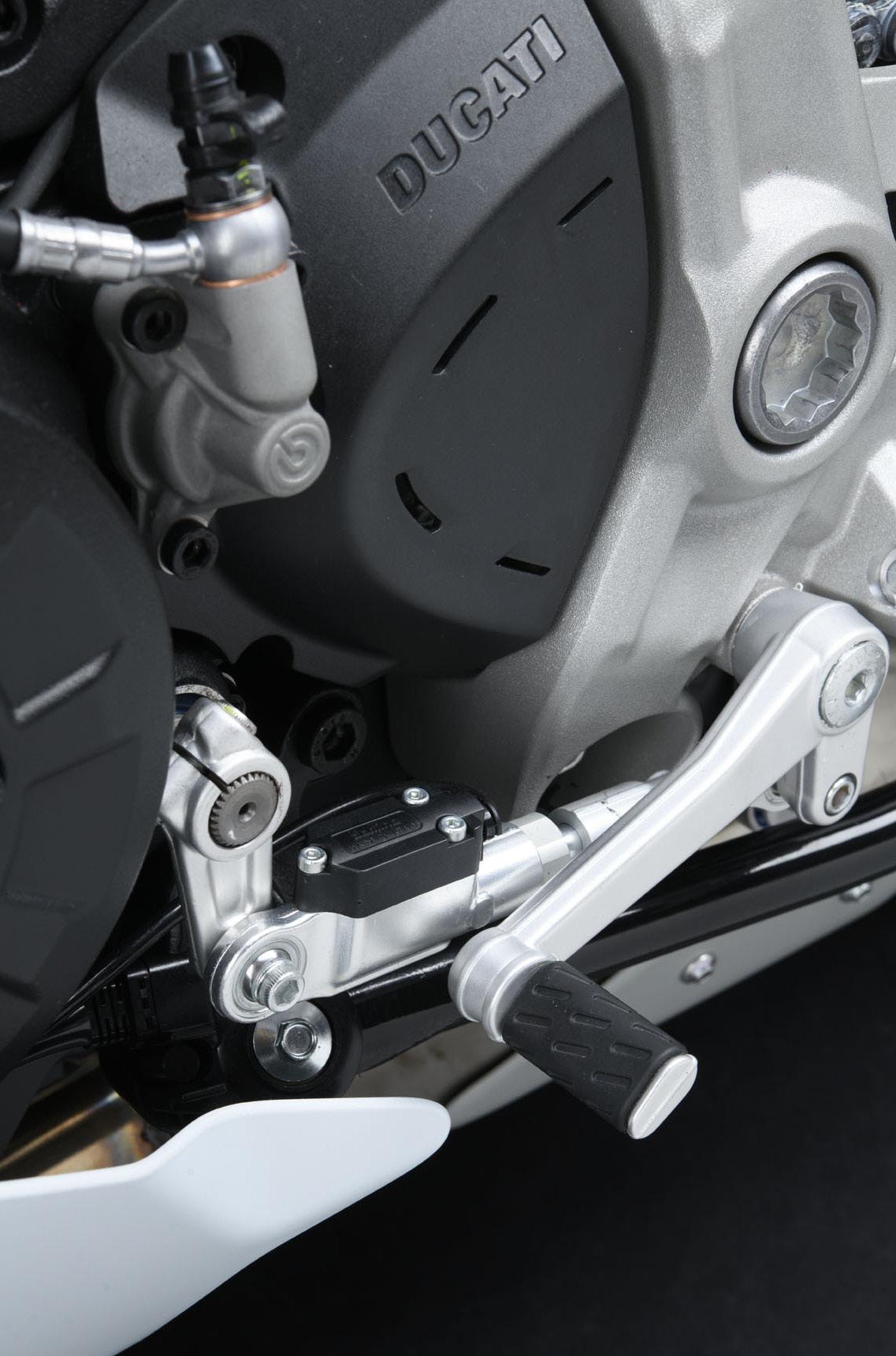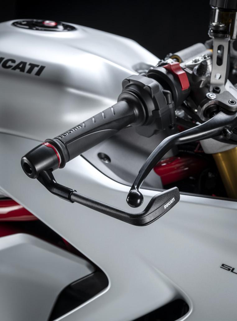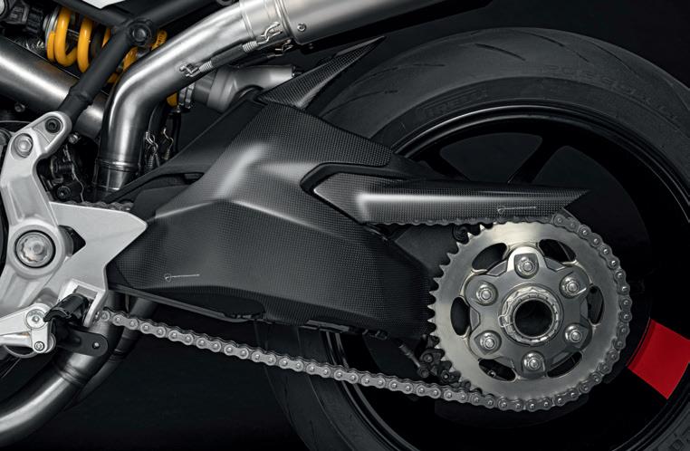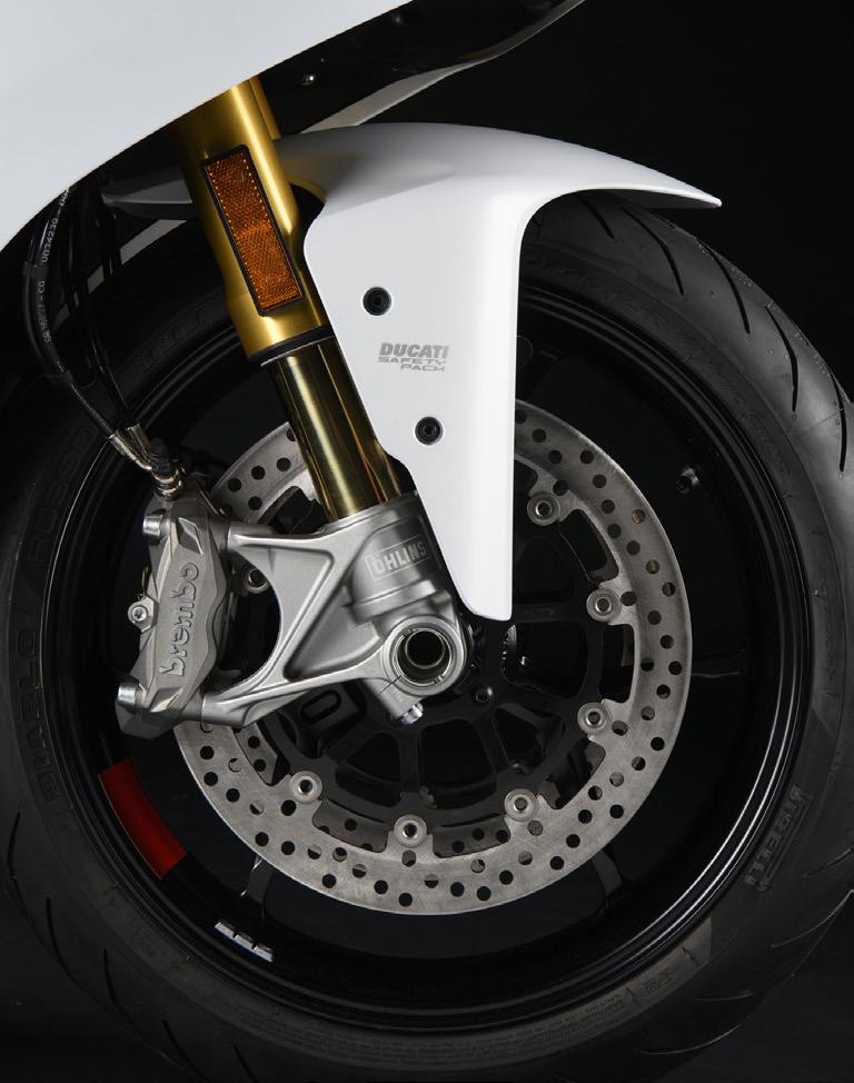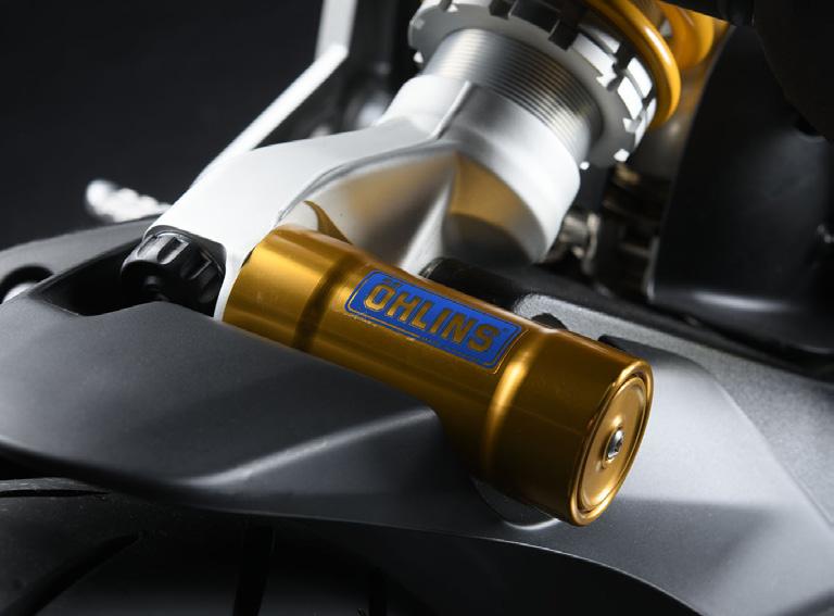O equipamento ciclístico de ambas as versões pode ser complementado com o amortecedor de direção Öhlins ajustável, disponível como acessório Ducati Performance.