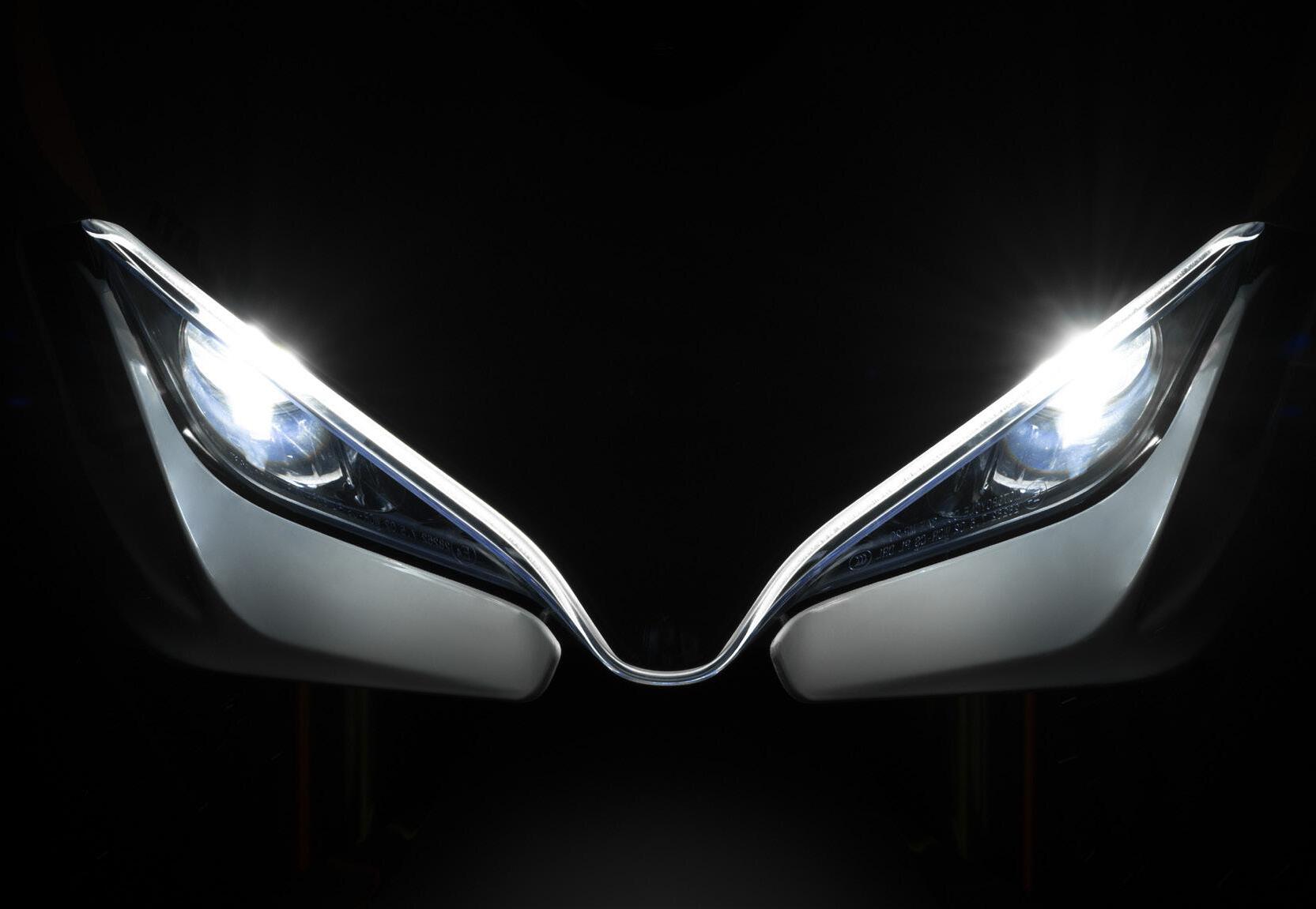 Il Daytime Running Light (DRL) che richiama immediatamente la firma luminosa affilata della Panigale V4 ha una realizzazione raffinata con un opalino che diffonde la luce in modo omogeneo. Il proiettore è completato da due moduli bi-funzione a LED per anabbagliante e abbagliante che permettono di avere uno “sguardo” simmetrico a luci accese. I due moduli sono incassati in una cornice dalla finitura brillante che rende questo componente tecnologico unico.