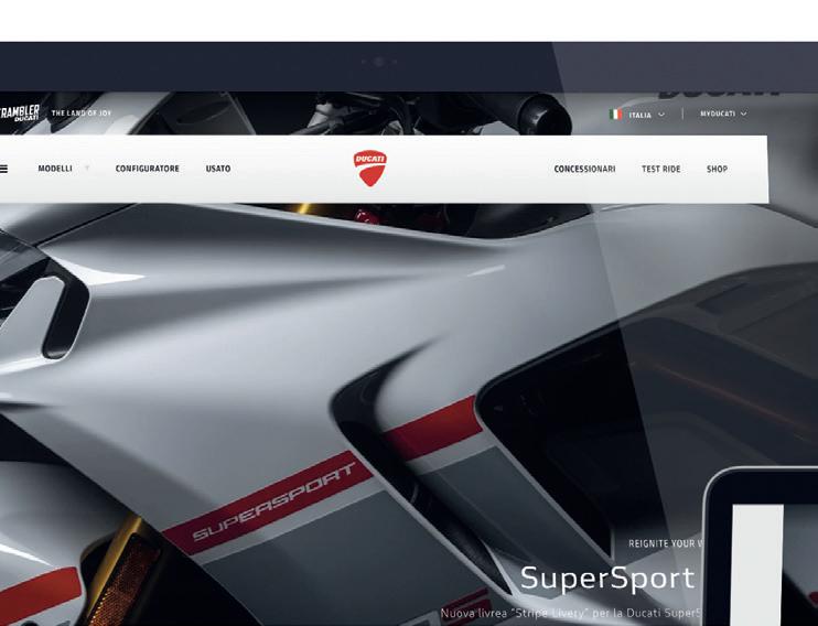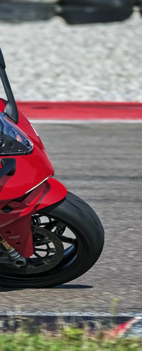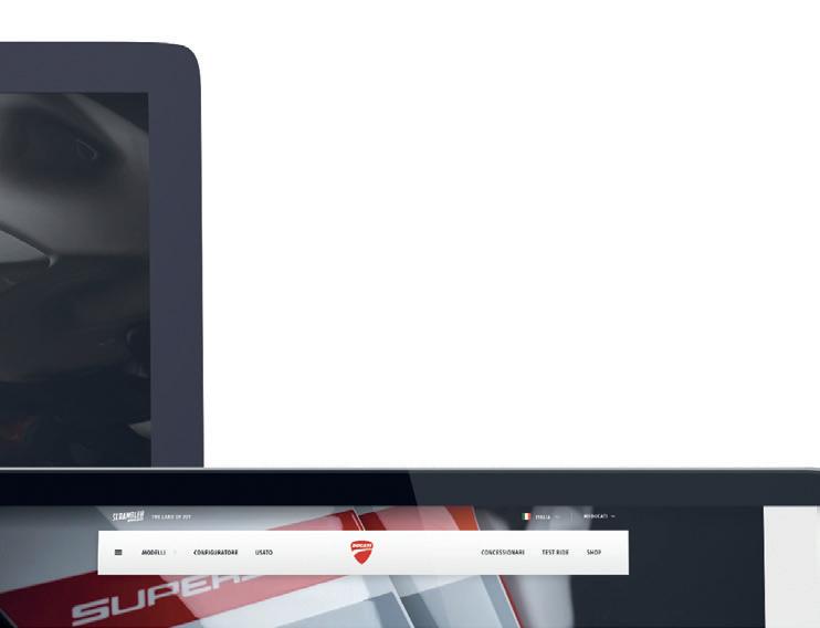 Ulteriori caratteristiche dei prodotti sono contenute nei relativi libretti di uso e manutenzione. I prodotti rappresentati non sono versioni definitive e pertanto sono soggetti a modifiche anche rilevanti a discrezione di Ducati, senza obbligo di preavviso. Le fotografie pubblicate in questo catalogo mostrano solo piloti professionisti in condizioni stradali controllate. Non imitate simili comportamenti di guida che potrebbero essere pericolosi per voi o per gli altri utenti stradali. Il presente catalogo, inclusi a mero titolo esemplificativo e non esaustivo i marchi, i loghi, i testi, le immagini, le grafiche e l’indice contenuti all’interno dello stesso, costituiscono proprietà intellettuale di Ducati o comunque essa ne ha diritto di riproduzione; è vietata ogni riproduzione, modifica o altro uso integrale o parziale del catalogo o del suo contenuto iva inclusa la pubblicazione in internet senza il previo consenso scritto di Ducati.