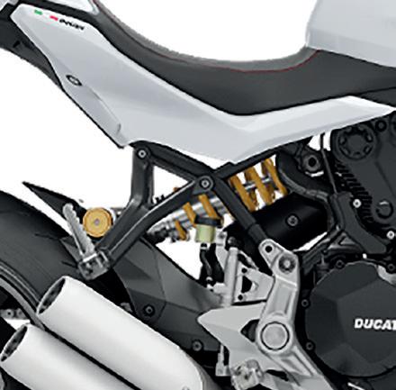 telaietto posteriore reggi sella, anch’esso in acciaio. Questa configurazione permette di avere un telaio molto compatto, leggero e dall’elevata rigidità torsionale, caratteristica perfetta per esaltare le doti dinamiche della SuperSport 950.