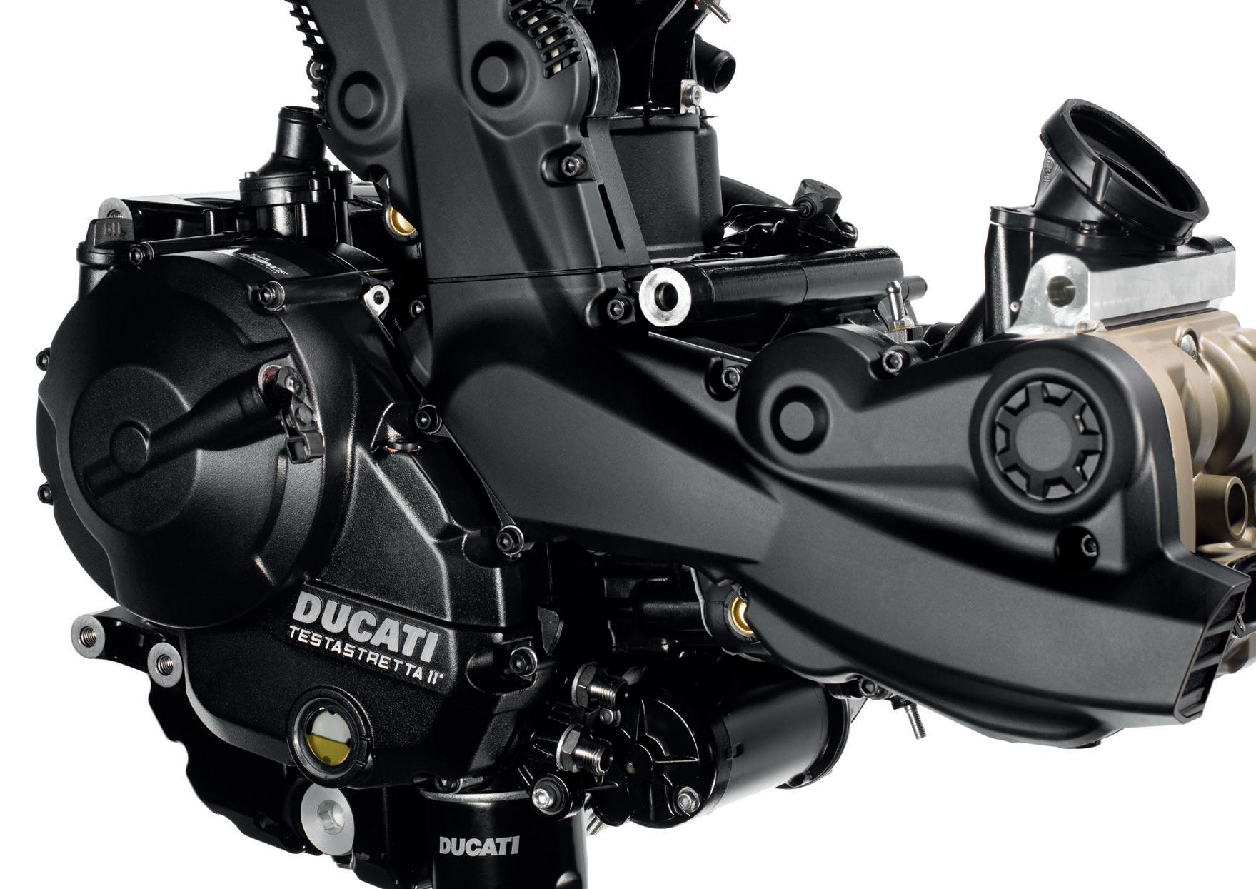 Il bicilindrico Ducati Testastretta 11° sviluppa una curva di coppia piena e corposa su tutto l’arco di utilizzo, per una risposta sempre pronta a ogni richiamo del gas, caratteristica fondamentale per una moto dall’utilizzo prevalentemente stradale.
