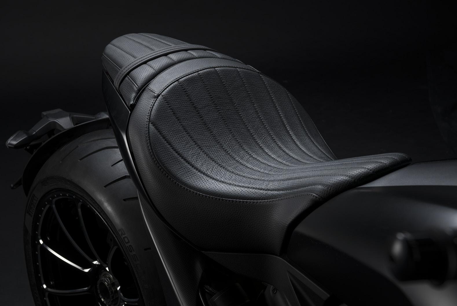 The front position footpegs (1) can be adjusted according to three positions, as standard. Thanks to their specific anchoring system, they can be moved 22.5 mm forward or back with respect to the standard position. In addition, a central peg kit (3) and a rear position peg kit (2) are available, both of which can be adjusted according to various positions. The standard handlebar and seat can be replaced with versions that better suit a rider’s tastes and needs. For the XDiavel S and XDiavel Black Star passenger, standard equipment includes a larger, more comfortable seat and a backrest that perfectly integrates with the lines of the bike.