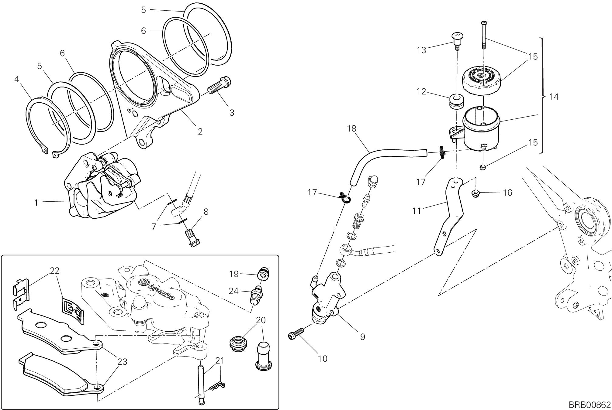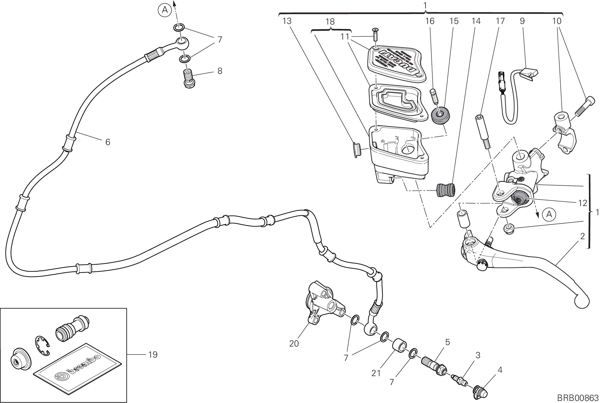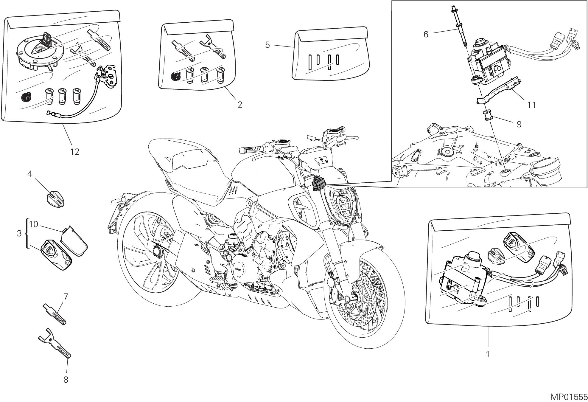 INDEX /24 D38000024 Page 6 / 174 SPARE PARTS CATALOGUE 20/01/2024 Drawing 10A - ELECTRIC STARTING AND IGNITION............................................................................................................................................................................................................................ 60 Drawing 11A - FRONT HEAD - TIMING SYSTEM................................................................................................................................................................................................................................. 62 Drawing 11B - REAR HEAD - TIMING SYSTEM.................................................................................................................................................................................................................................... 64 Drawing 11C - FRONT HEAD............................................................................................................................................................................................................................................................... 66 Drawing 11D - REAR HEAD..................................................................................................................................................................................................................................................................70 Group TOOLS 74 Drawing 01A - WORKSHOP SERVICE TOOLS (ENGINE)....................................................................................................................................................................................................................... 74 Drawing 01B - WORKSHOP SERVICE TOOLS (FRAME)........................................................................................................................................................................................................................ 76 Drawing 01C - CHECK INTRUMENT DDS............................................................................................................................................................................................................................................. 78 Drawing 01D - WORKSHOP SERVICE TOOLS....................................................................................................................................................................................................................................... 80 Group TYRES 82 Drawing A - TYRES...............................................................................................................................................................................................................................................................................82 Drawing B - ORIGINAL EQUIPMENT TYRES......................................................................................................................................................................................................................................... 84 Drawing C - PIRELLI DIABLOâ„¢ ROSSO II..............................................................................................................................................................................................................................................86 Group FRAME............................................................................................................................................................................................................................................................................................ 88 Drawing 15A - STAND..........................................................................................................................................................................................................................................................................88 Drawing 16A - FRONT SPROCKET - CHAIN..........................................................................................................................................................................................................................................90 Drawing 17A - STEERING ASSEMBLY................................................................................................................................................................................................................................................... 92 Drawing 17B - FRONT FORK................................................................................................................................................................................................................................................................94 Drawing 18A - REAR SWINGING ARM.................................................................................................................................................................................................................................................96 Drawing 19A - FRONT BRAKE PUMP...................................................................................................................................................................................................................................................98 Drawing 19B - FRONT BRAKE SYSTEM.............................................................................................................................................................................................................................................. 100 Drawing 19C - BRAKING SYSTEM ABS...............................................................................................................................................................................................................................................102 Drawing 19D - REAR BRAKE SYSTEM........................................................