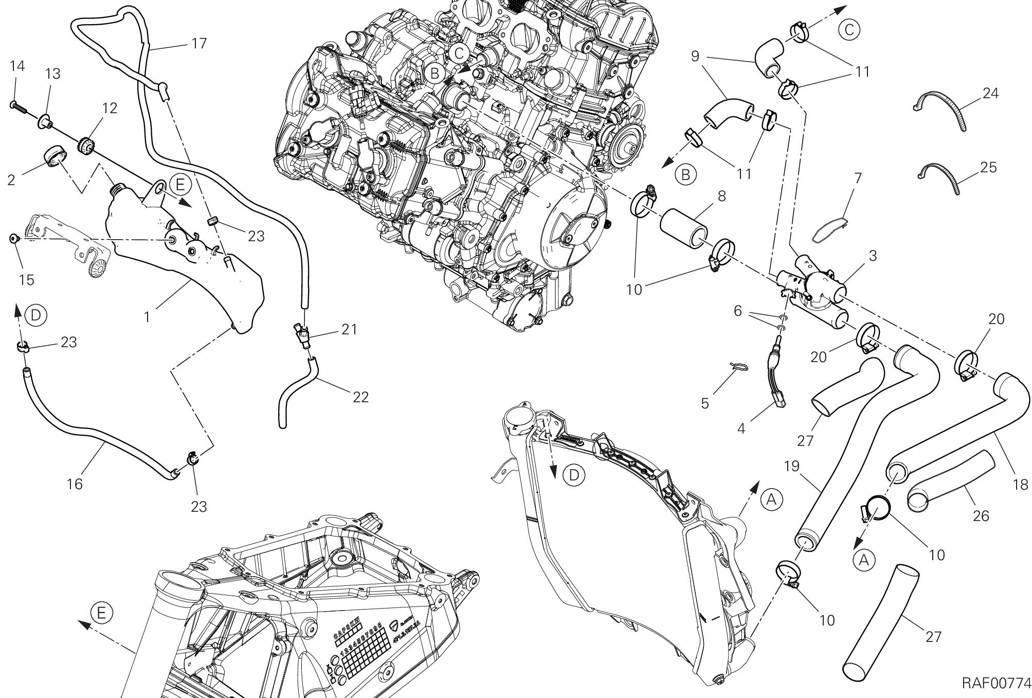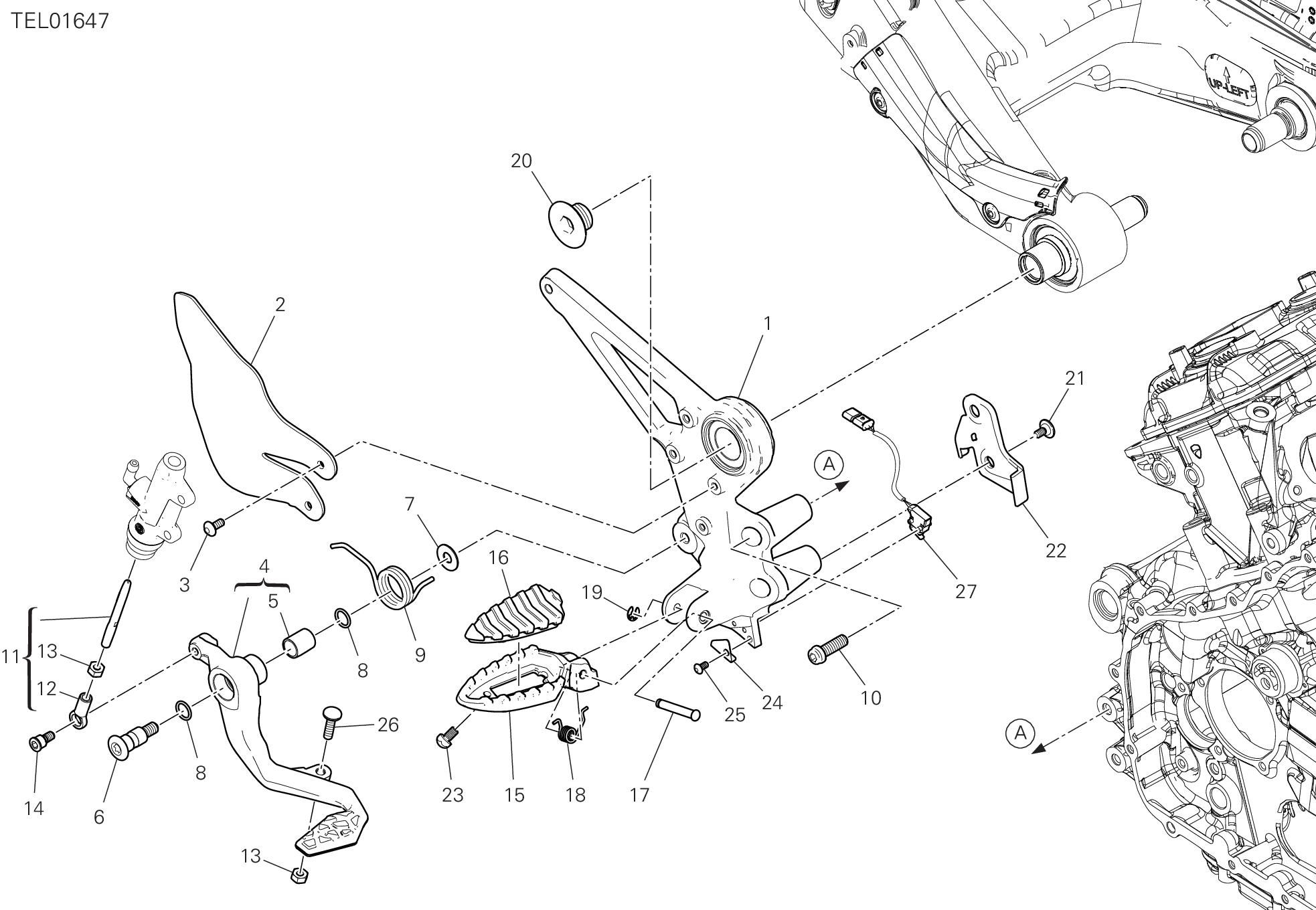 INDEX SPARE PARTS CATALOGUE 20/01/2024 Page 7 / 174 /24 D38000024 Drawing 24B - COOLING CIRCUIT......................................................................................................................................................................................................................................................118 Drawing 25A - FOOTRESTS, LEFT.......................................................................................................................................................................................................................................................120 Drawing 25B - FOOTRESTS, RIGHT.................................................................................................................................................................................................................................................... 122 Drawing 26A - REAR MUDGUARD.....................................................................................................................................................................................................................................................124 Drawing 27A - FRONT WHEEL...........................................................................................................................................................................................................................................................126 Drawing 28A - REAR WHEEL 128 Drawing 28B - REAR WHEEL SPINDLE...............................................................................................................................................................................................................................................130 Drawing 29A - FUEL TANK.................................................................................................................................................................................................................................................................132 Drawing 30B - EXHAUST SILENCER....................................................................................................................................................................................................................................................134 Drawing 30C - SECONDARY AIR SYSTEM...........................................................................................................................................................................................................................................136 Drawing 30D - ELECTRIC MOTOR, EXHAUST VALVE 138 Drawing 31A - SEAT........................................................................................................................................................................................................................................................................... 140 Drawing 32A - FRAME....................................................................................................................................................................................................................................................................... 144 Drawing 32B - REAR FRAME COMP...................................................................................................................................................................................................................................................146 Drawing 32C - LOCKER...................................................................................................................................................................................................................................................................... 148 Drawing 33A - OIL COOLER............................................................................................................................................................................................................................................................... 150 Drawing 34A - AIR INTAKE - OIL BREATHER......................................................................................................................................................................................................................................152 Drawing 35A - THROTTLE BODY........................................................................................................................................................................................................................................................154 Drawing 35B - CANISTER FILTER........................................................................................................................................................................................................................................................156 Drawing 36B - FAIRING......................................................................................................................................................................................................................................................................158 Drawing 36C - FAIRING......................................................................................................................................................................................................................................................................160 Drawing 36D - FAIRING..................................................................................................................................................................................................................................................................... 162 Alphanumeric index.........................................................................................................................................................................................................................
