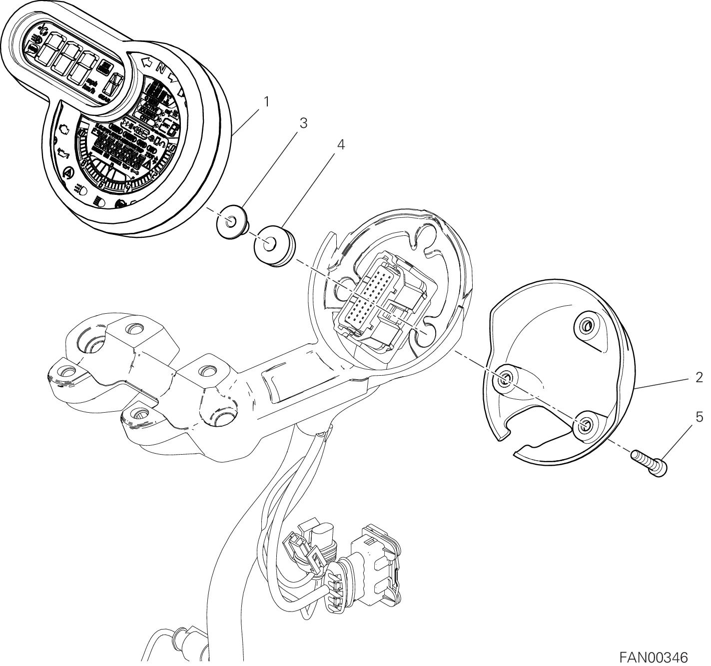 DRAWING 15A - INSTRUMENT PANEL GROUP ELECTRIC SPARE PARTS CATALOGUE 04/07/2022 Page 23 / 160 1100 TRIBUTE PRO USA /23 D31000023 POS. CODE DESCRIPTION QTY VALIDITY NOTES 1 40611761B INSTRUMENT PANEL 1 40611761C INSTRUMENT PANEL 1 2 24714911A COVER, METER 1 3 71615151AA SPACER 3 4 76411141A VIBRATION DAMPER PAD 3 5 77150443B SCREW TCEI M5X22 UNI5931 8.8 3
