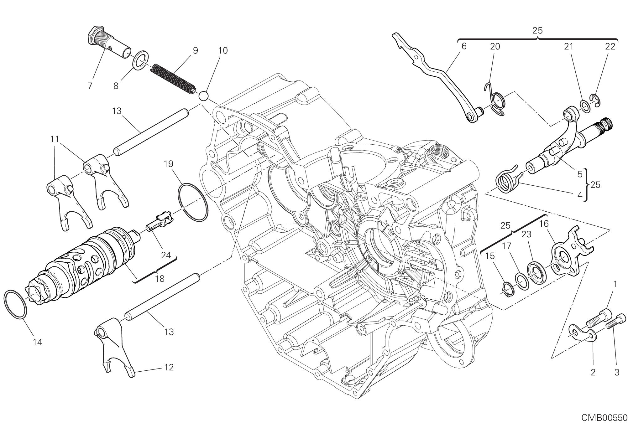 DRAWING 02A - SHIFT CAM - FORK GROUP ENGINE 1100 TRIBUTE PRO USA /23 D31000023 Page 26 / 160 SPARE PARTS CATALOGUE 04/07/2022