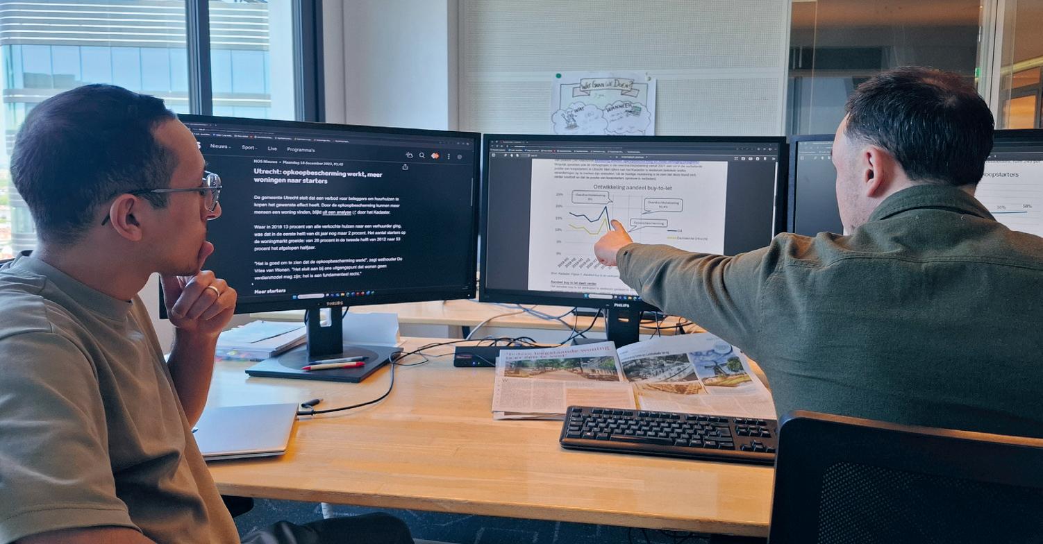 Jamal (afdeling Wonen) en Laurens (afdeling VTH) van de gemeente Utrecht aan het werk.