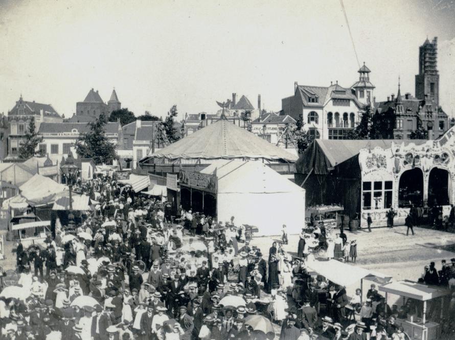 Net als veel 19e eeuwse uitvindingen begon ook de film op de kermis. Het was een ideale plek om de nieuwe attractie uit te proberen. Wie weet zou het aanslaan. We beginnen onze wandeling op het Vredenburg. Daar was weliswaar niet de eerste filmvertoning in Utrecht, maar je kon er op de jaarlijkse kermis in juli vrijwel altijd films zien. Op de kermis van 1897 gebeurde dat voor het eerst en wel in de Cinematographe van kermisreiziger Henri Grünkorn, die ook op de kermis van 1898 en 1899 present zou zijn. In 1899 liet hij een film maken over het uitrukken van de Utrechtse brandweer waarmee hij een enorm succes oogstte.