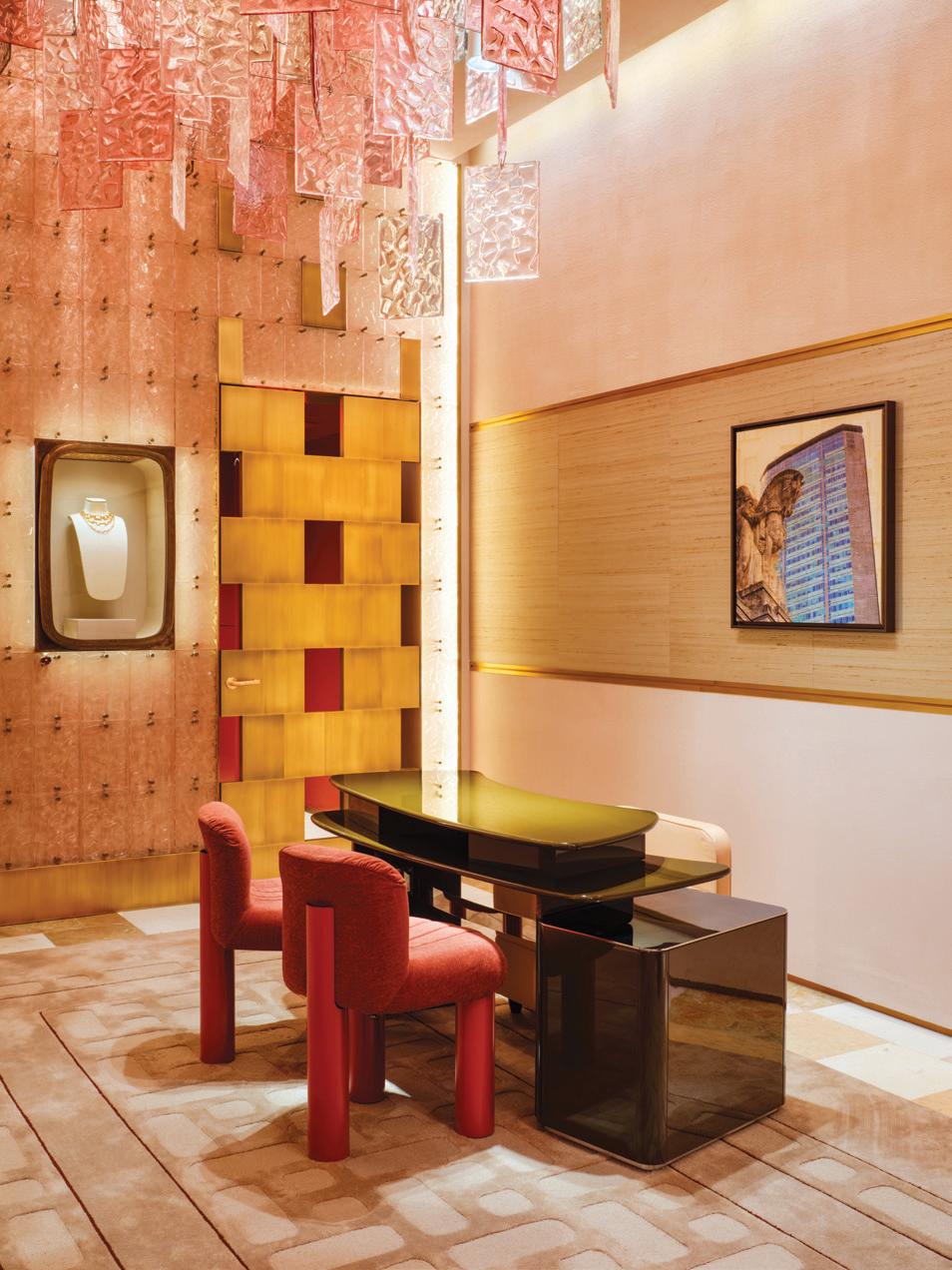 Louis Vuitton has unveiled a two-story store on Worth Avenue featuring the maison’s entire universe with an assortment of men’s and women’s collections, including leather goods, accessories, ready-to-wear, shoes, watches, fine jewelry and fragrance, as well as the newly launched Louis Vuitton Home Collections. A highlight of the layout is an intimate private salon on the second floor, where clients can enjoy personalized appointments and bespoke services. The store showcases a white stucco façade with metal-trimmed glass openings, echoing the Mediterranean revival architecture of the surrounding neighborhood. Inside are European oak wood flooring, a sculptural wood staircase wrapped in custom dégradé wallpaper and artwork by Rémy Benito, Trudy Benson, Isadora Capraro, Lautaro Cuttica and John Vitale. louisvuitton.com