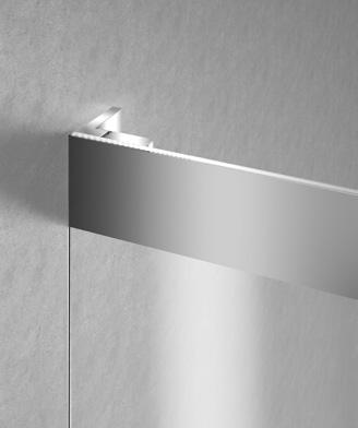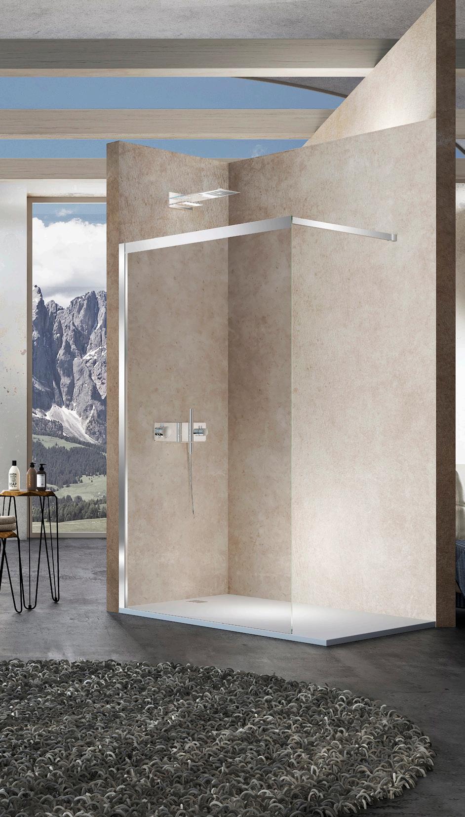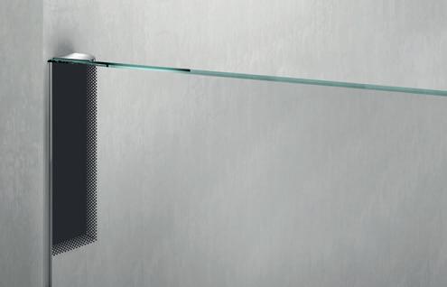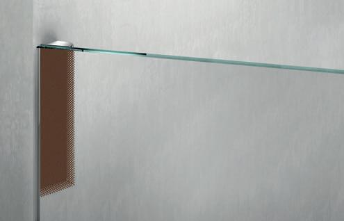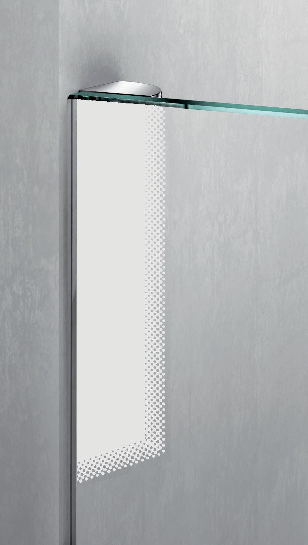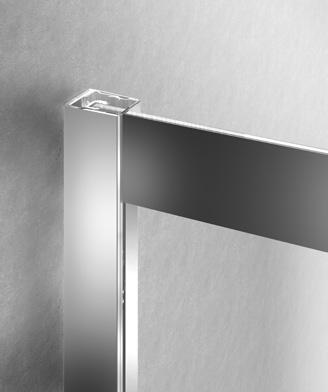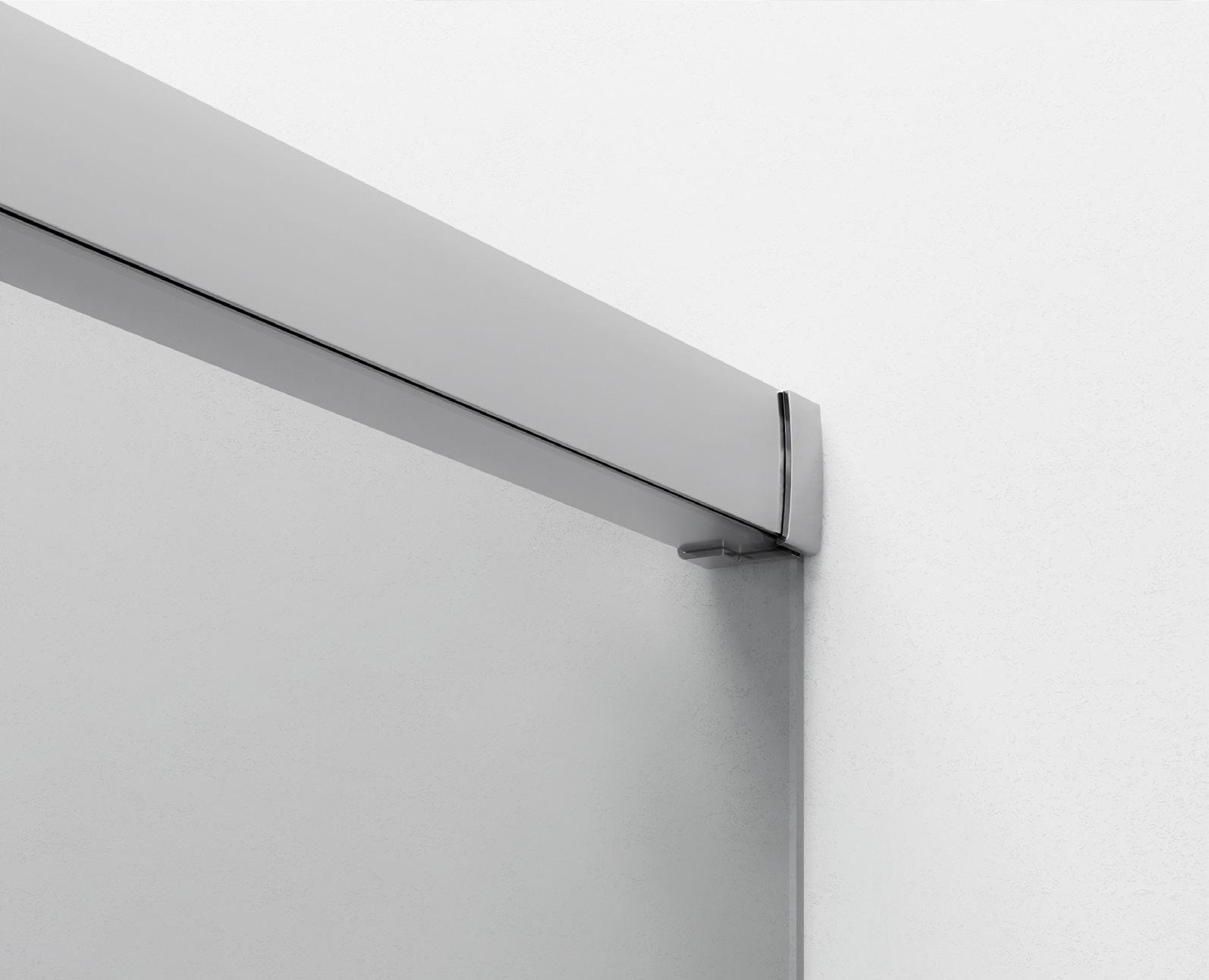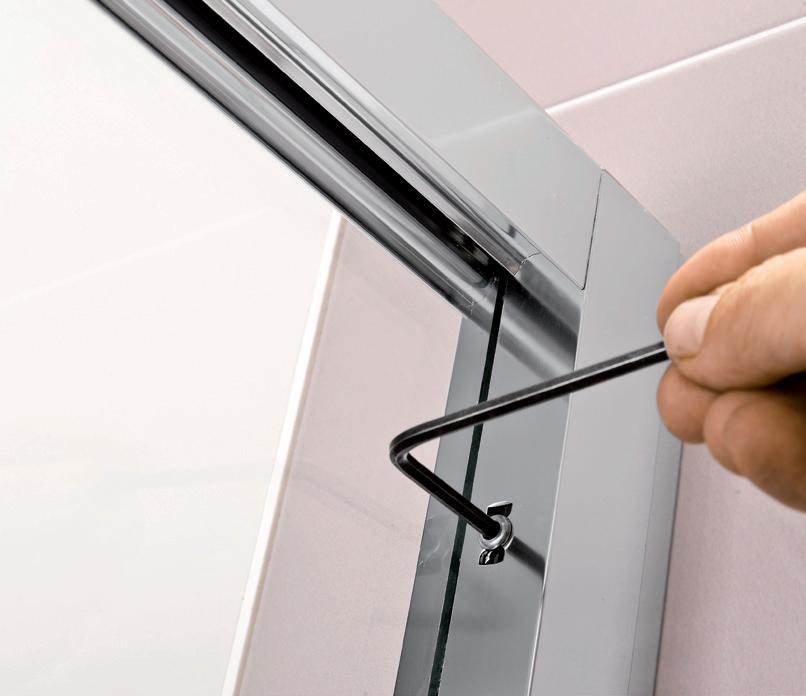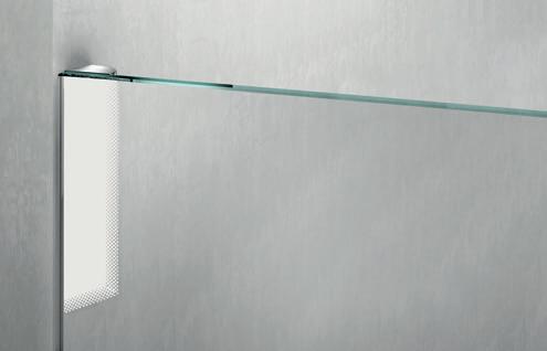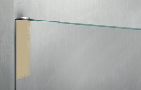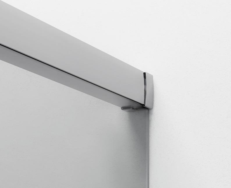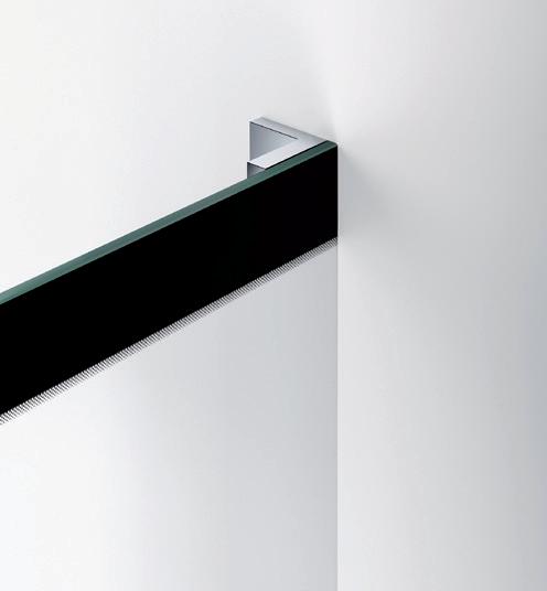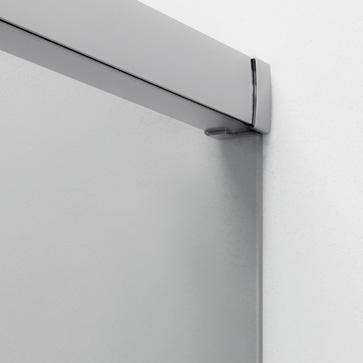 La regolazione a parete di 25 mm degli elementi fissi e laterali avviene grazie alla regolazione lineare del vetro temperato nel “profilo a muro”.