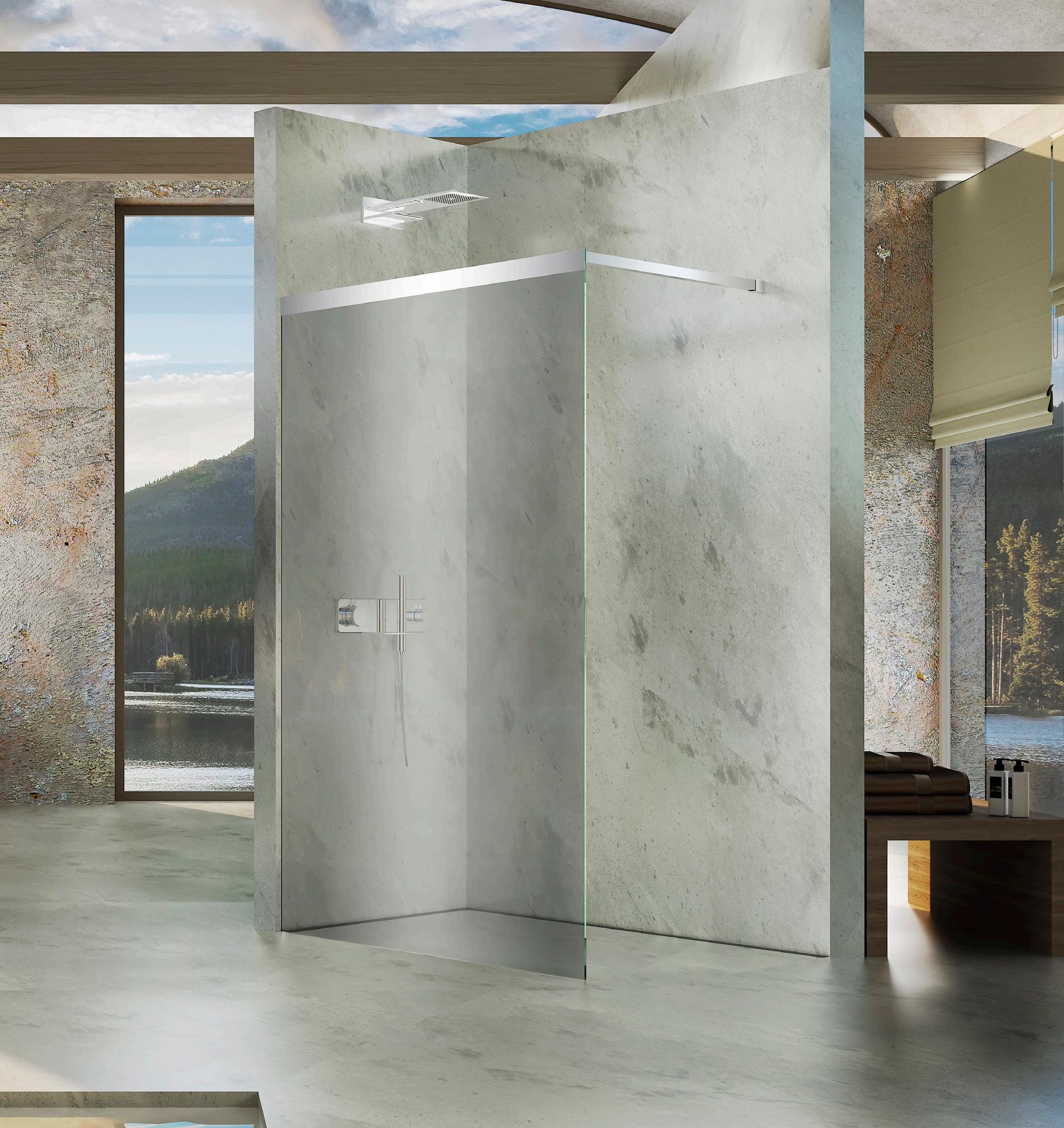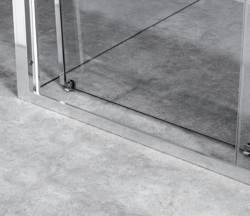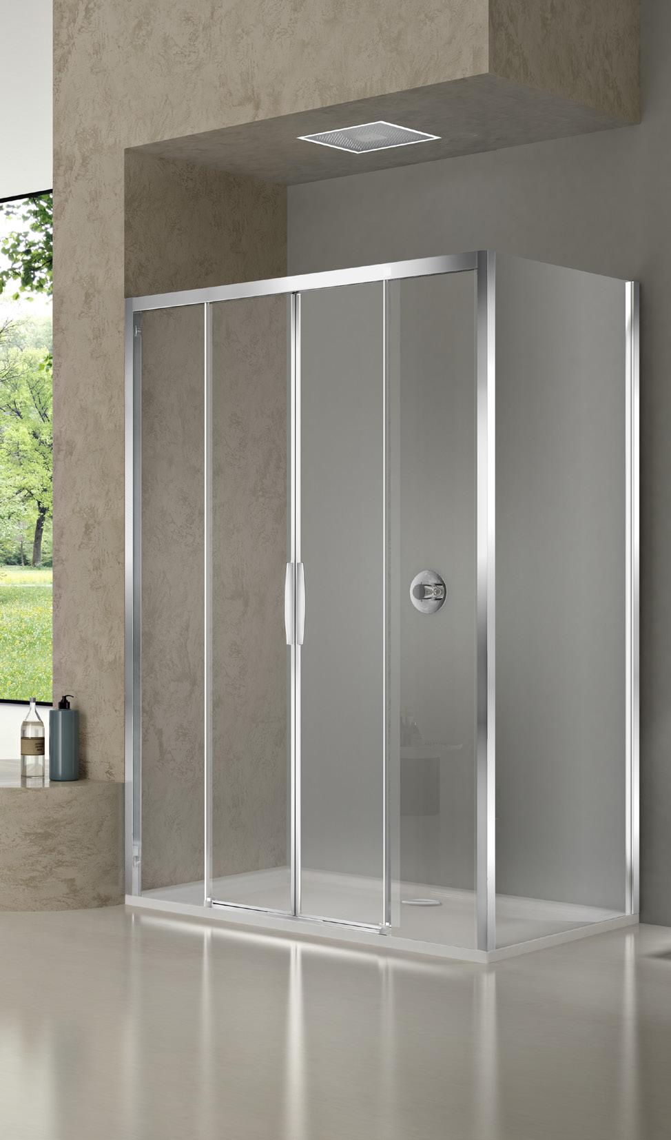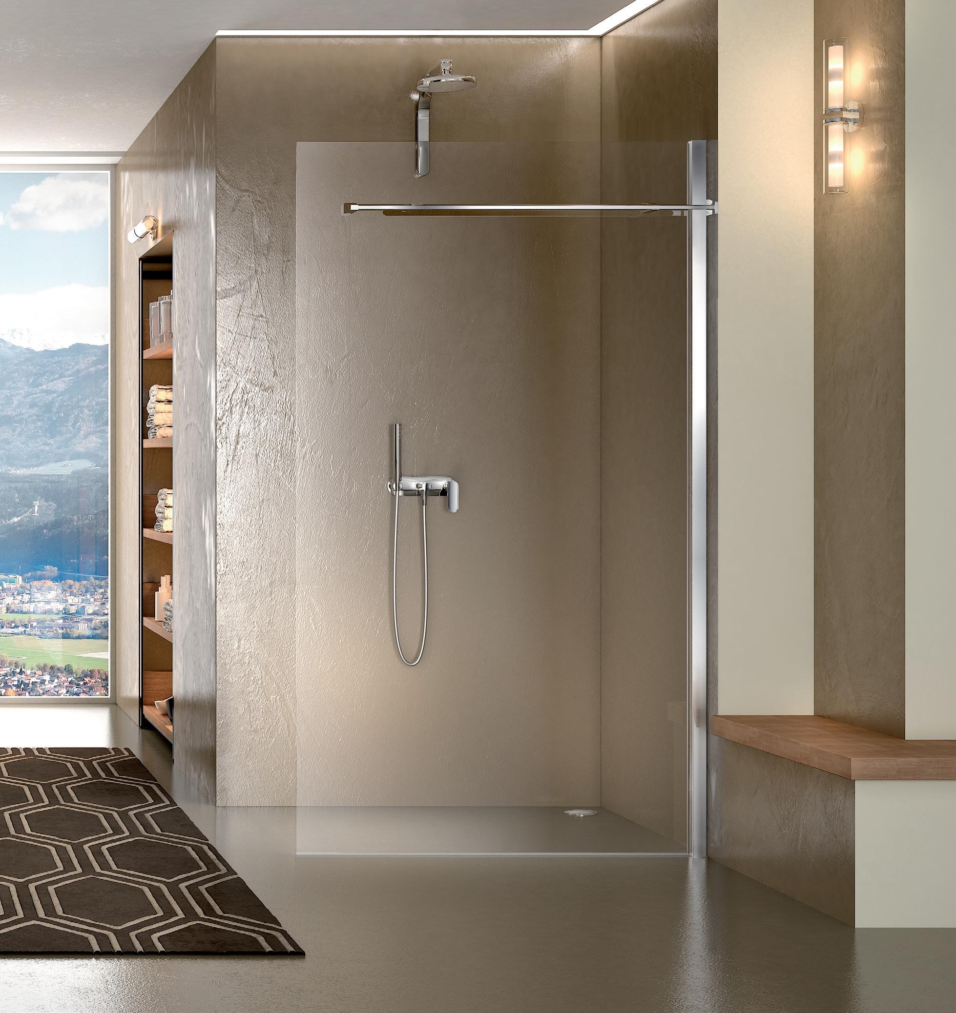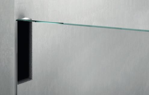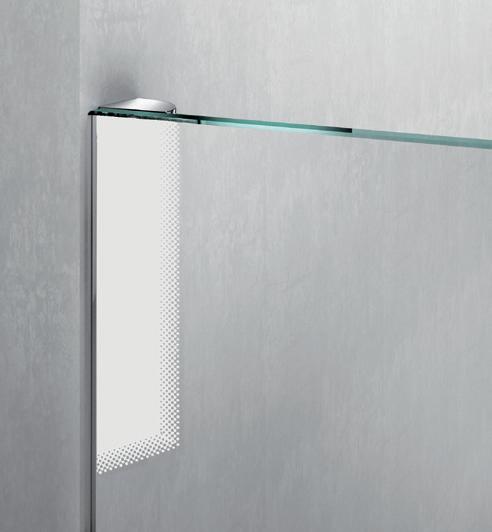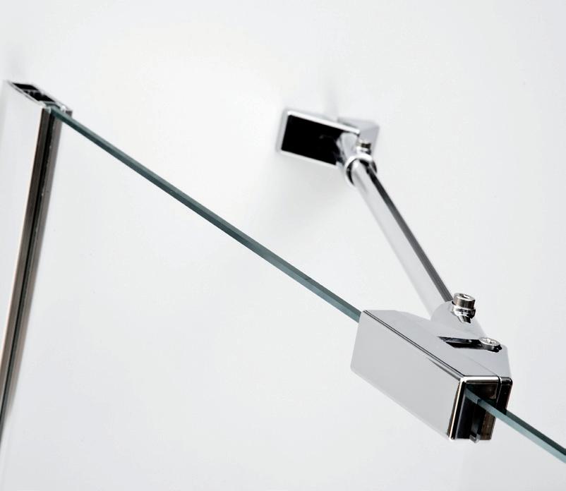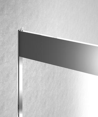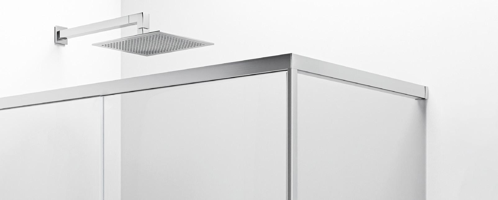 La regolazione a parete di 25 mm degli elementi fissi e laterali avviene grazie alla regolazione lineare del vetro temperato nel “profilo a muro”.