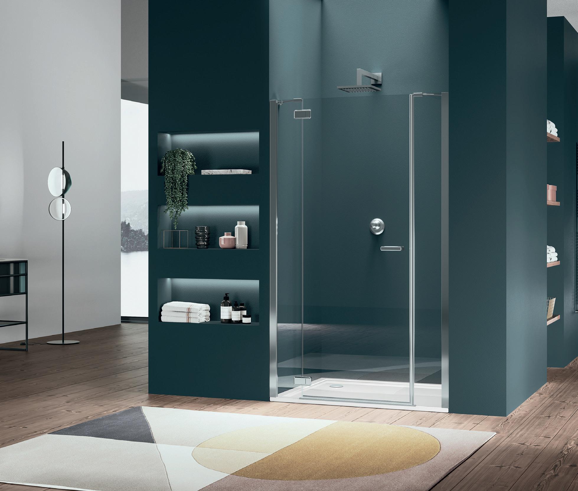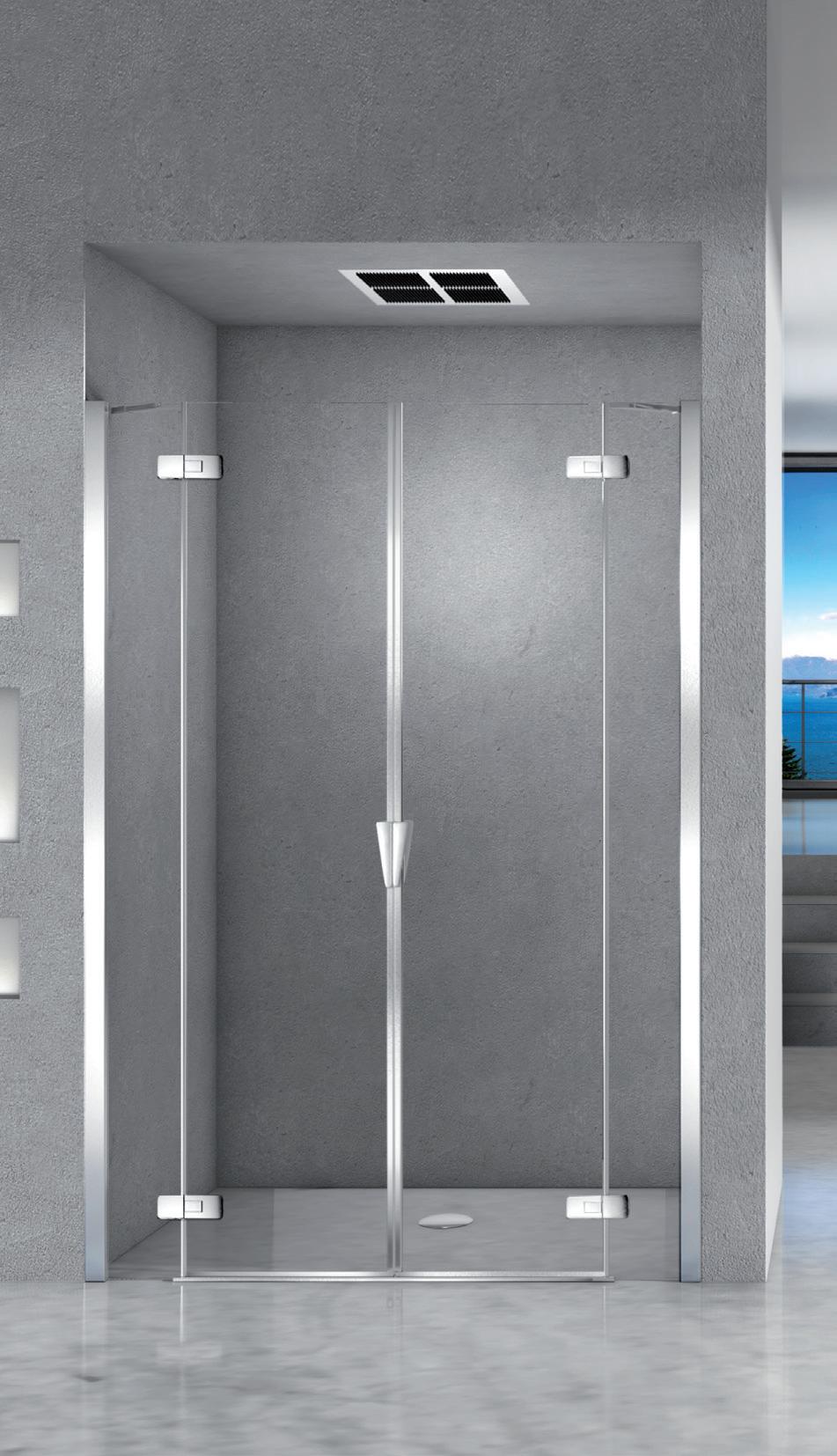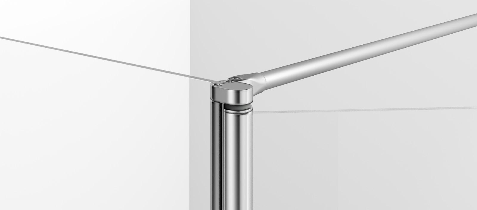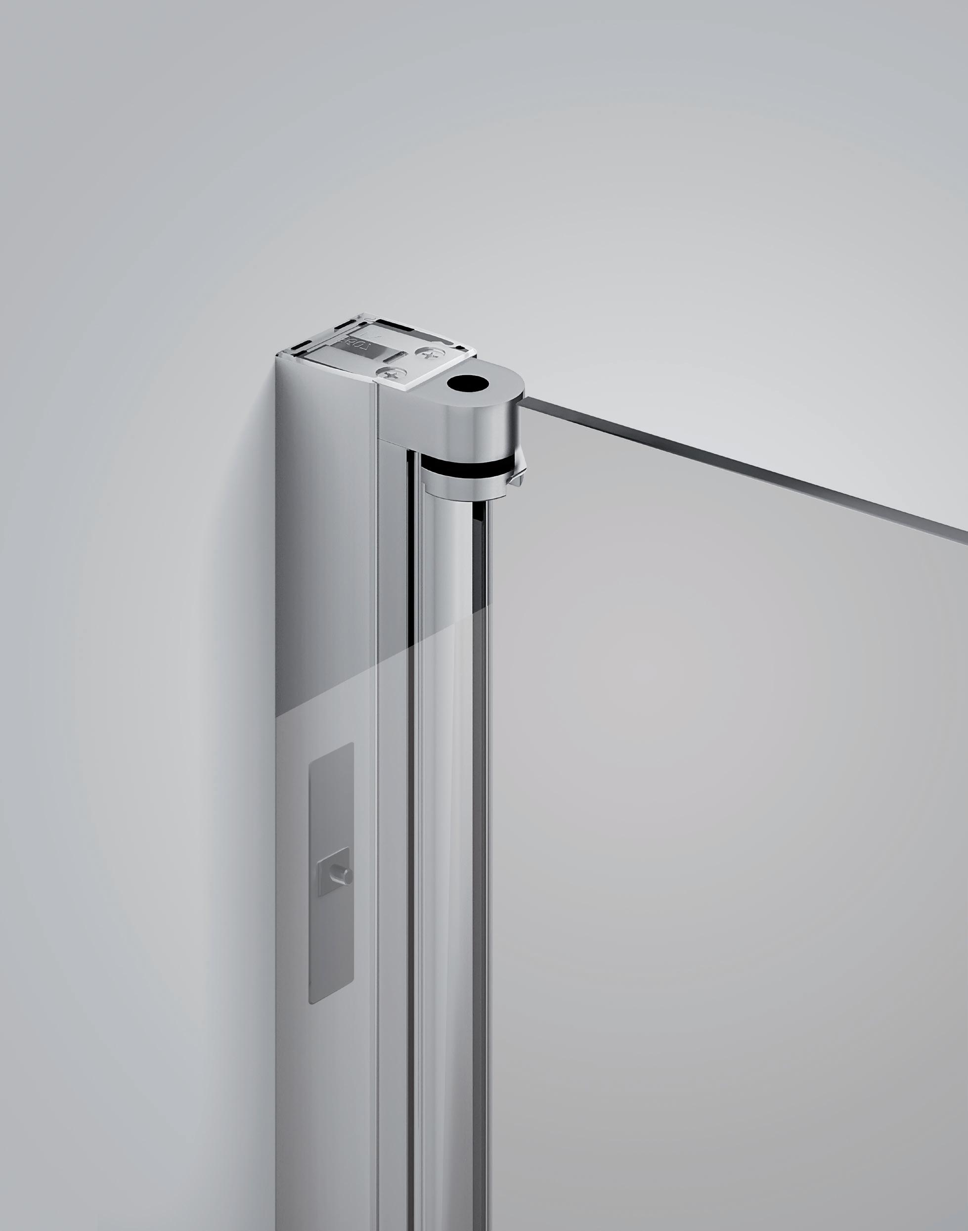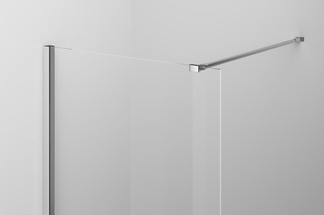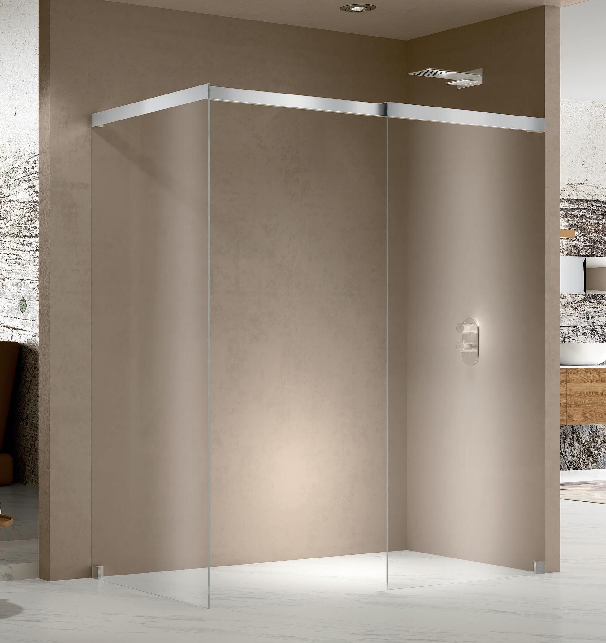 La regolazione a parete di 25 mm degli elementi fissi e laterali avviene grazie alla regolazione lineare del vetro temperato nel “profilo a muro”.