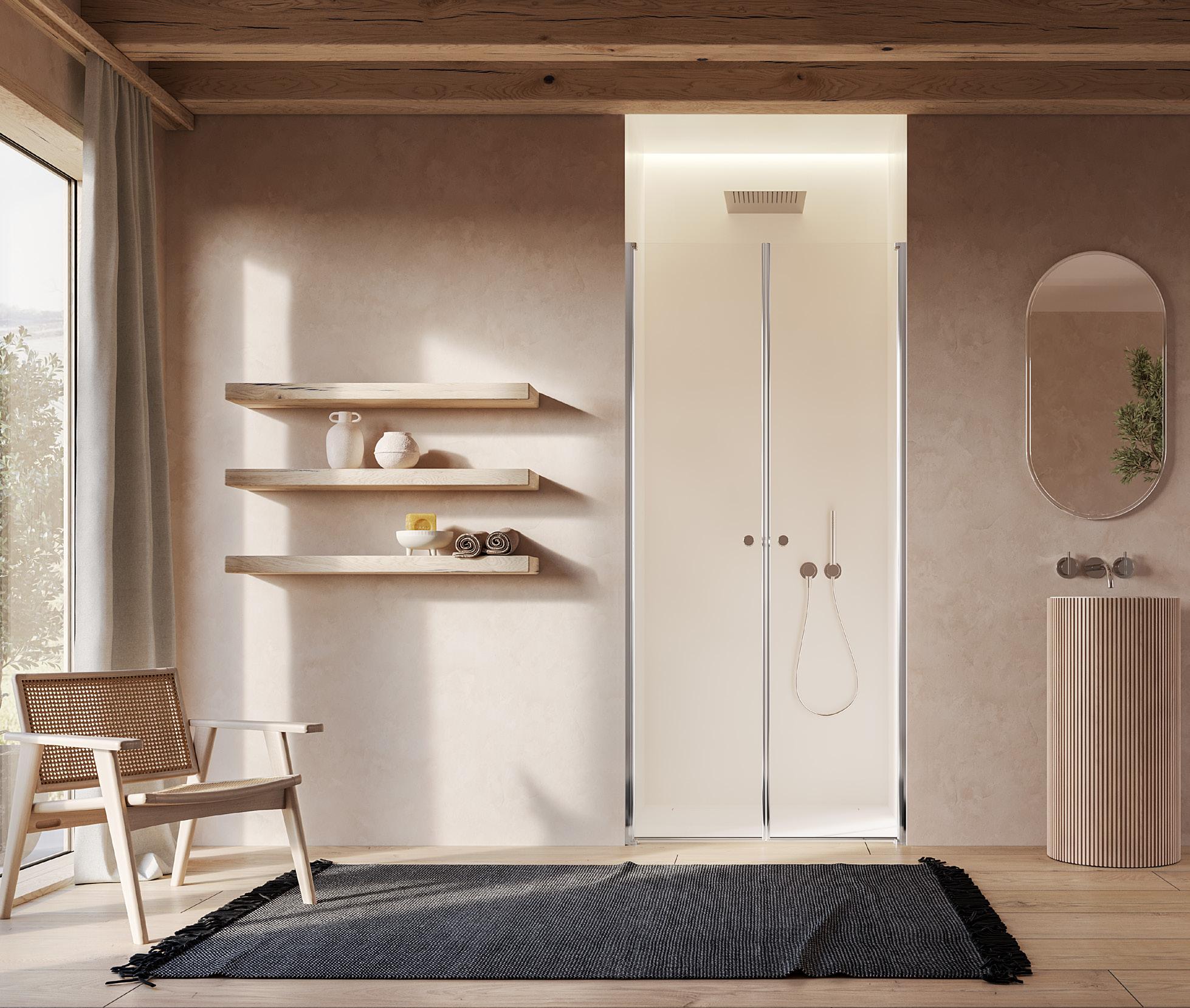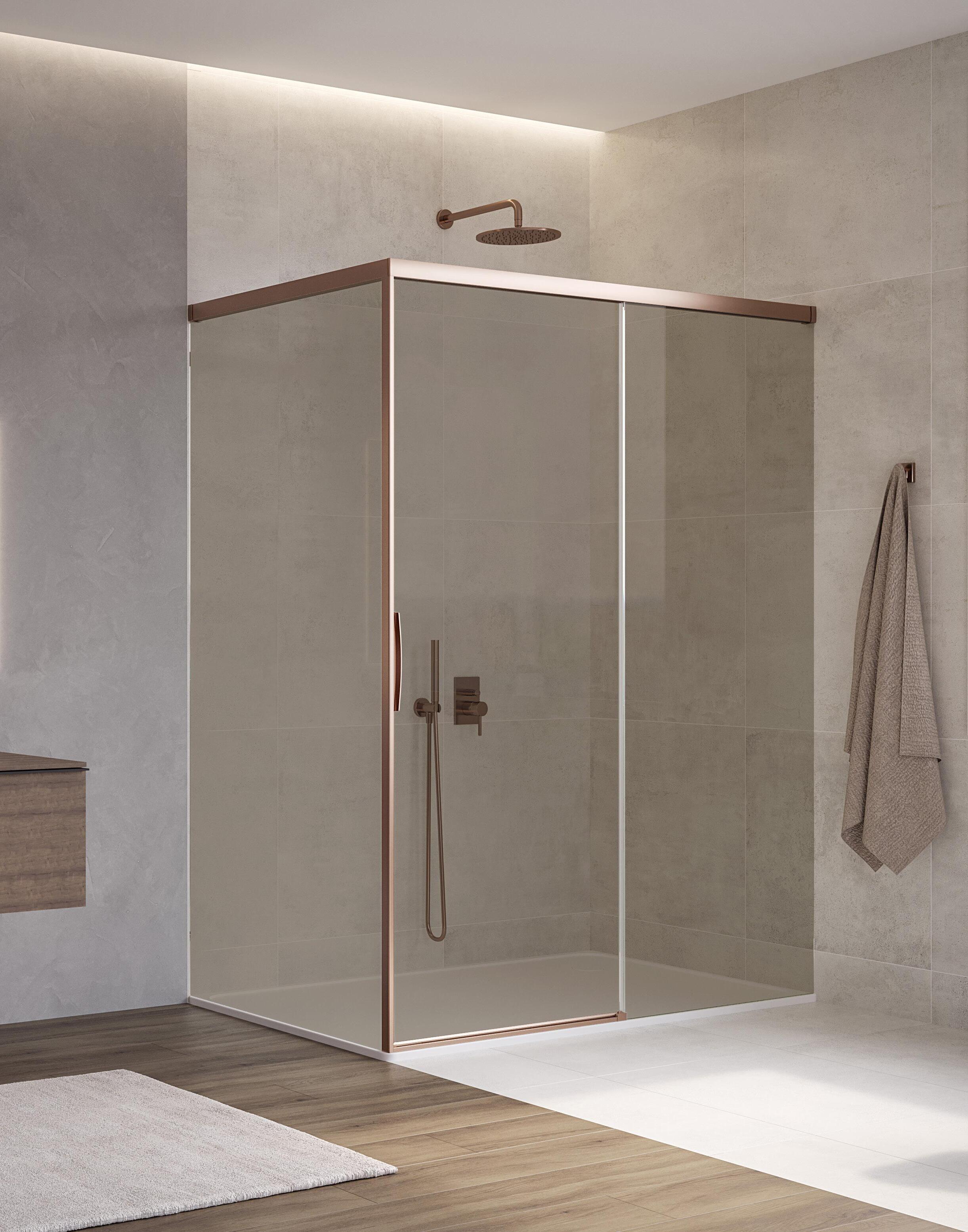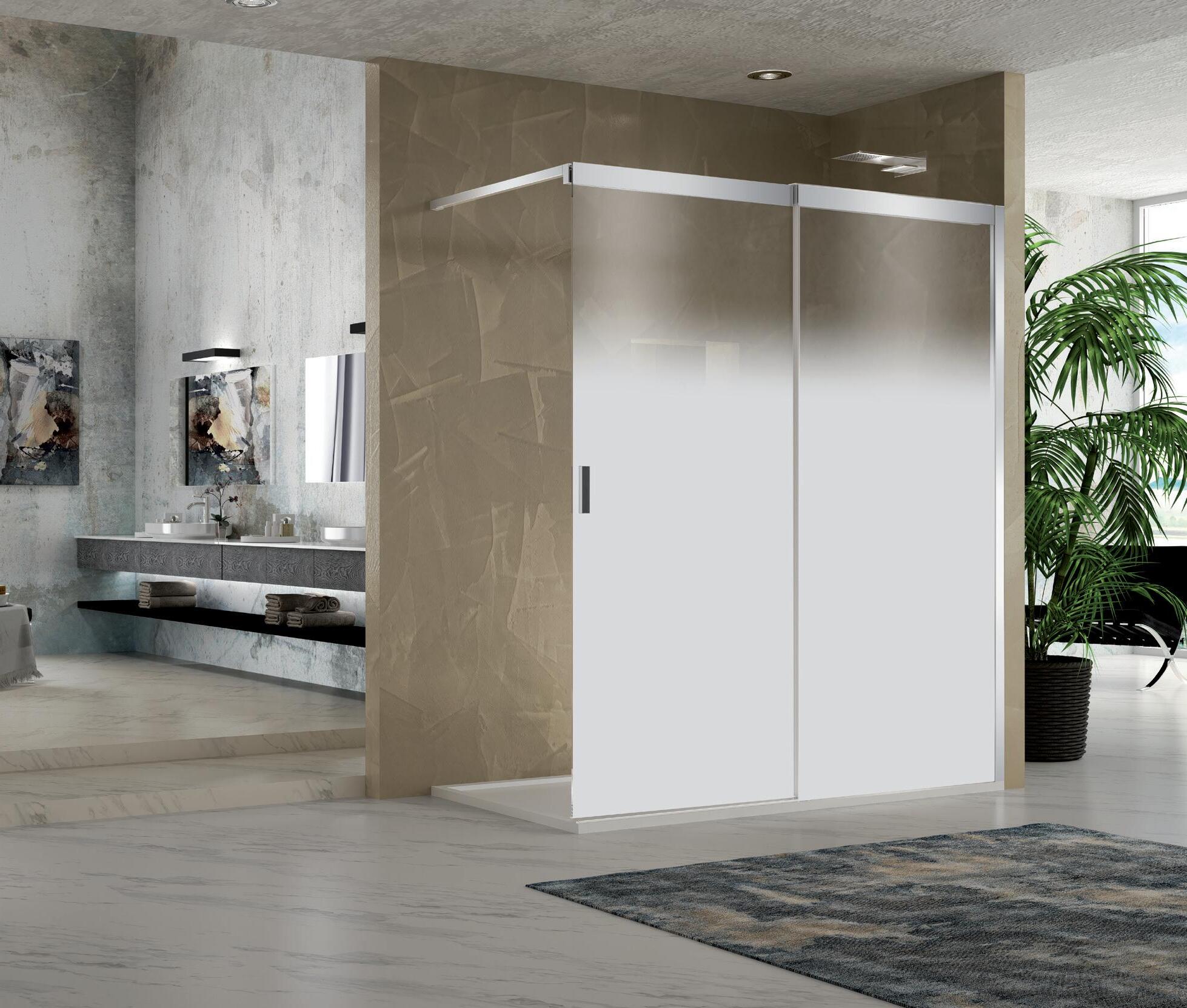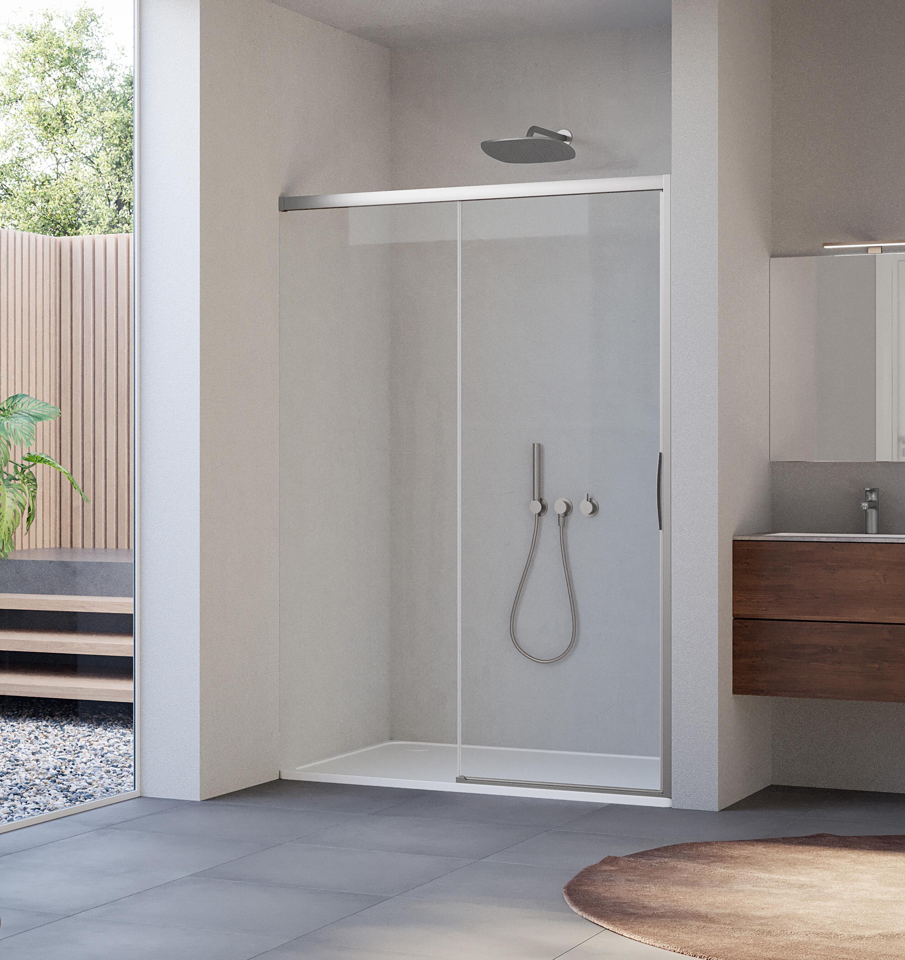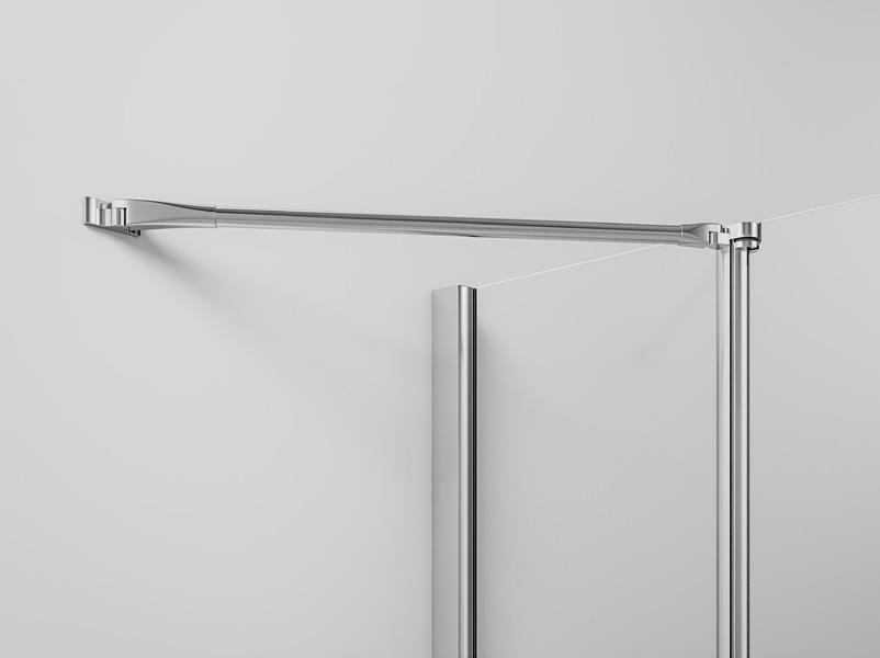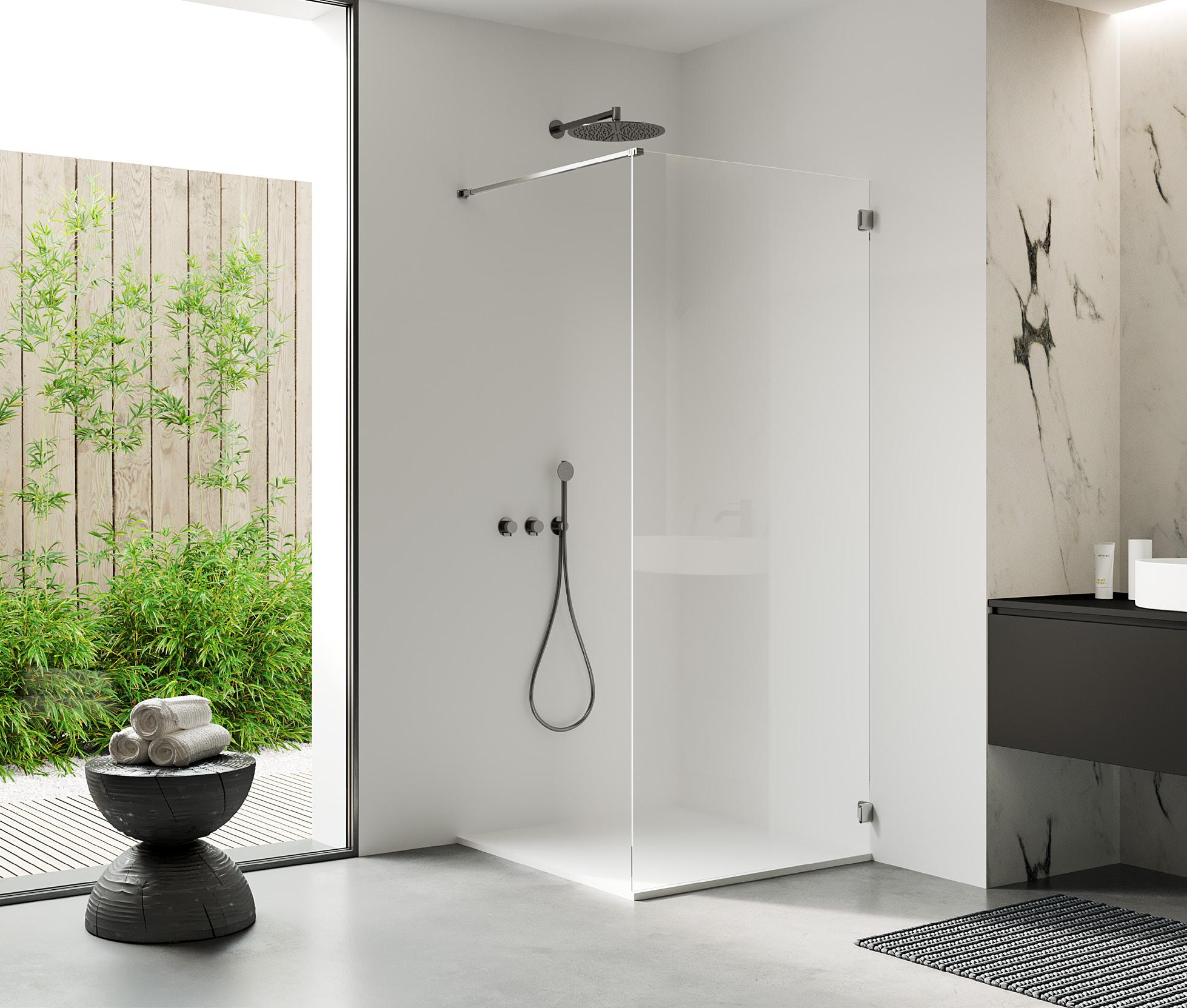 La regolazione a parete di 25 mm degli elementi fissi e laterali avviene grazie alla regolazione lineare del vetro temperato nel “profilo a muro”.