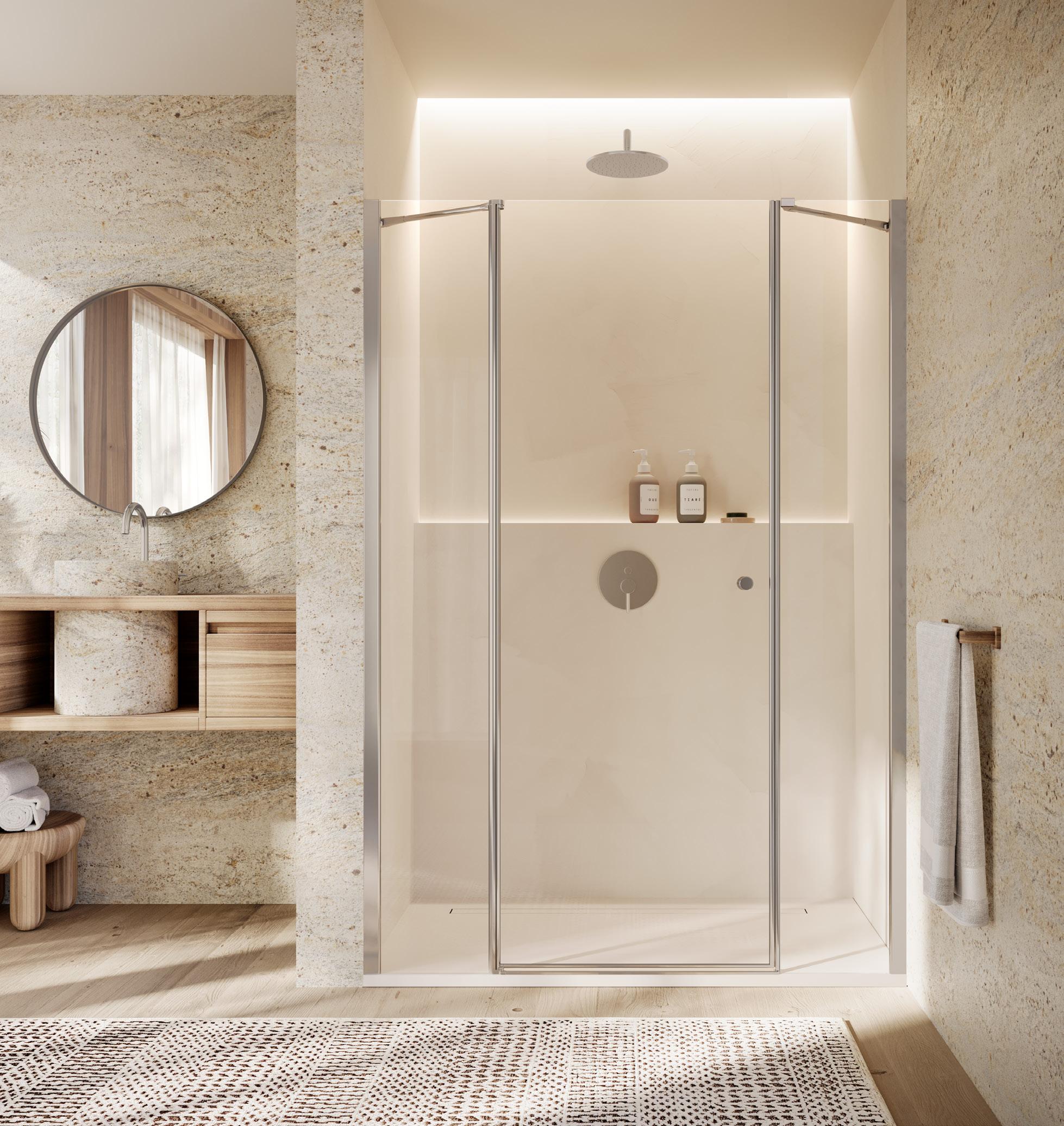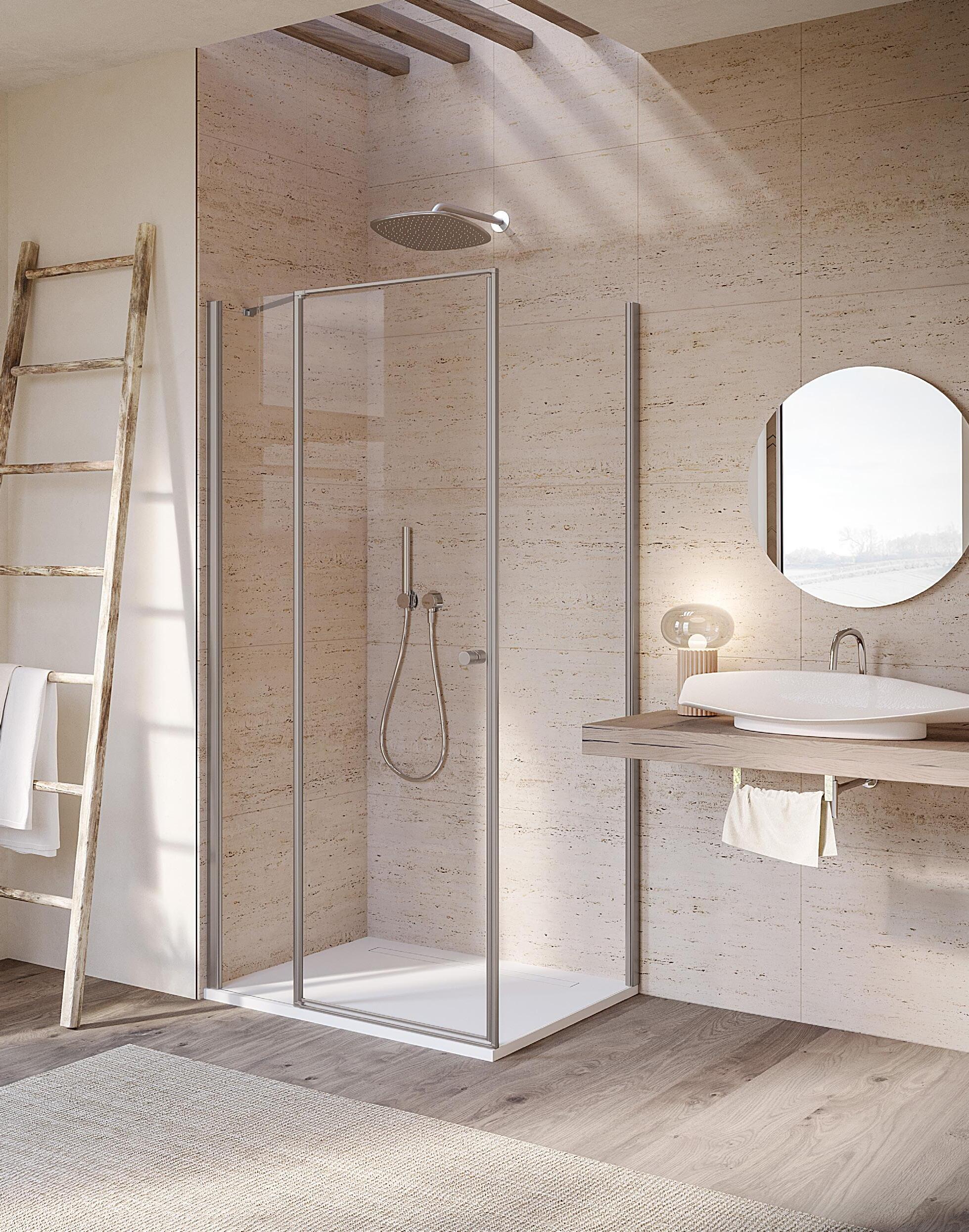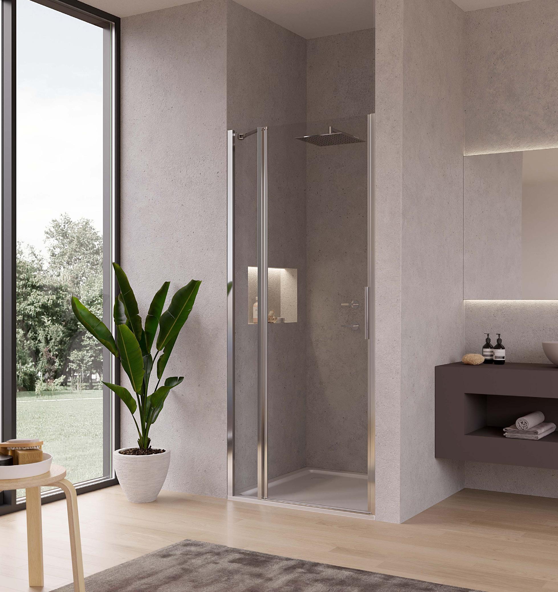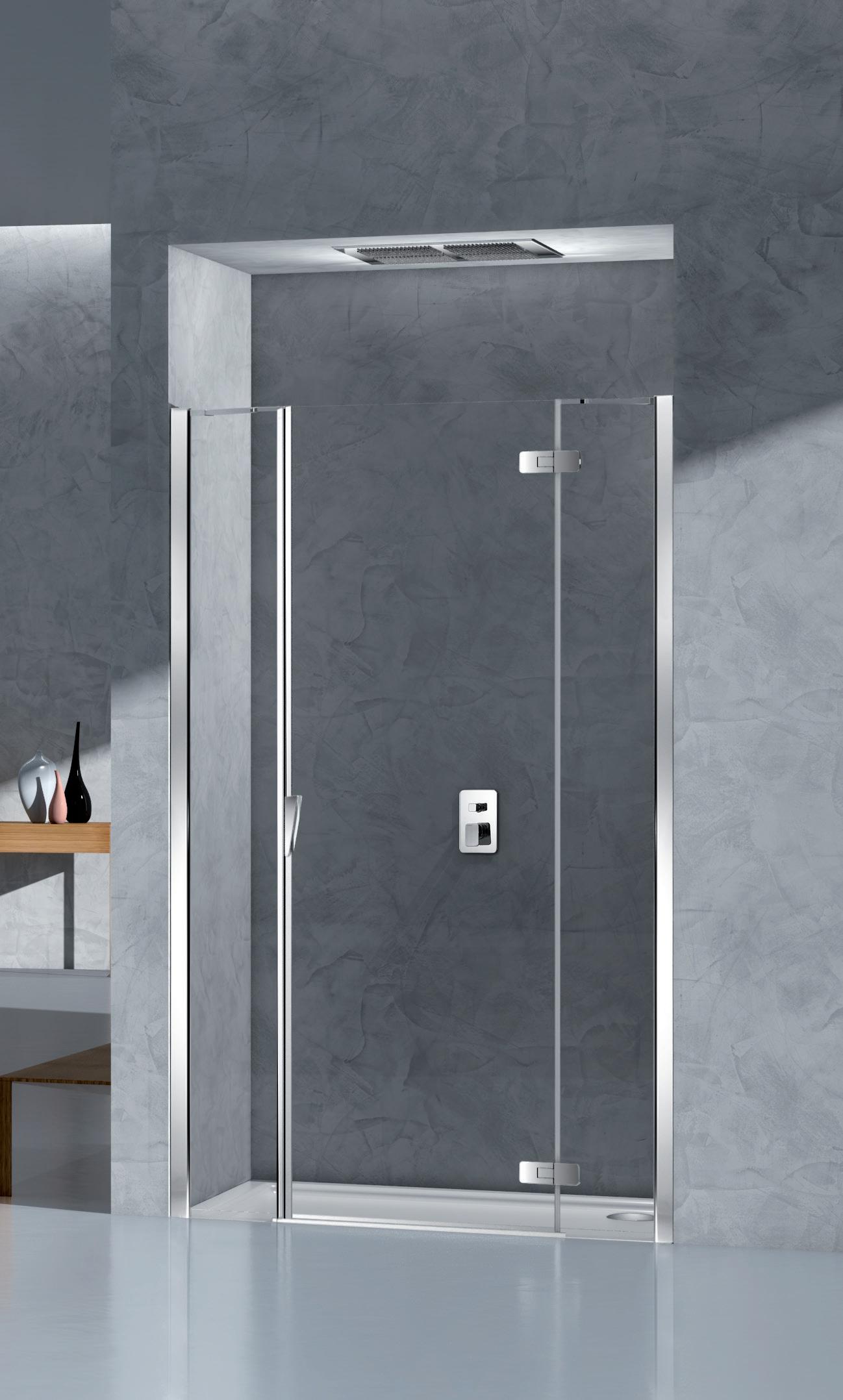 Porta battente 180°con elemento laterale in linea per nicchia - Versione senza profili 1000 - 2000 mm