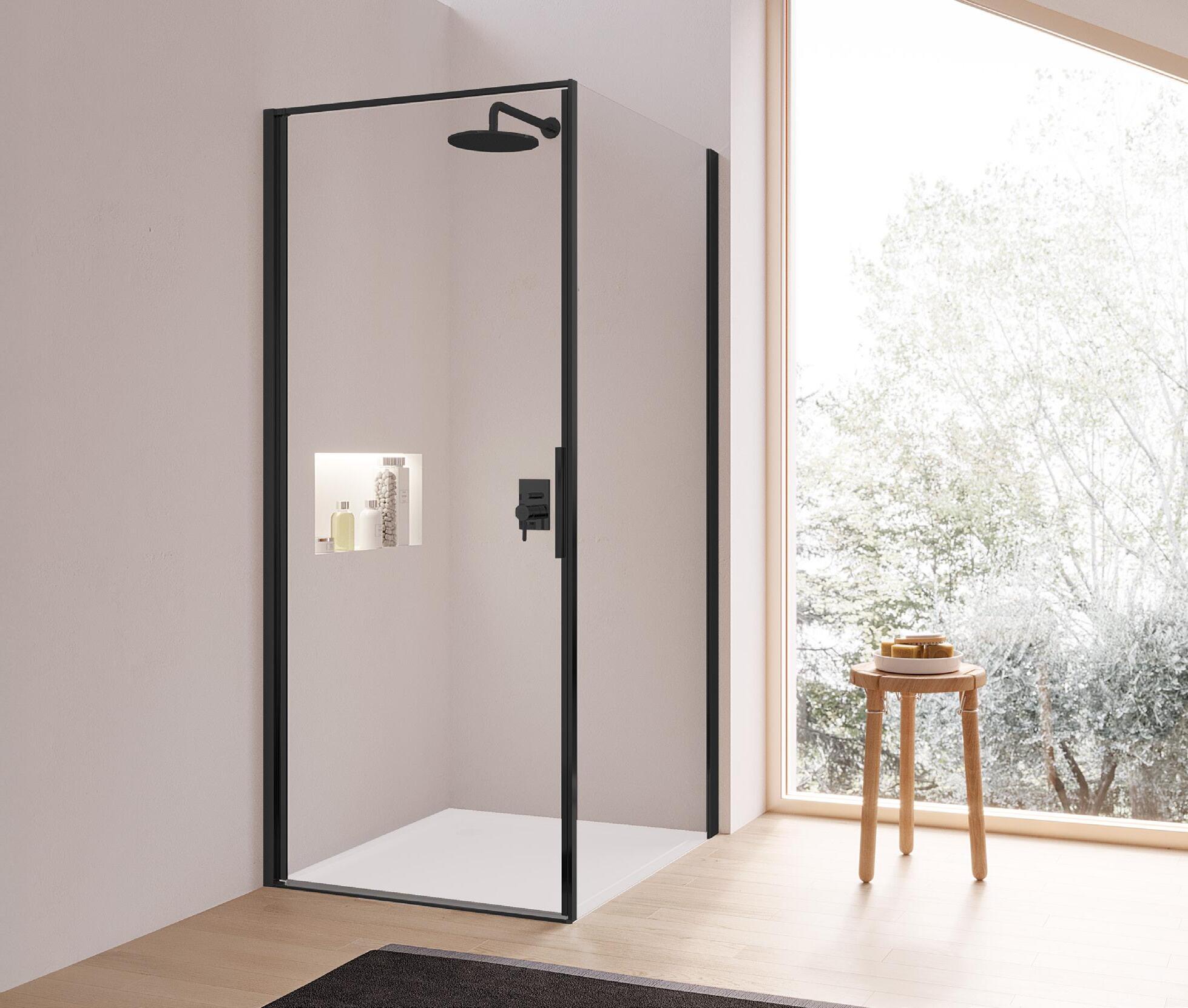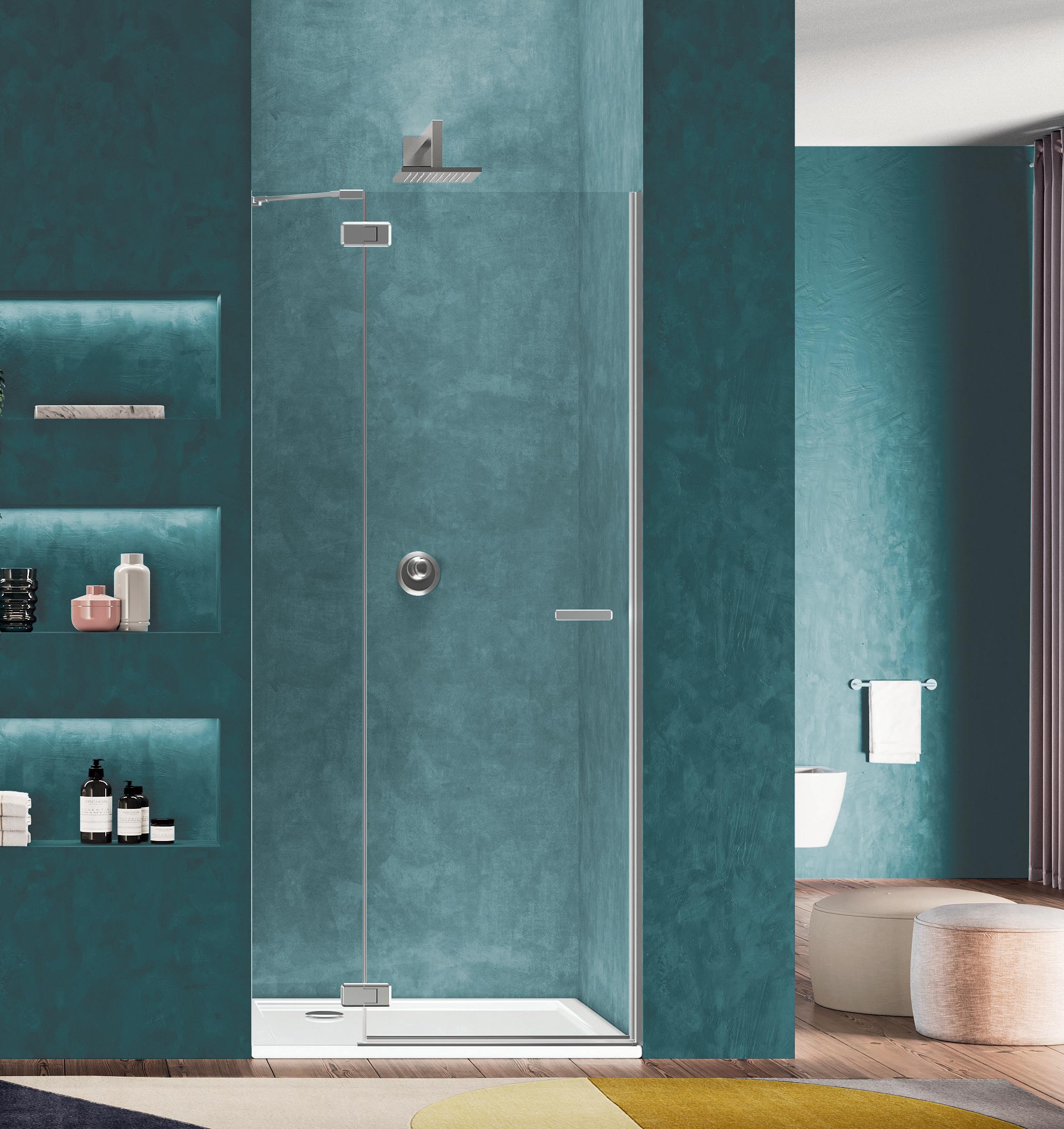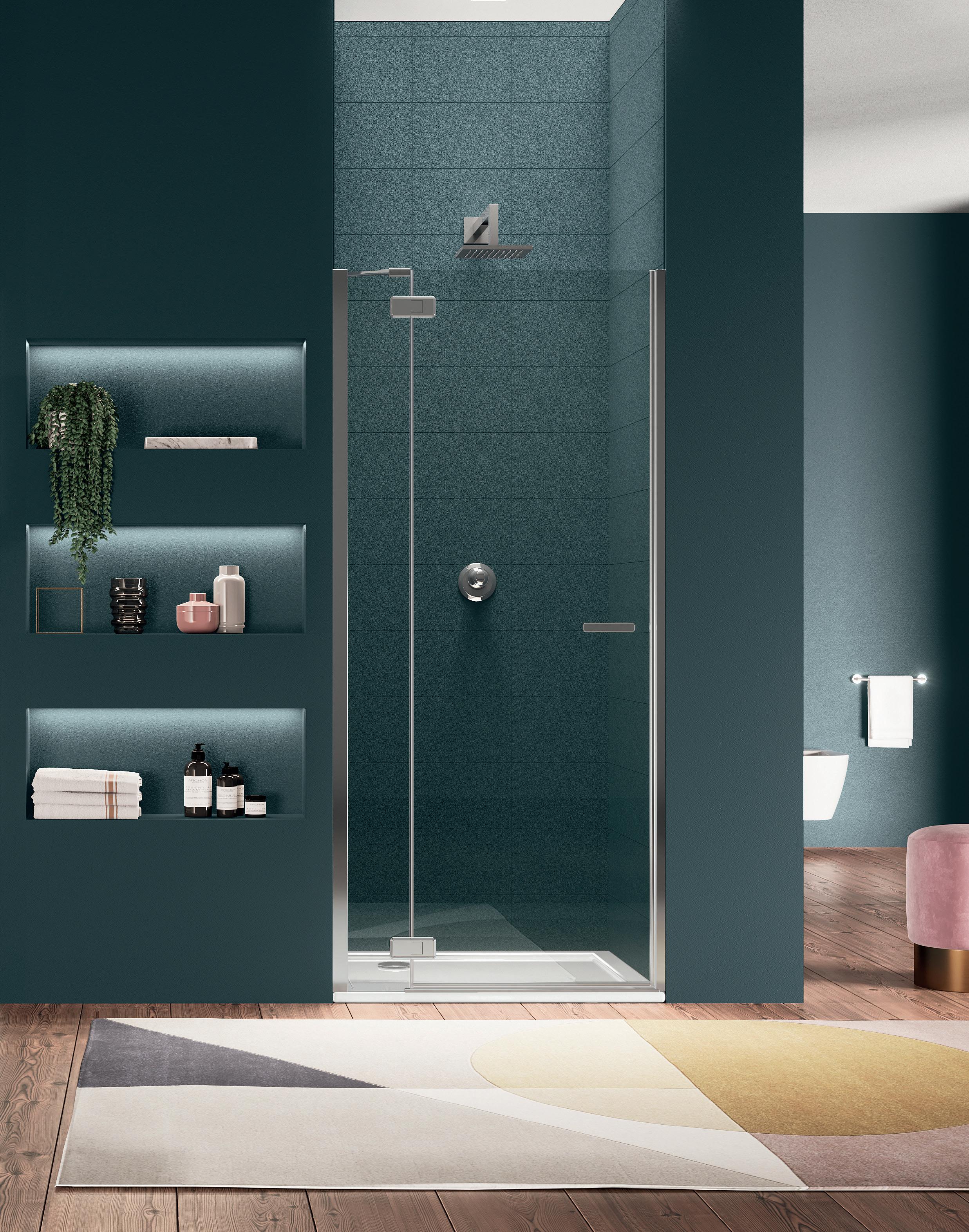 Porta battente 180°con elemento laterale in linea per nicchia - Versione senza profili 1000 - 2000 mm