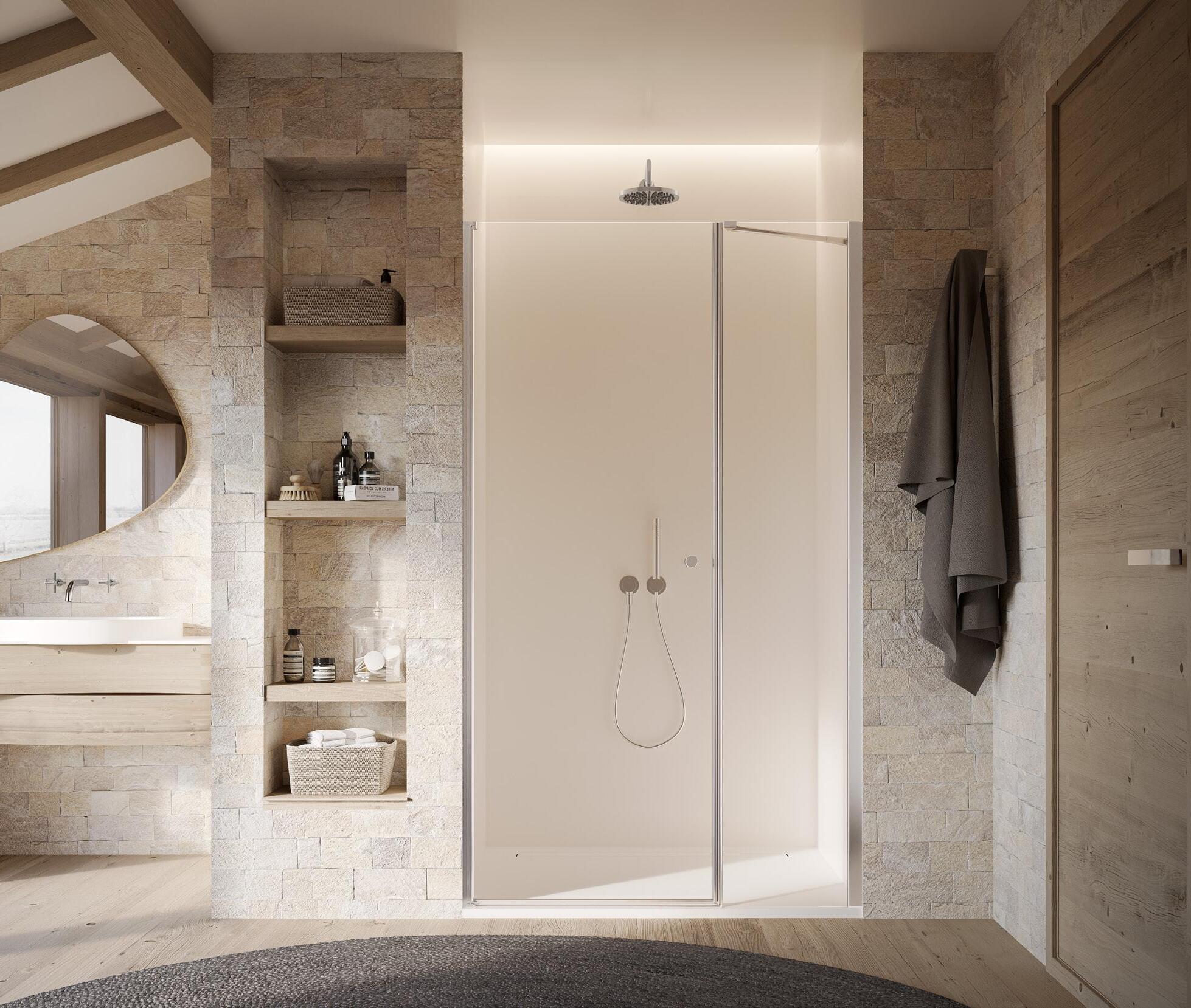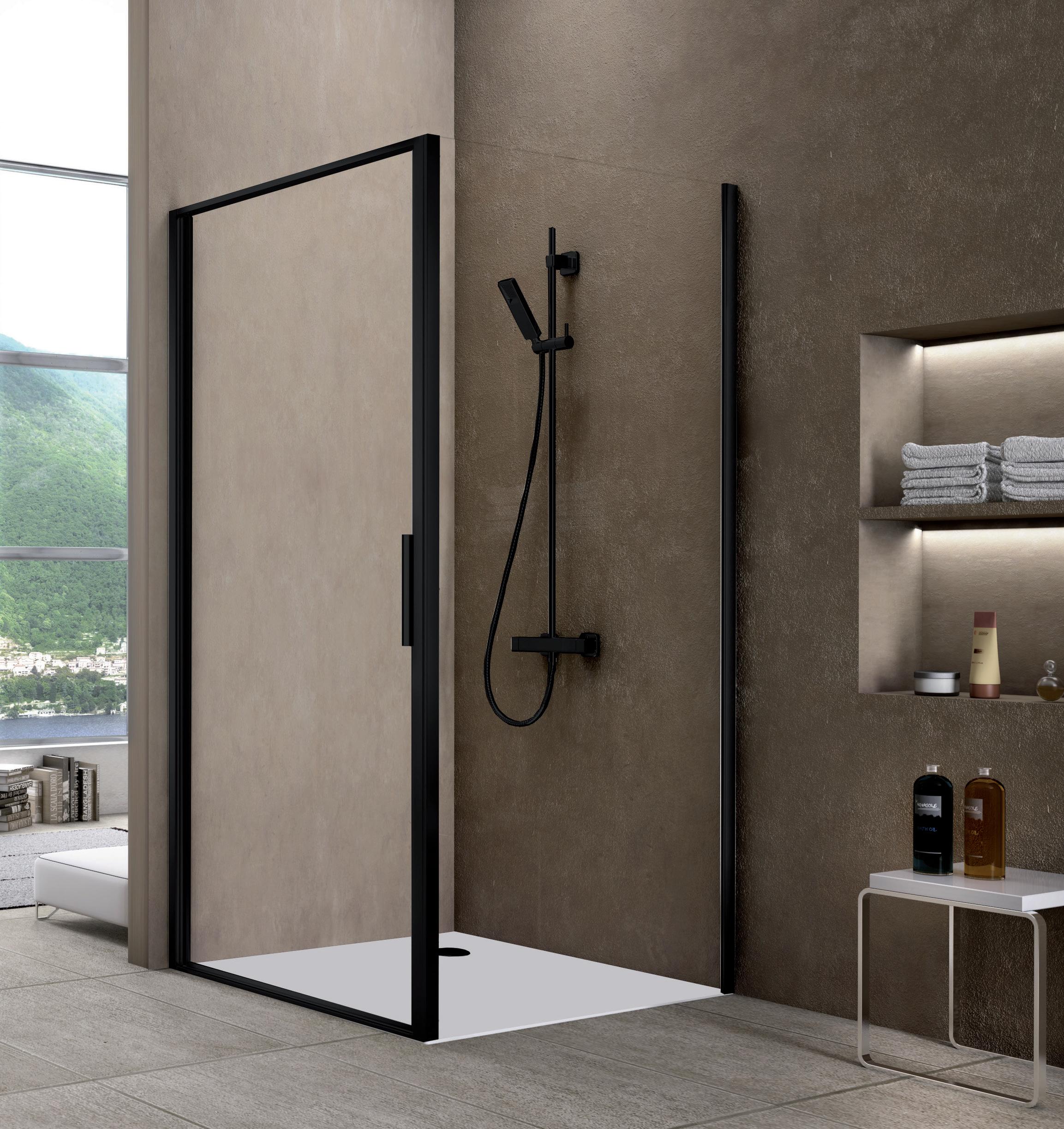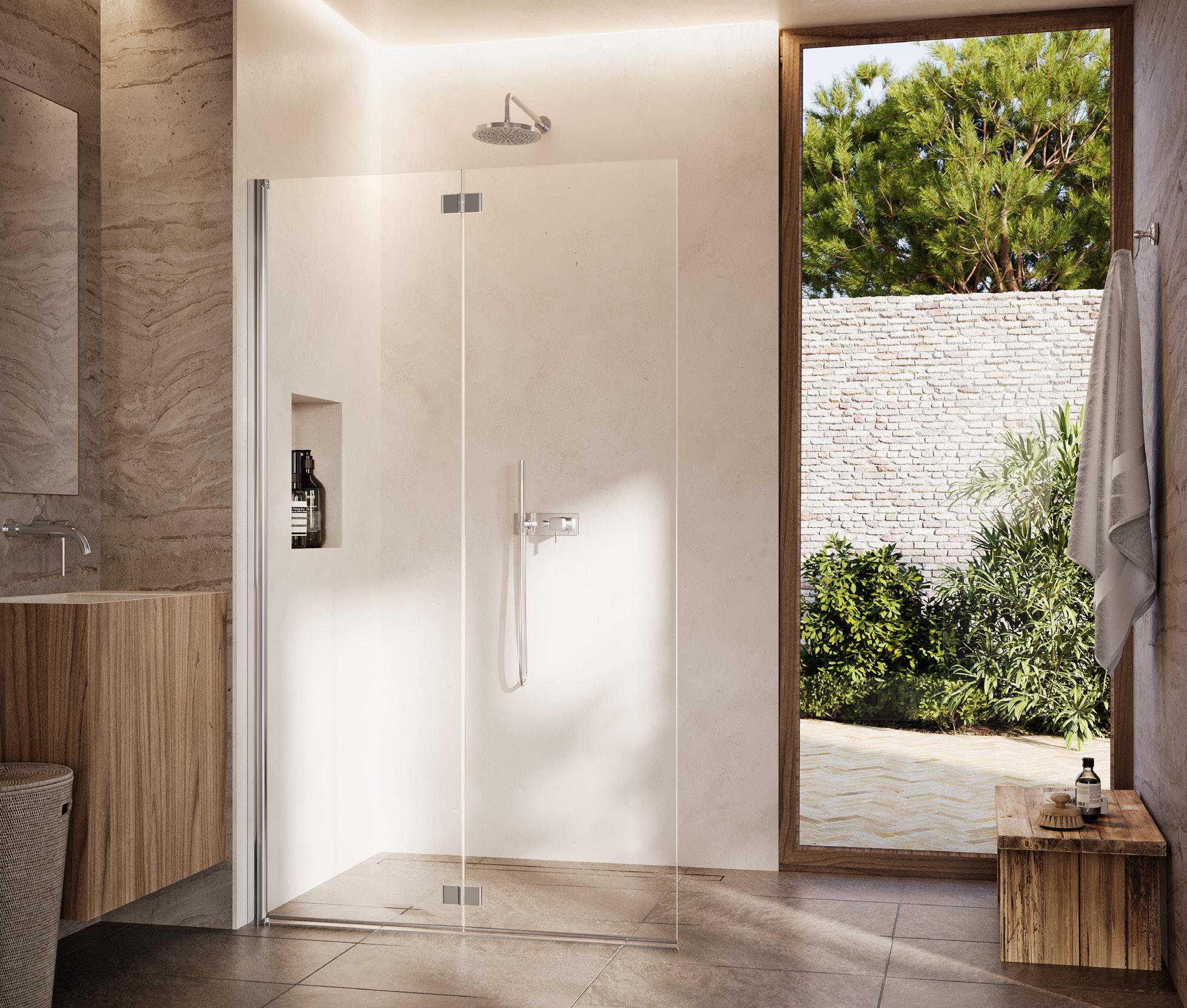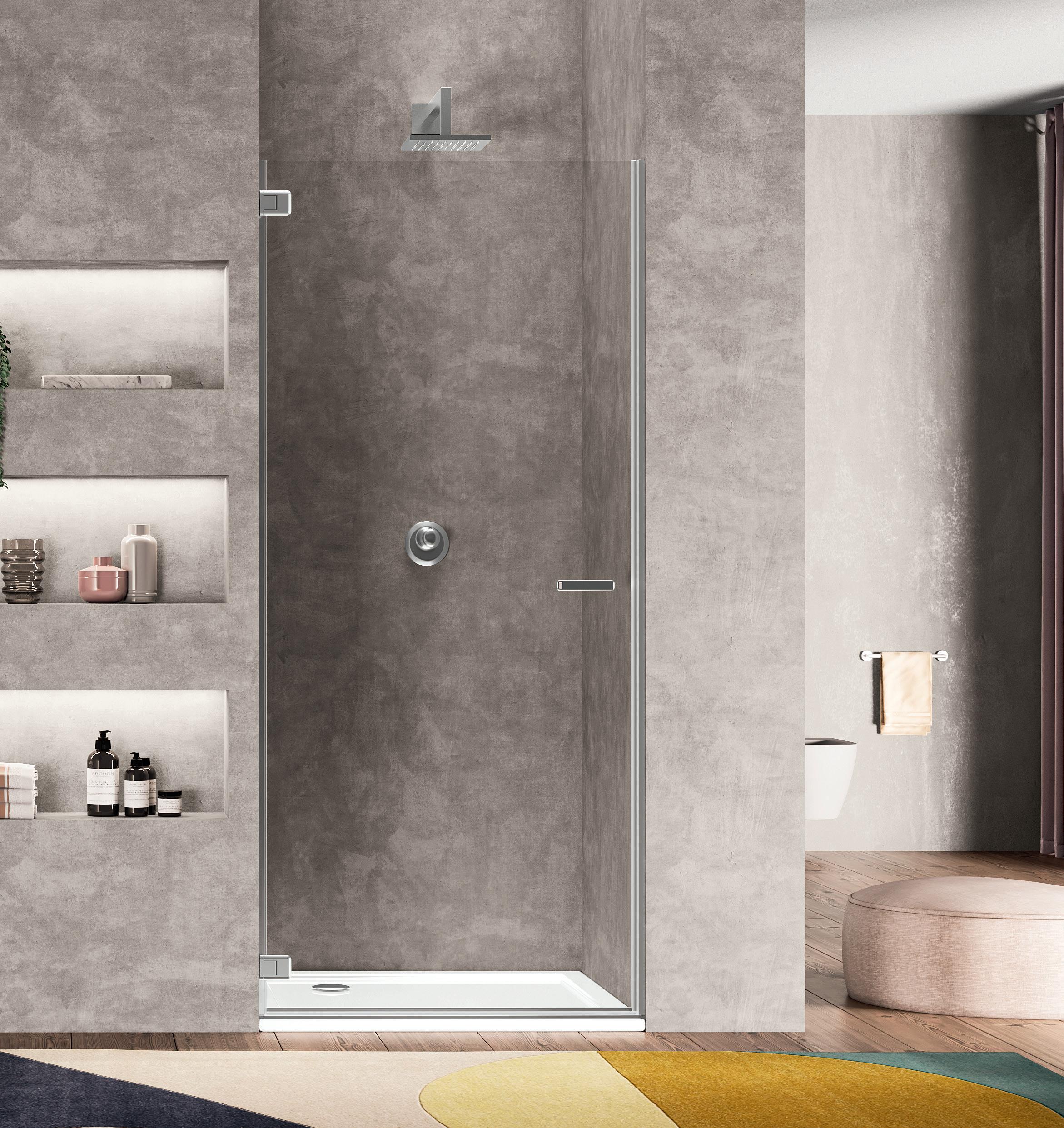 Porta battente 180°con elemento laterale in linea per nicchia - Versione senza profili 1000 - 2000 mm
