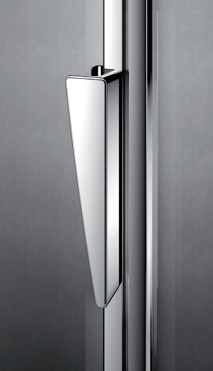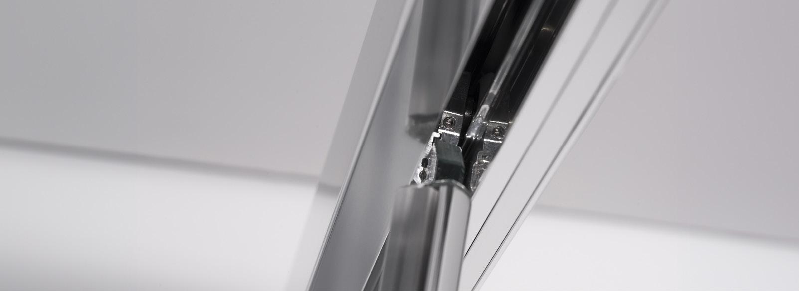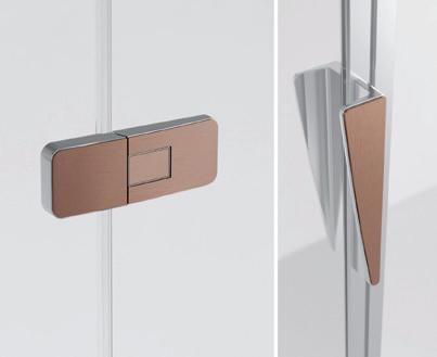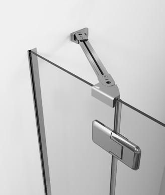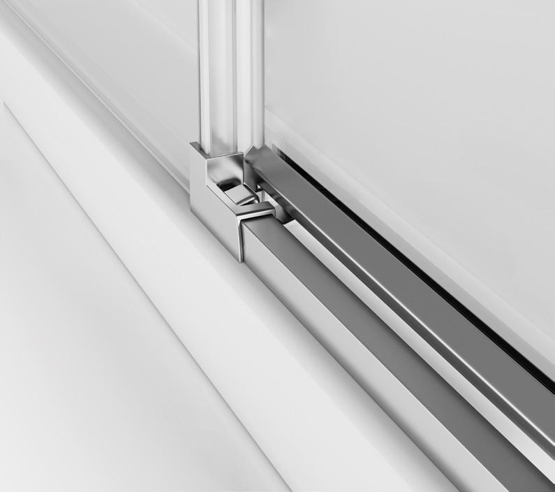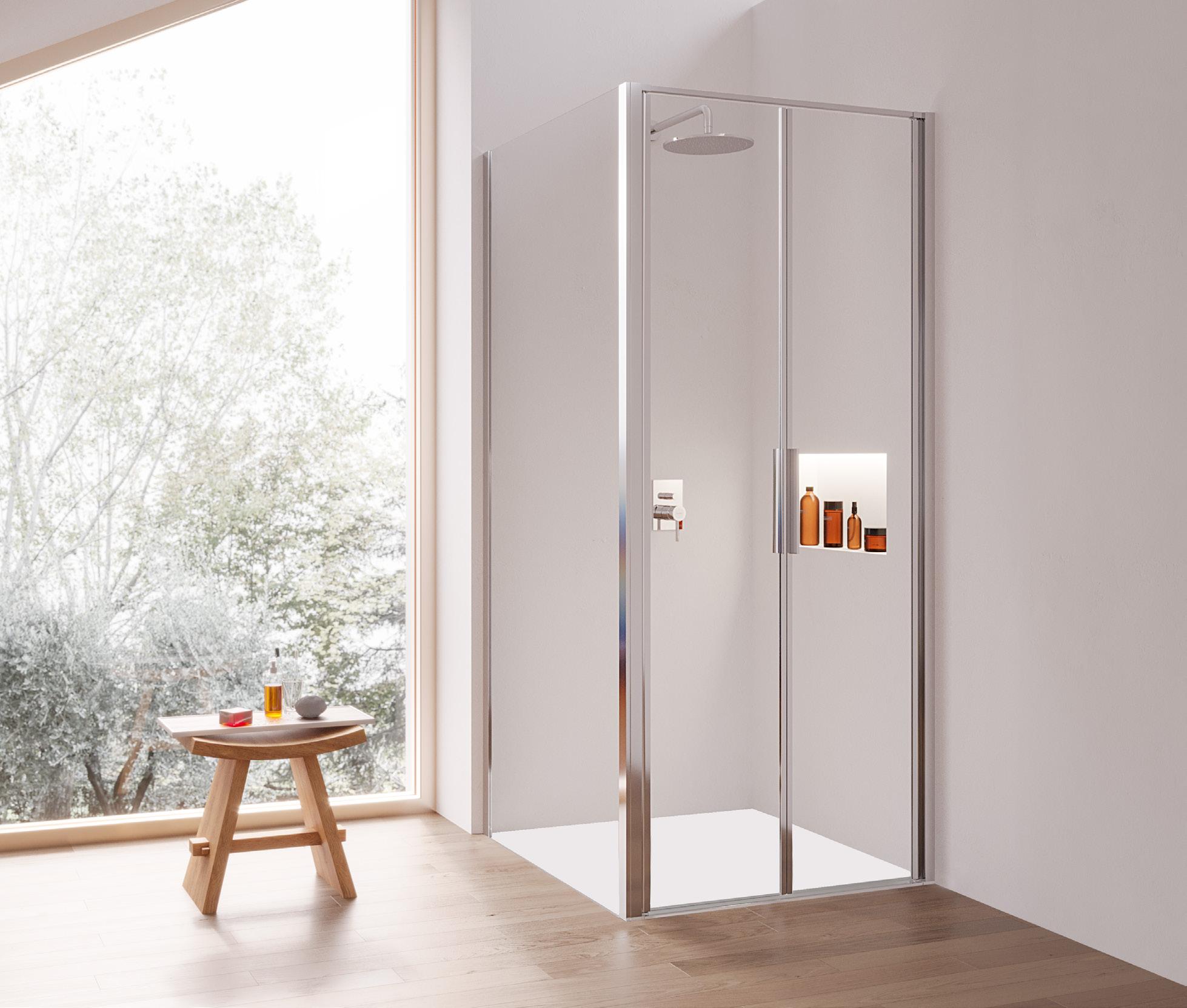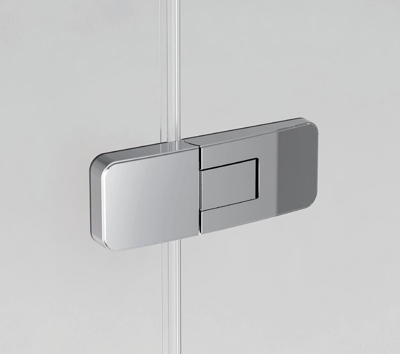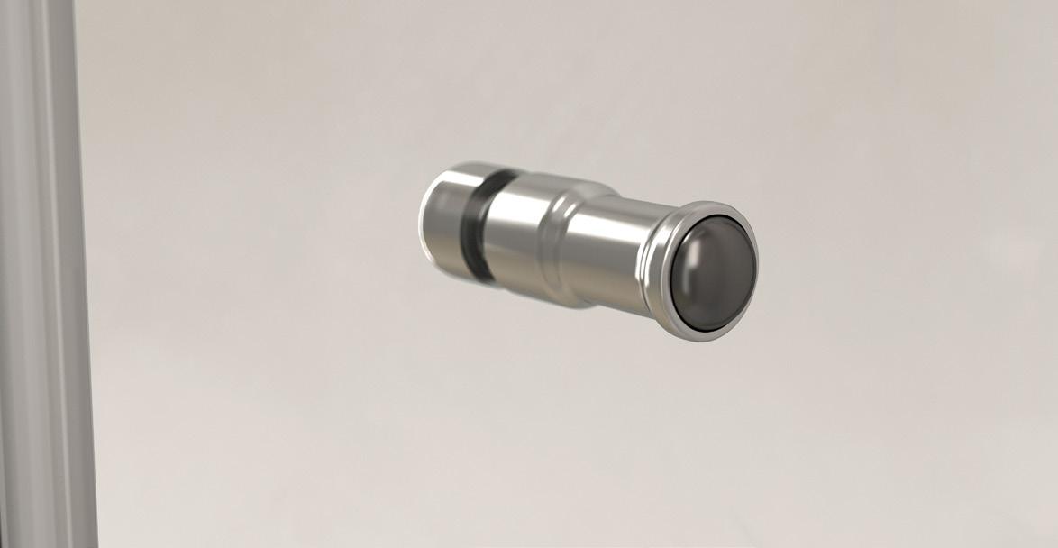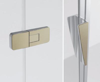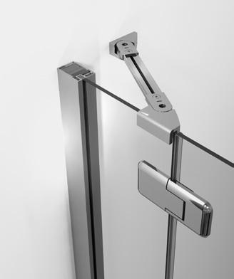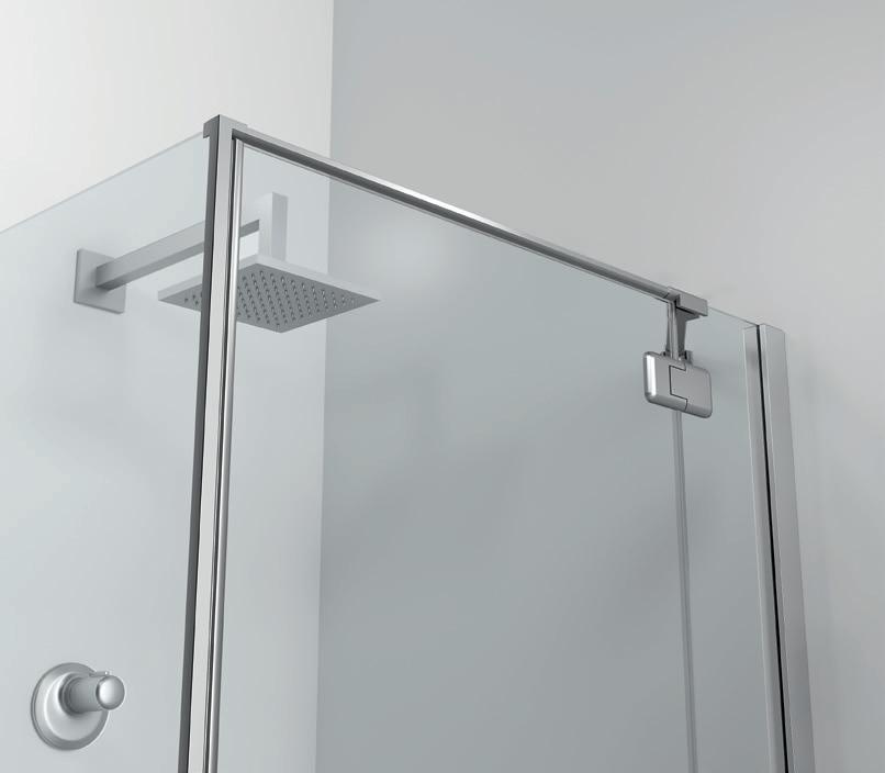 2 - Porte con regolazione integrata nel cristallo: la regolazione della larghezza delle cabine diventa un elemento di design! L’estensibilità di 25 mm degli elementi laterali e dei lati fissi avviene tramite il cristallo regolabile, inserito sotto il profilo.Il grande vantaggio è di natura estetica, in quanto la larghezza e l’aspetto del profi lo di compensazione rimangono invariati senza rinunciare all’estensibilità.