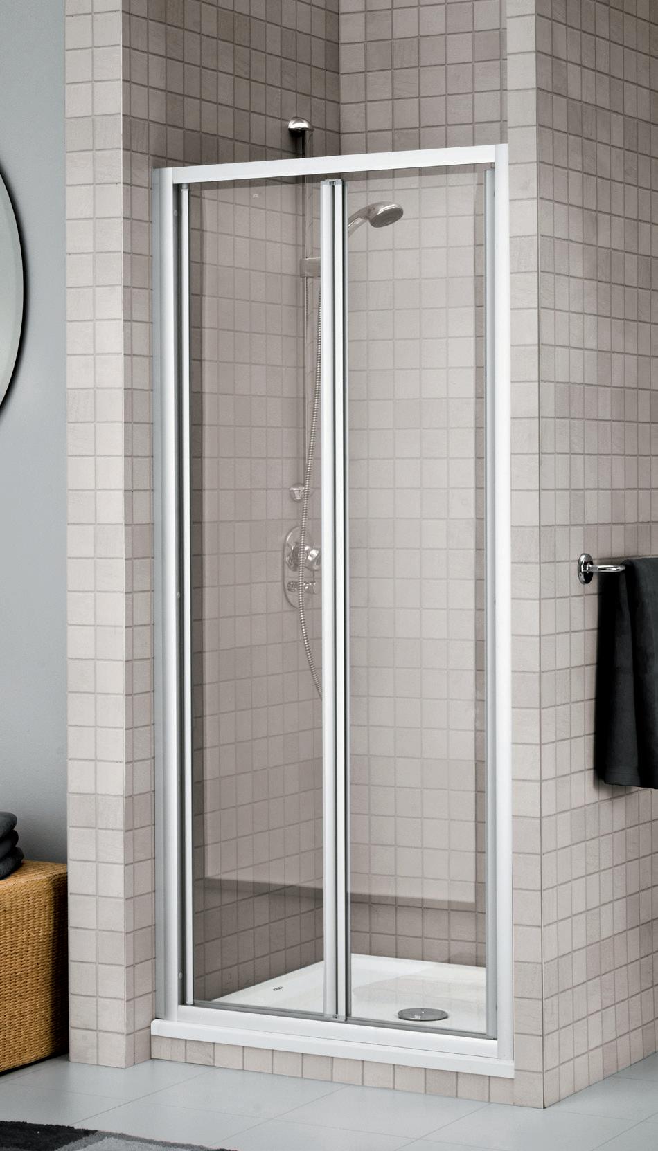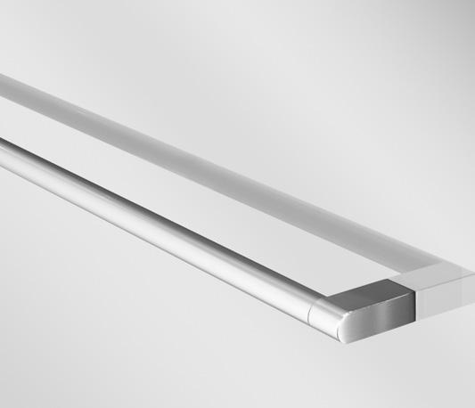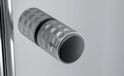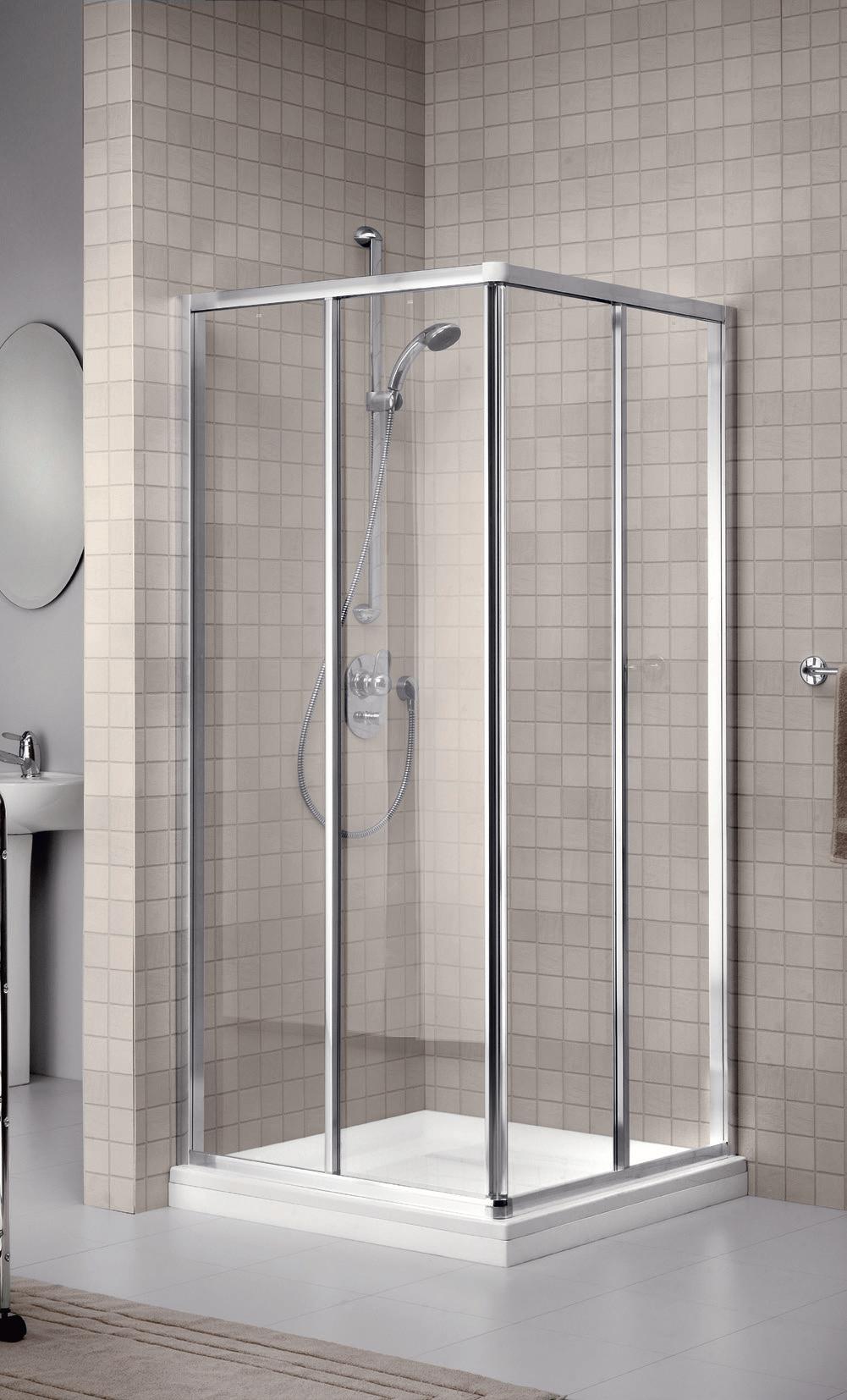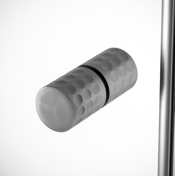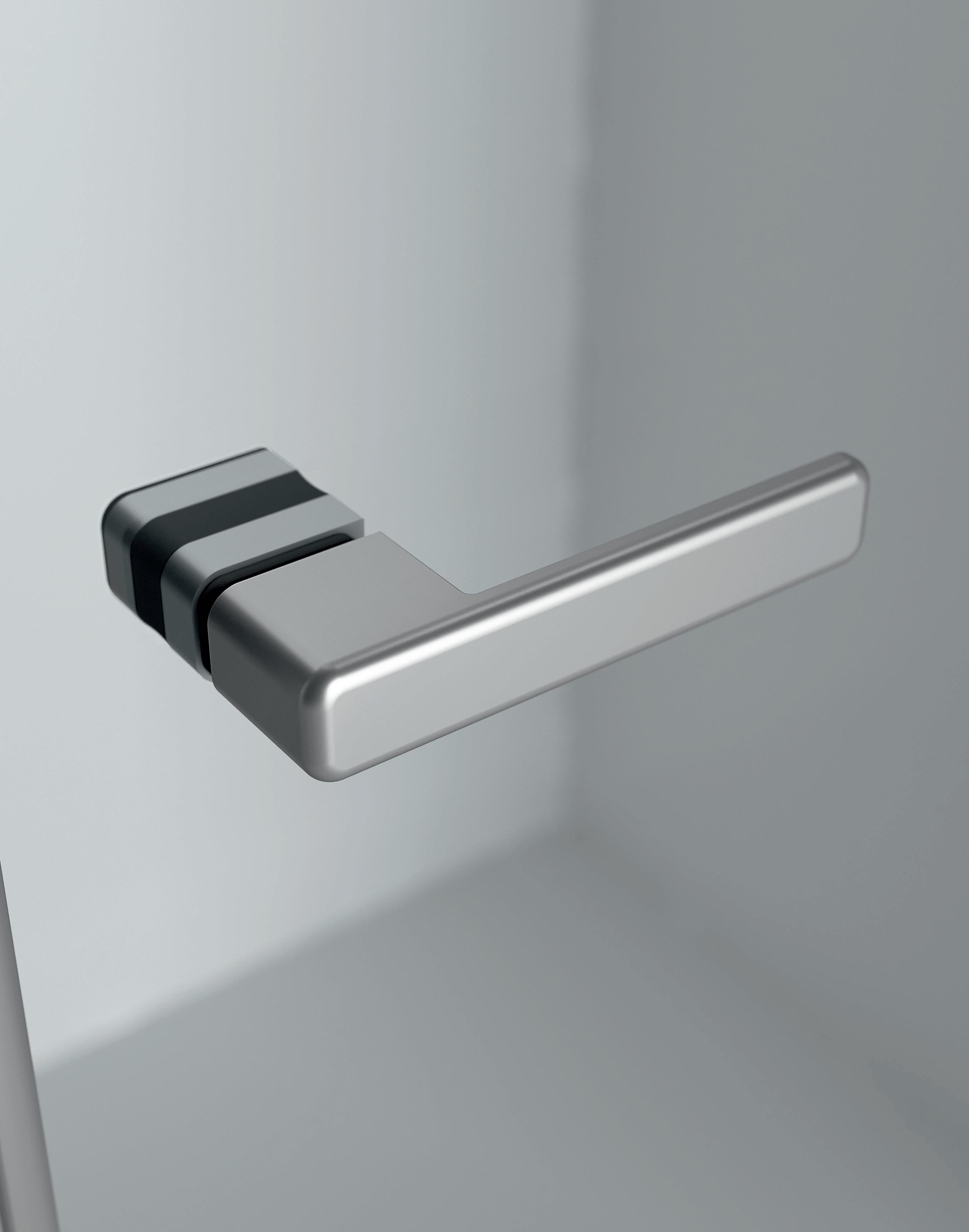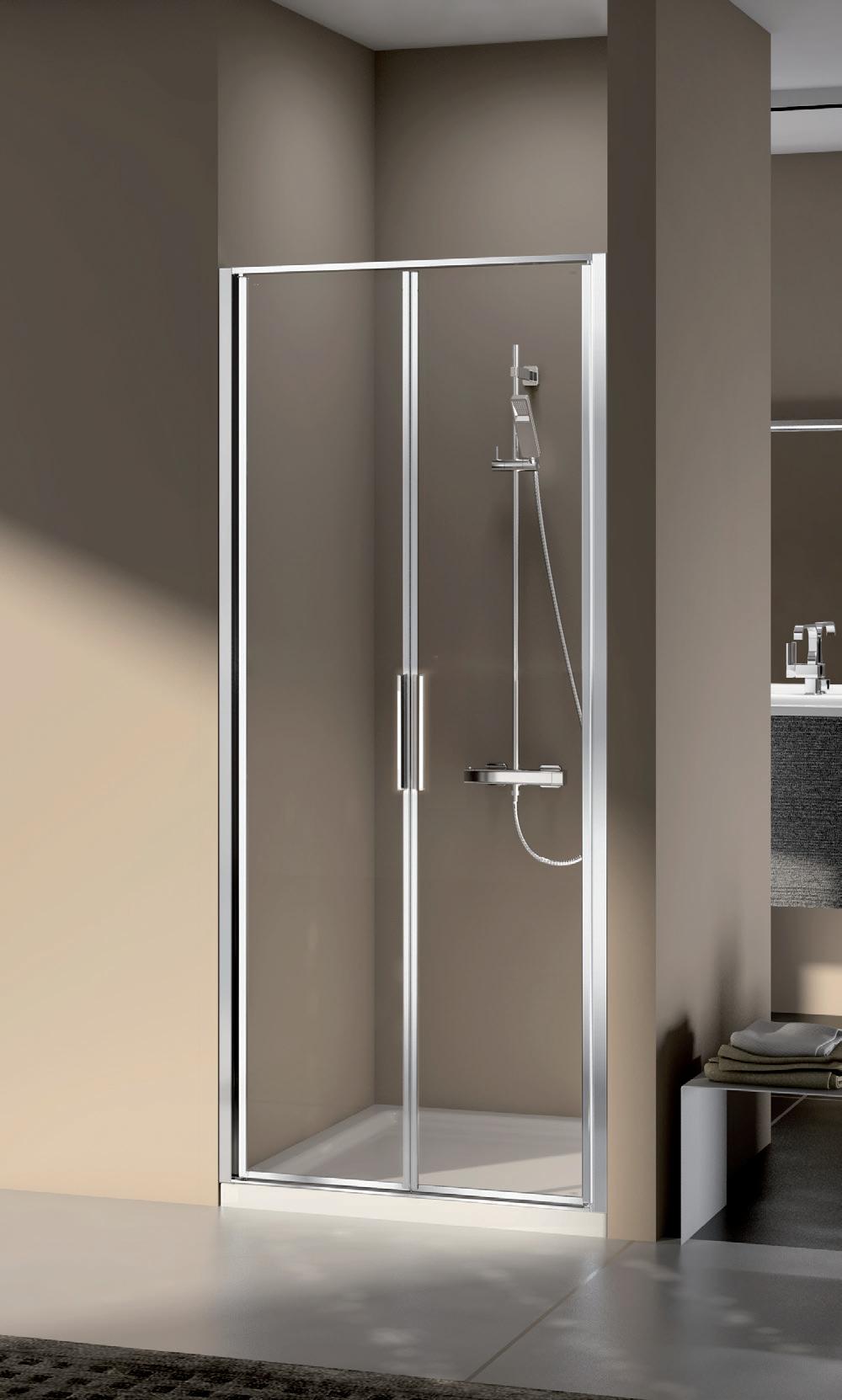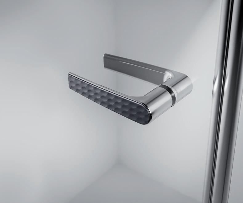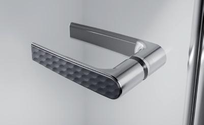 2 - Porte con regolazione integrata nel cristallo: la regolazione della larghezza delle cabine diventa un elemento di design! L’estensibilità di 25 mm degli elementi laterali e dei lati fissi avviene tramite il cristallo regolabile, inserito sotto il profilo.Il grande vantaggio è di natura estetica, in quanto la larghezza e l’aspetto del profi lo di compensazione rimangono invariati senza rinunciare all’estensibilità.