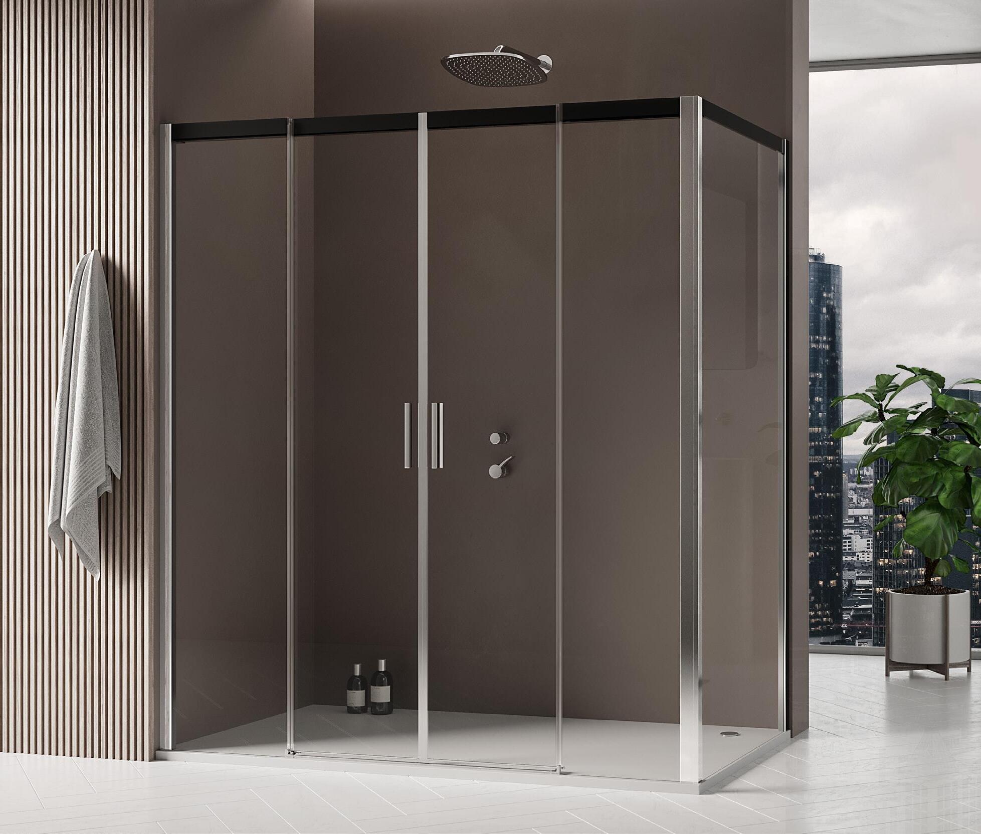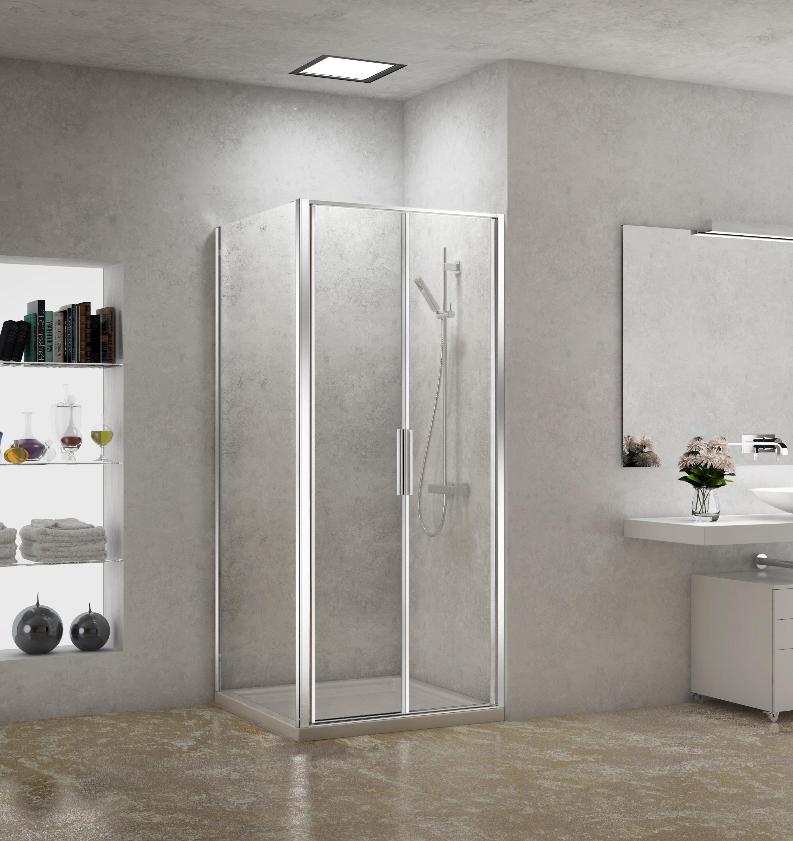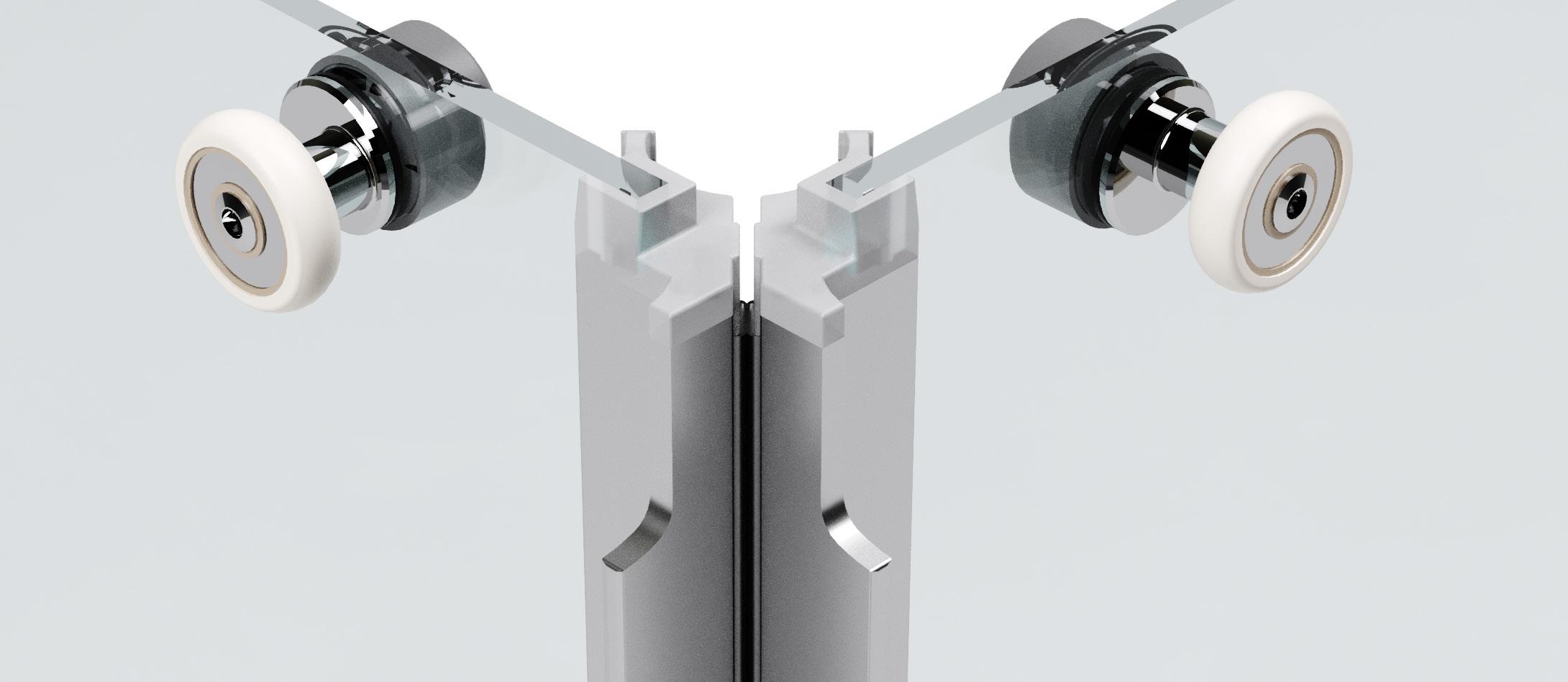 Entrata diagonale con 2 porte scorrevoli - Versione senza profili 700 - 1600 mm