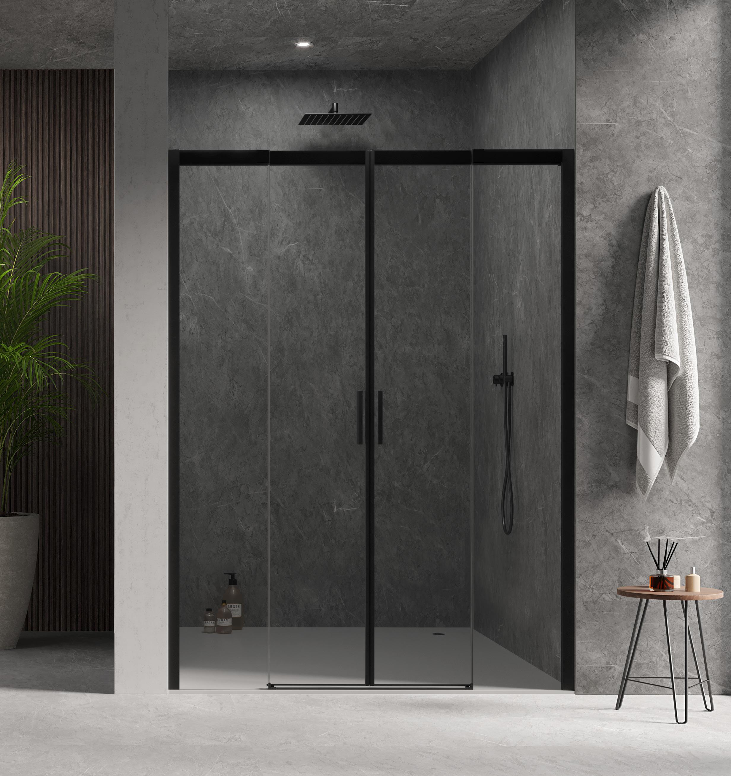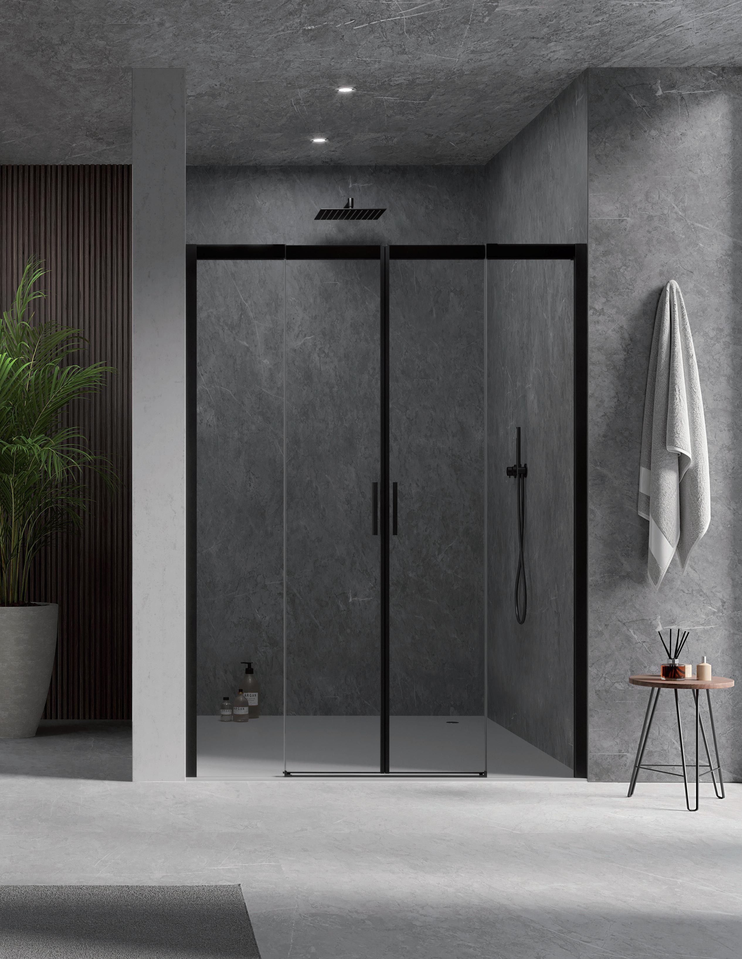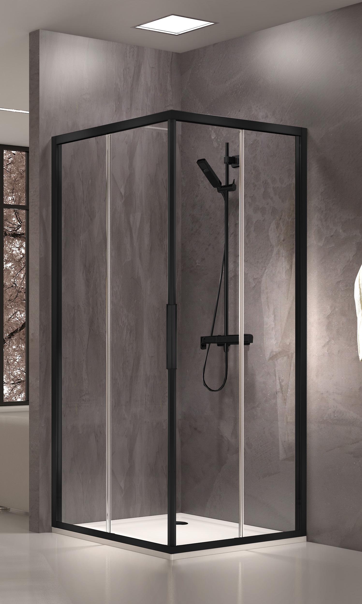 Entrata diagonale con 2 porte scorrevoli - Versione senza profili 700 - 1600 mm