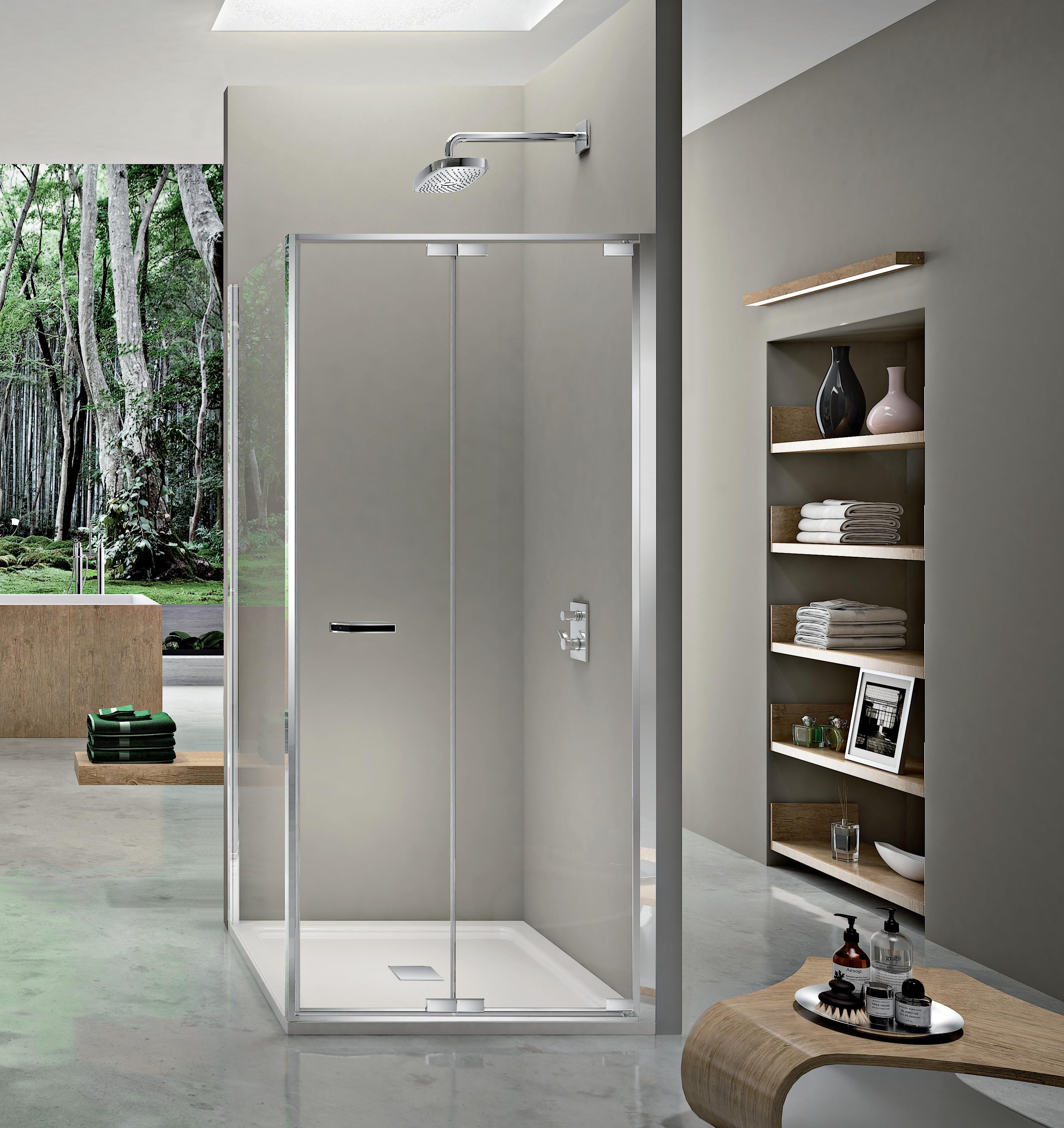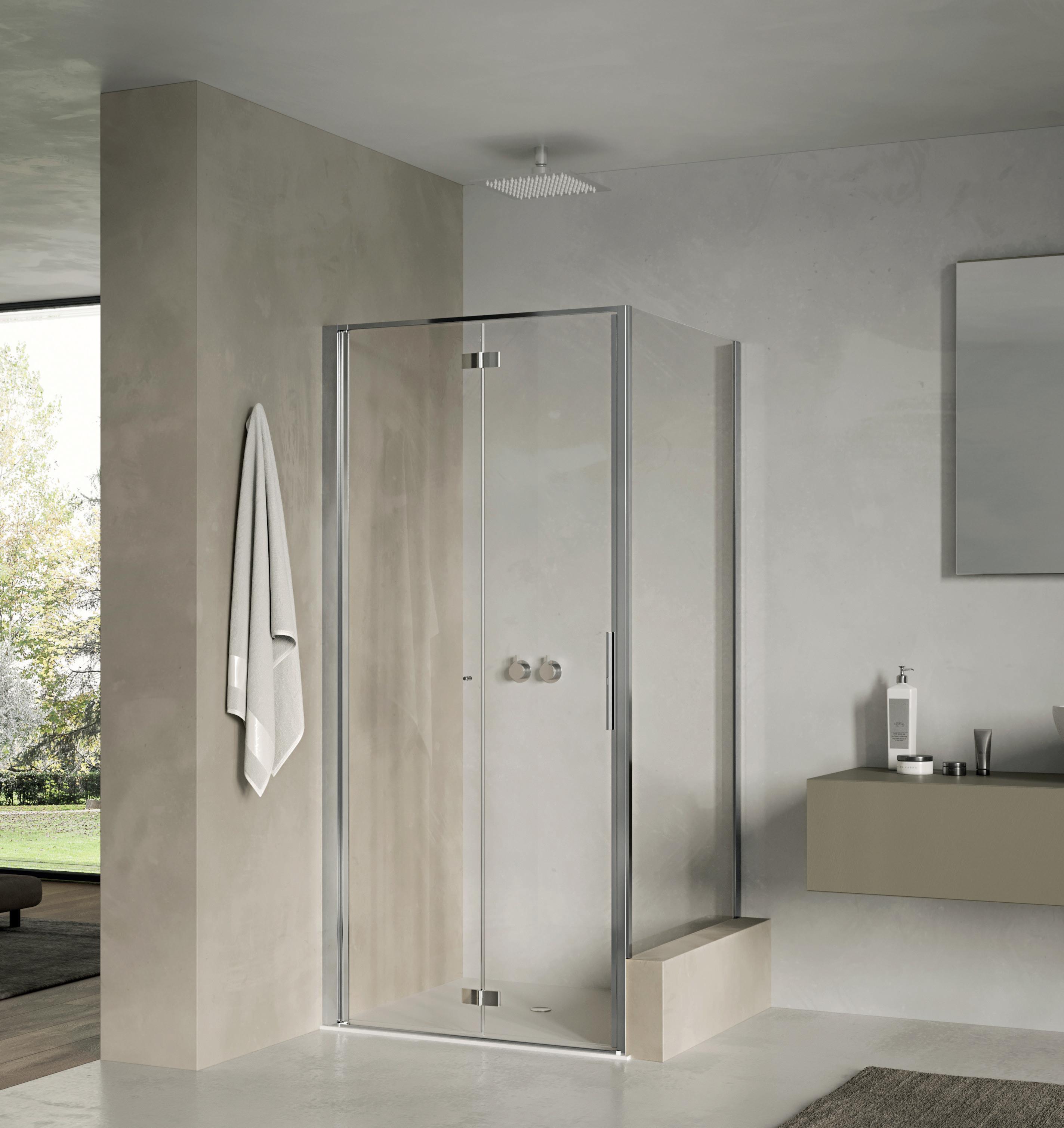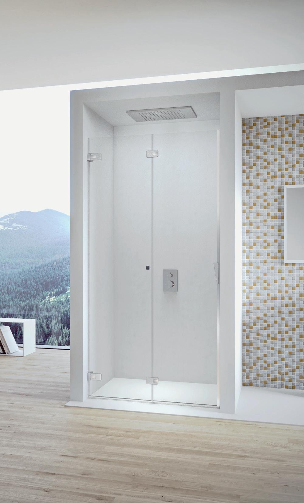 Porta battente 180° a due elementi con elemento fisso per nicchia - Versione senza profili