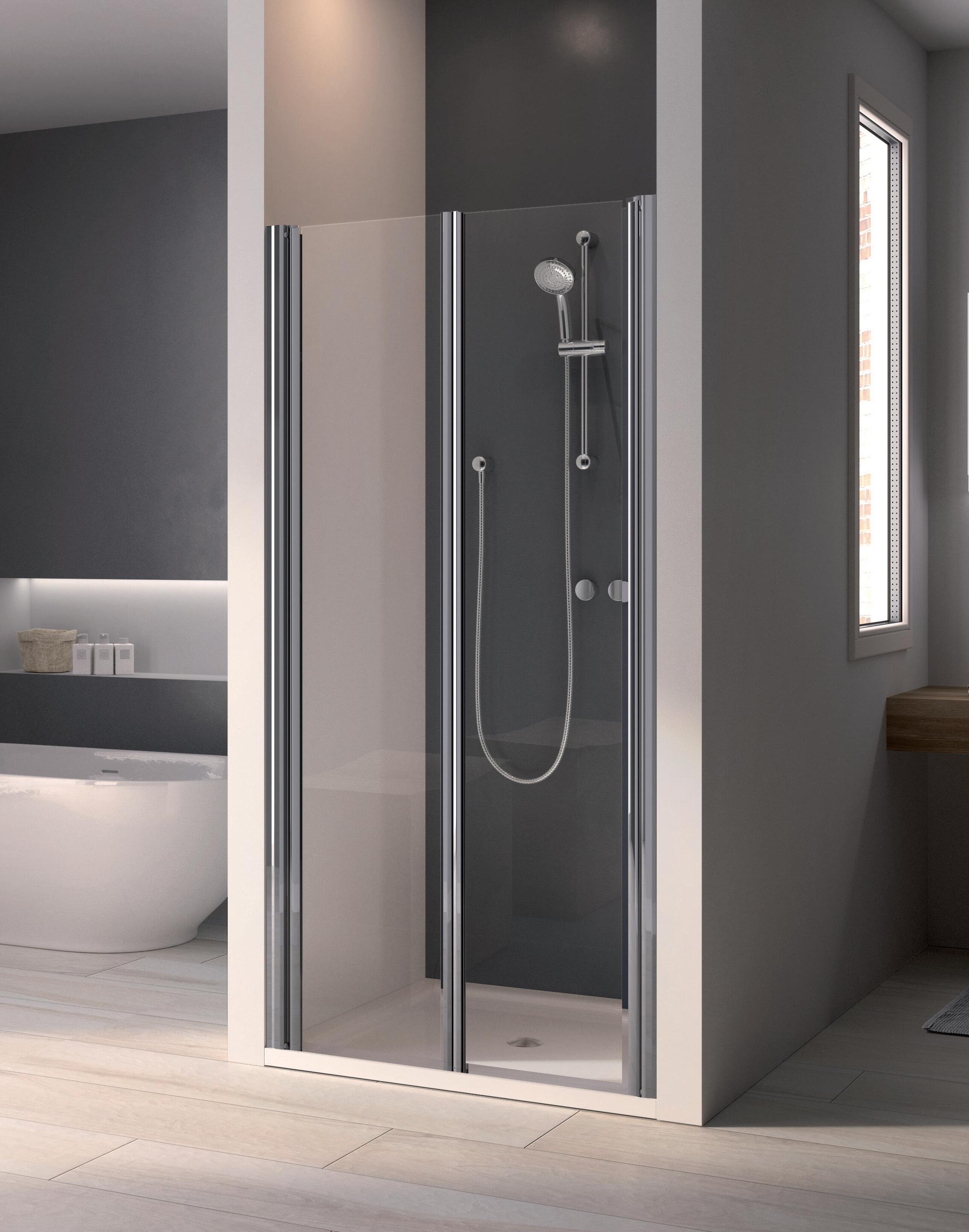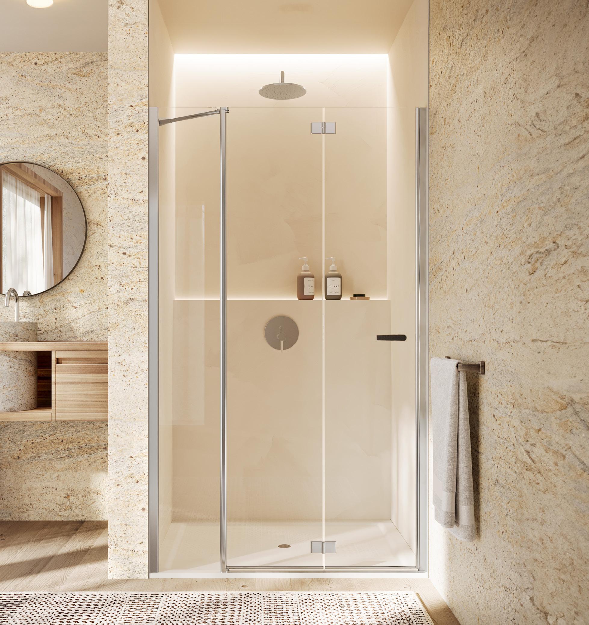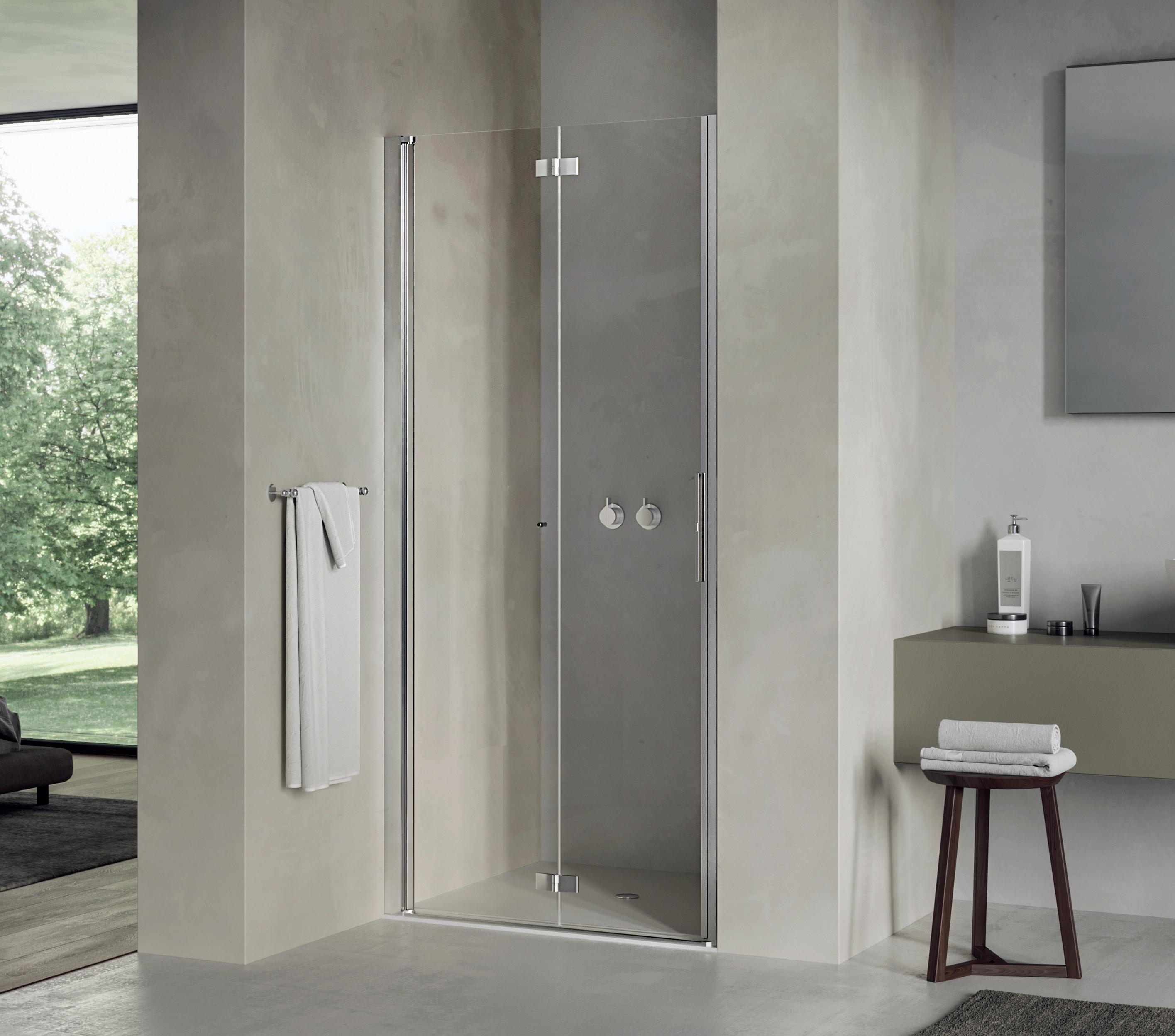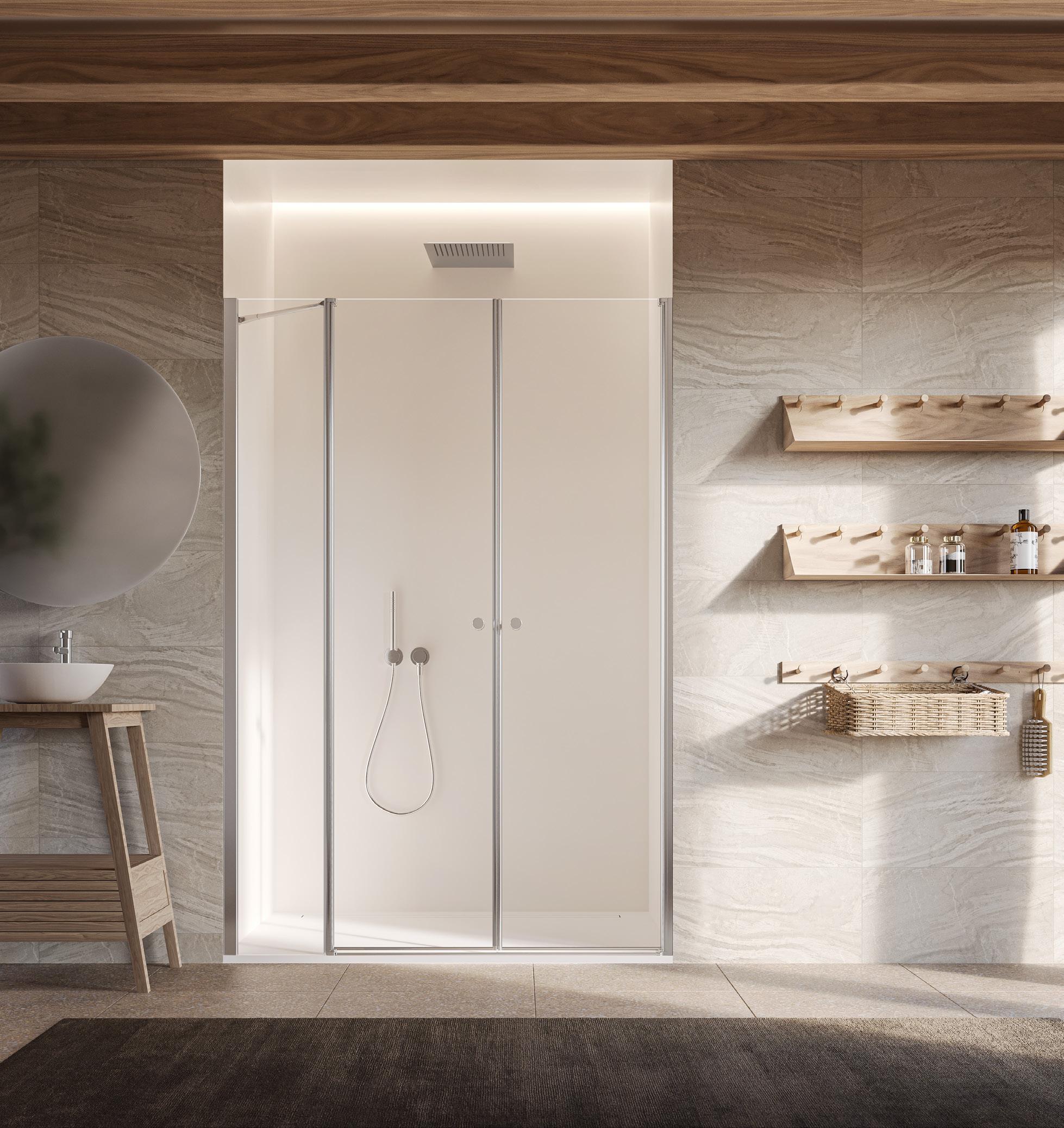 Porta battente 180° a due elementi con elemento fisso per nicchia - Versione senza profili