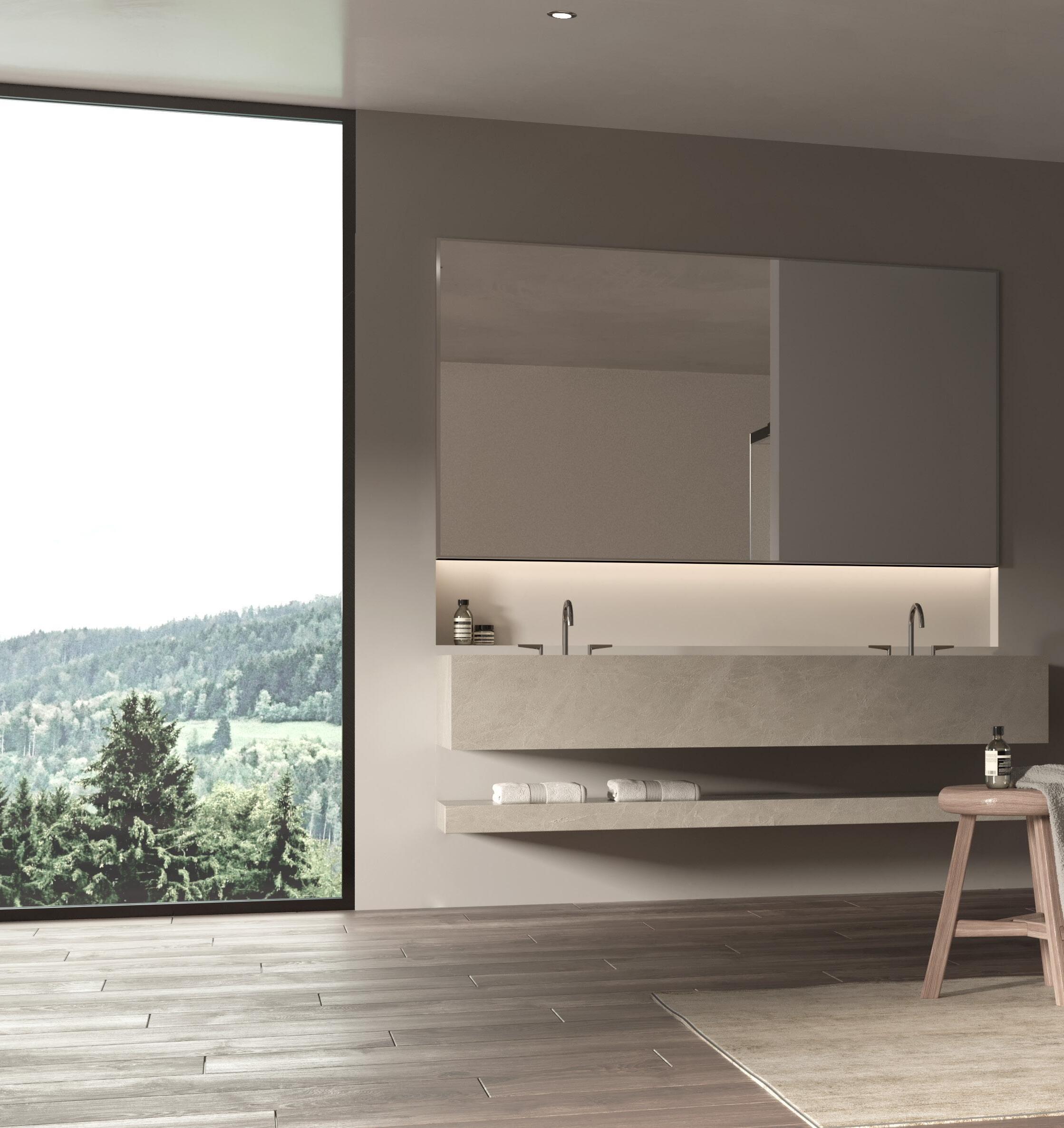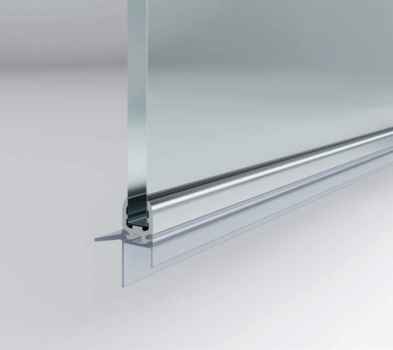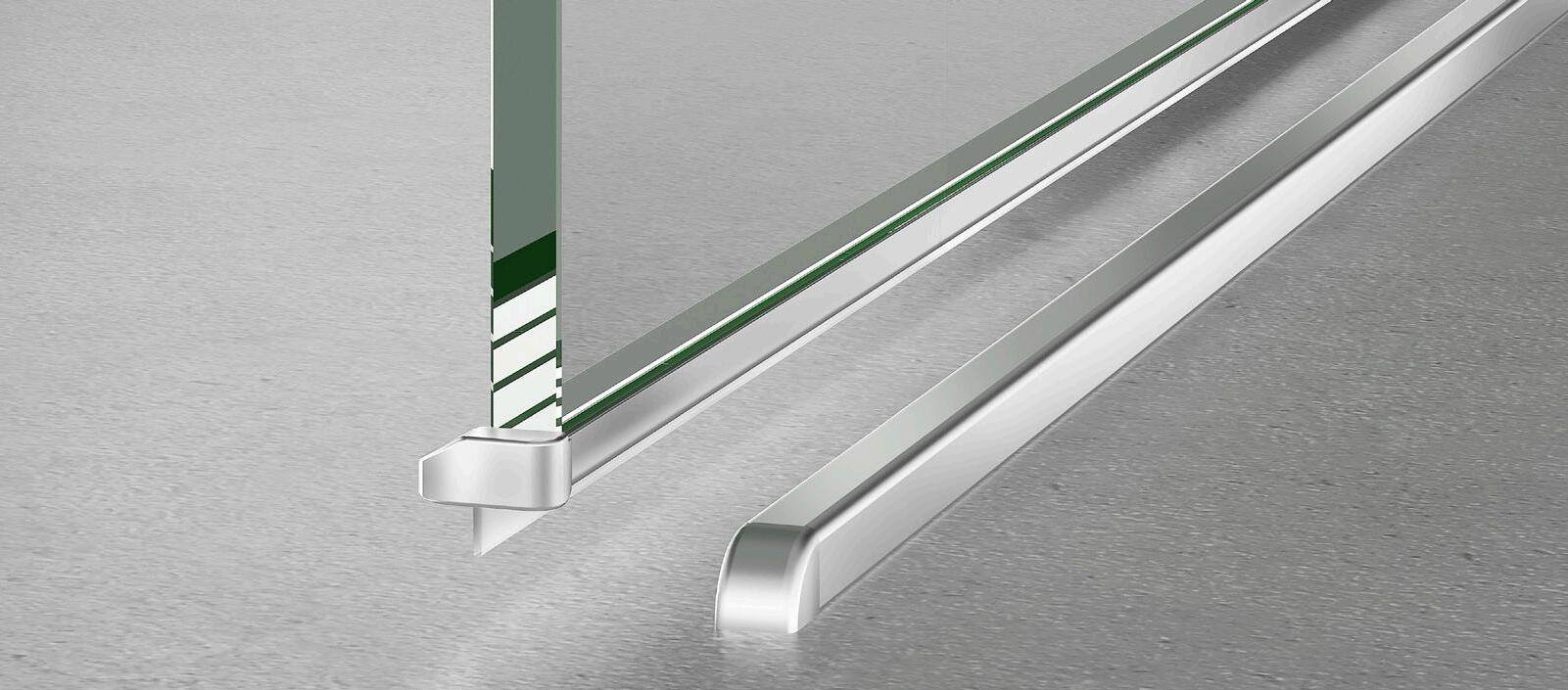 Il massimo dell‘innovazione e della funzionalità per l’uso quotidiano! Il discreto profilo in alluminio viene incollato a raggi UV senza sporgenze sul margine inferiore del vetro, riducendo al minimo i possibili depositi di sporco. La guarnizione in PVC inserita (anch’essa priva di sporgenze) dispone di un aggetto idrorepellente interno e di labbra in PVC morbido in basso. Quasi invisibili e dall’estetica senza tempo, sono estremamente funzionali e, in caso di necessità, possono essere rimossi facilmente per la pulizia o la sostituzione!