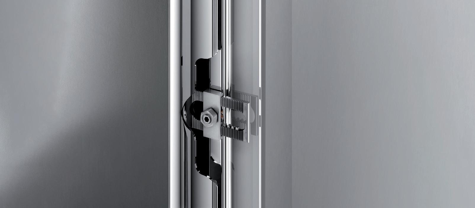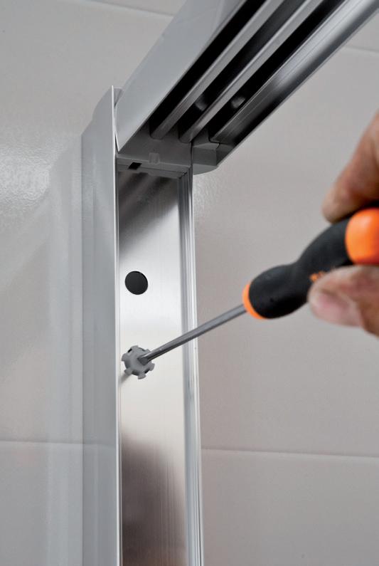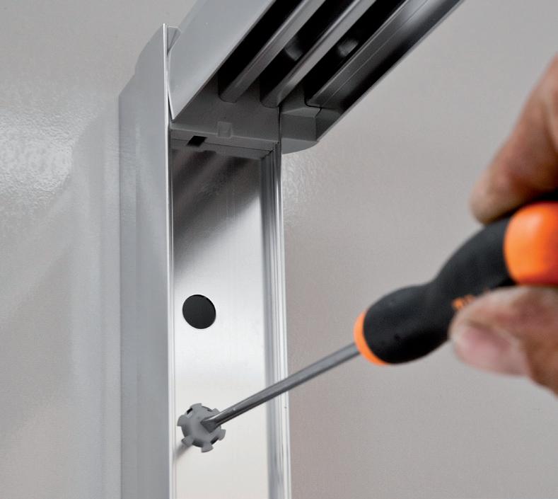 Grazie a una vite telescopica l’intera porta è regolabile senza alcun problema all’interno dello spazio previsto.